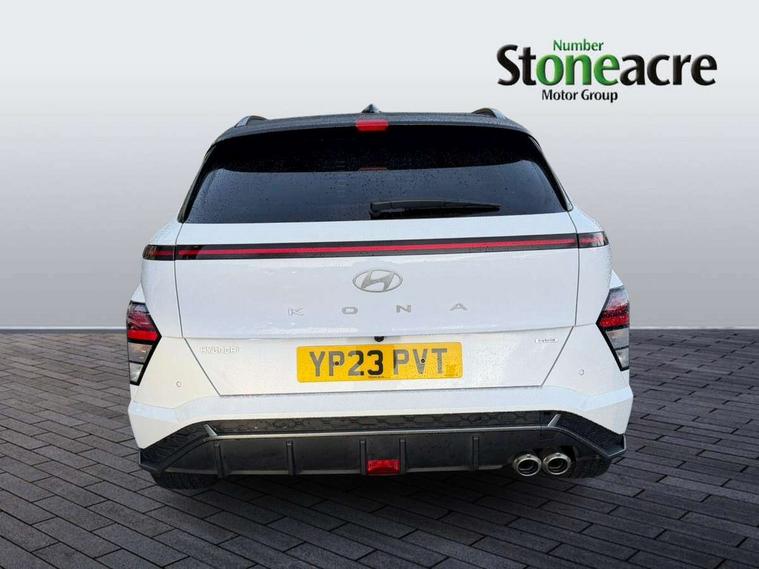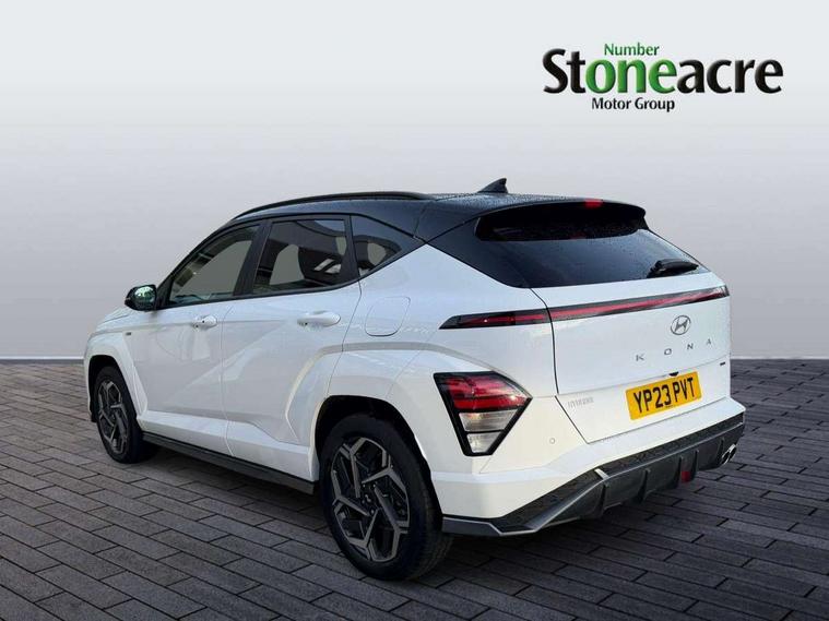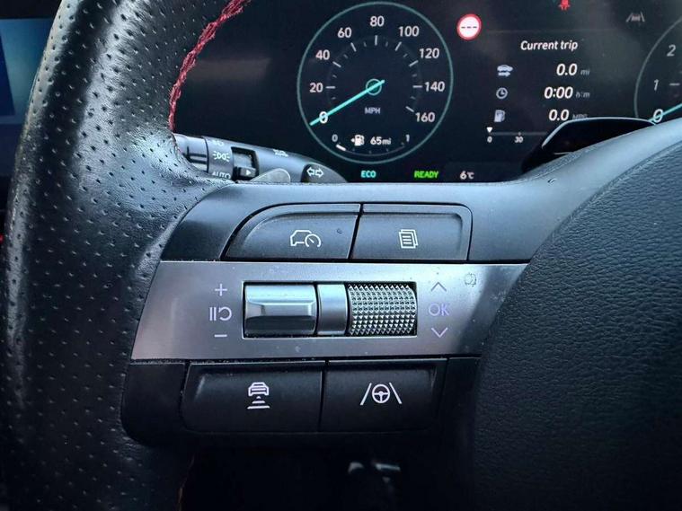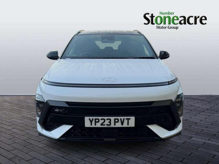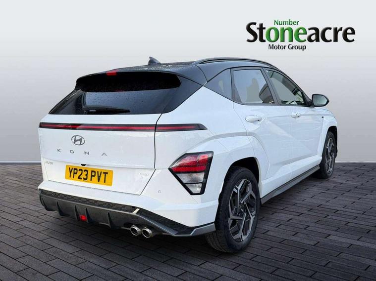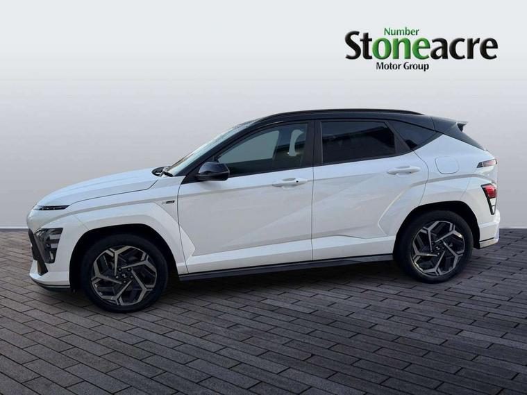 N Line exterior design pack - Kona, Trailer wiring package - Kona, Temporary mobility kit (TMK), Alarm/immobiliser, Deadlocks, Folding key, Locking wheel nuts, Remote central locking, Smart key with keyless entry and engine start/stop button, 2 front USB C and 2 rear USB C charging points, DAB Digital radio, Speakers - Front, rear and tweeters, Steering wheel audio, phone and cruise controls, Airbag - front, front side, curtain and centre front airbag, Anti-lock brake system, Childproof rear door locks, Downhill brake control, EBD + Brake Assist, Electric parking brake, Electronic stability control, Fasten seatbelt reminder, Fixed 3 point for second row centre passenger seatbelt, Front seatbelt pretensioners, Height adjustable front seatbelts, Hill start assist control (HAC), Passenger airbag deactivate switch, Rear seat alert, Traction control, Tyre pressure monitoring system, Auto dimming rear view mirror, Automatic headlights with dusk sensor, Automatic windscreen wipers with rain sensor, Body colour bumpers, Body colour exterior door handles, Body coloured wheel arch inserts, Door mirror LED indicator lights, Electric front windows with anti-trap mechanism and one touch control, Electric rear windows, Electrically adjustable and heated door mirrors, Full LED MFR headlights, Gloss black door mirrors, LED daytime running lights, LED rear lights, Power folding door mirrors, Privacy glass - Rear windows and tailgate, Rear side wing doors, Rear spoiler with integrated LED brake light, Rear wiper, Roof rails, Solar glass with front door glass and windscreen, Tinted glass in front and rear doors, Windscreen auto defog function, 12V power outlet in front console, 2 zone climate control, 3 seat bench in 2nd row, 40/20/40 split folding rear seat, Adjustable head restraints, Aluminium pedals, Ambient lighting, Cloth upholstery, Driver and passenger front seat pockets, Driver's seat electric lumbar support, Driver's seat height adjustment, Driver/passenger sunvisors and illuminated vanity mirrors, Front passenger seat manual adjustments, Heated front seats, Heated rear seats, Heated steering wheel, Height/reach adjustable steering column, Isofix rear child seat fastenings, LED centre interior light, LED front interior light, Luggage compartment LED lightning, Metal paint effect interior door handles, Parcel shelf, Rear centre armrest, Rear centre console with air vents, Shift by wire SBW, Single front passenger seat, Vertical adjustment rear head restraints, 10.25" touchscreen centre console display satellite navigation with live services and mapcare, Bluetooth connectivity with voice recognition, Digital clock, Driver attention warning, Driver supervision instrument cluster with 12.3" LCD display, eCall emergency call system, Forward collision avoidance assist (FCA 1.5) - Car, pededstrian, cycle and junction turning, Front parking sensor, Head up Display, Intelligent speed limit assist, Lane follow assist, Lane keep assist, Leading vehicle departure alert (LVDA), Parking system with rear camera and guidance system, PAS, Rear parking sensor, Roadside assistance, Smart cruise control with stop and go functionality, Smartphone integration compatible with Apple CarPlay and Android Auto, Windscreen washer fluid sensor and warning indicator, Wireless phone charging pad,