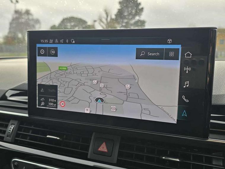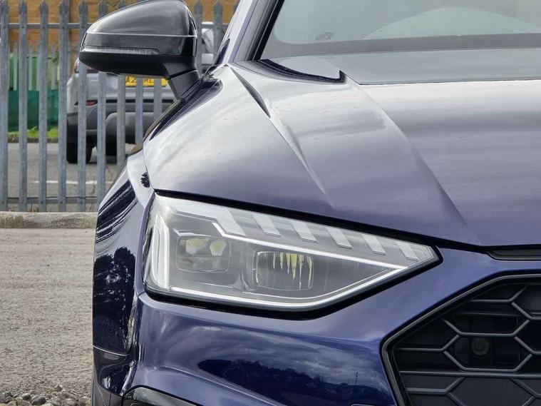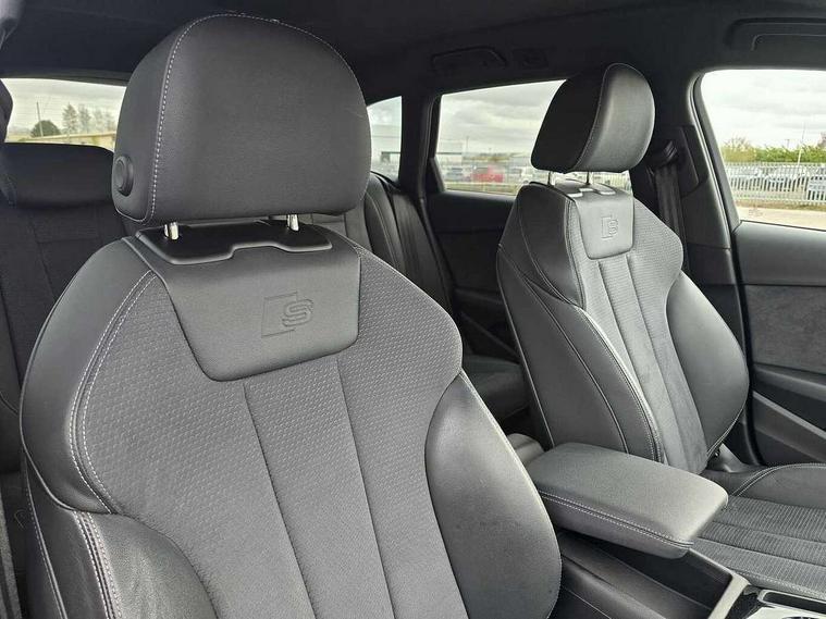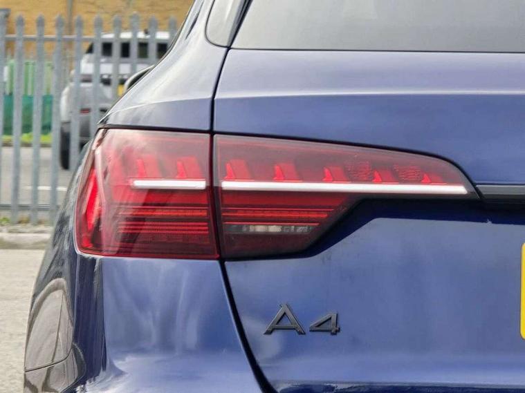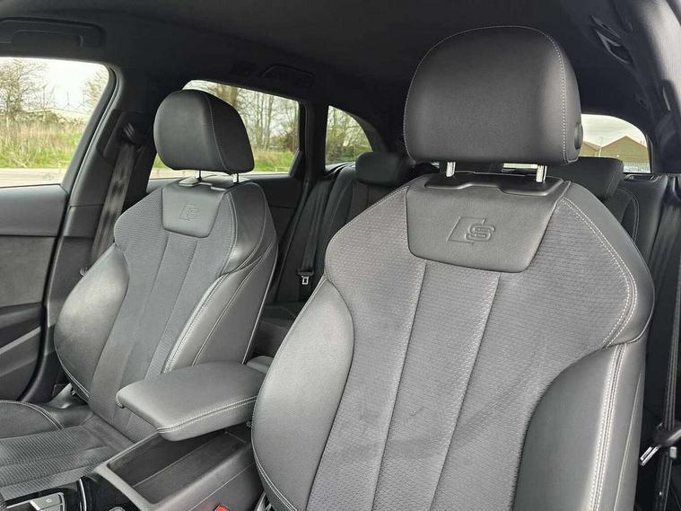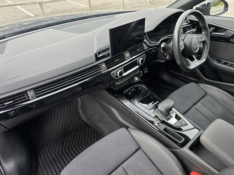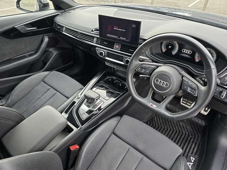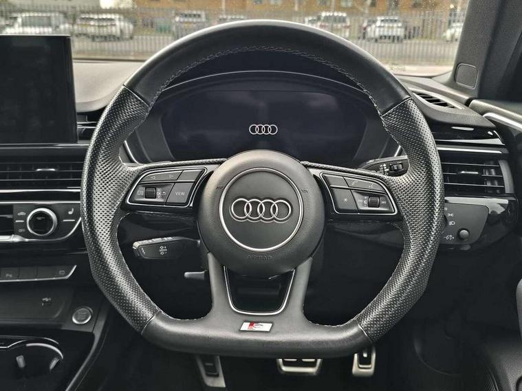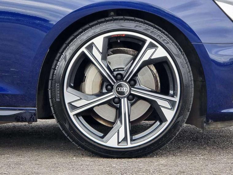 Piano black finish inlay, Black styling pack - A4 Avant, LED Interior light pack - A4/S4, Tyre repair kit, Anti theft alarm, Anti theft wheel bolts, Central locking, Keyless Go, 2 USB charging ports, 8 passive loudspeakers, DAB digital radio reception, 3 rear seatbelts, 6 airbags - Driver, front passenger, curtain and side windows, Electronic Stabilisation Control (ESC) including ABS, ASR and EDL, Hill hold assist, Multi collision brake assist, Pop-up bonnet for pedestrian protection, Pre sense city, Seatbelt monitoring, Warning triangle and first aid kit, Auto dimming rear view mirror, Black Audi rings and black badging (model name in black badging, no engine badging), Black audi rings decal above rear sills, Body colour door handles, Body colour front spoiler lip, Body colour side sill trim, Electrically folding auto dimming/adjustable/heated door mirrors with LED side indicators and kerb view function for passenger side, Front and rear bumpers with side skirts, Front wing badges, Grained matt black side air inlets with matt aluminium silver inlay, High beam assistant, High gloss black B pillar trims and triangular rear door trim, LED headlights with LED rear lights + dynamic rear indicators + headlight adjustment and high beam, turning light + LED daytime running lights, LED third brake light, Matt aluminium silver tailpipe trim, Privacy glass, Rain and light sensors, Rear diffuser in matt titanium black with trim strip in matt aluminium silver, Rear side wing doors, RS4 rear spoiler in body colour, S Line roof edge spoiler, Variable intermittent front wash/wipe, Windscreen with acoustic glazing, 4 way electric lumbar support for driver and front passenger, 40/20/40 split folding 3 rear seat bench in 3 parts with rear centre armrest, Black cloth headlining, Black perforated leather gearknob, Contrast stitching on seats, steering wheel and gear lever gaiter, Deluxe 3 zone electronic climate control, Door sill trims with aluminium inlay, Electric load area cover, Front and rear head restraints, Front centre armrest, Heated front seats, Illuminated door sill trims with S logo, ISOFIX child seat mounting and top tether, Manual seat adjustment, Single front passenger seat, Stainless steel pedals and foot rest, Tool kit, Audi connect safety and service (e-call), Audi connect with Amazon Alexa Integration, Audi drive select, Audi parking system plus with front and rear sensors, Audi smartphone interface, Audi virtual cockpit, Automatic start-stop system with coasting functionality and efficiency programme, Bluetooth interface, Electromechanical power steering, Email, calendar and text messages displayed via MMI, MMI Navigation plus with MMI touch includes 10.1" high resolution colour MMI display, 3D map, Power operated tailgate, Rear view camera, Voice control system, 54 litre fuel tank, Sports suspension lowered by 23mm,