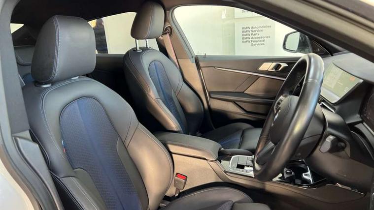 Contrast stitching on instrument panel, Additional interior lighting pack - 2 Series Gran Coupe, Connected pack professional - 2 Series Gran Coupe, Extended storage pack - 2 Series Gran Coupe, M Sport exterior styling aerodynamics pack - 2 Series Gran Coupe, 18" Burnished M double spoke bi-colour alloy wheels finished in orbit grey - style 819M, Reduced rolling resistance tyres, Central locking switch for all doors, fuel filler cap and luggage compartment, Deadlocking function system to all doors, Drive away locking system on all doors and luggage compartment, Locking wheel bolts, Start/Stop button (illuminated) in centre console with keyless engine start and Auto Start-Stop deactivation button, Thatcham Cat.1 alarm and immobiliser, Two remote control key with integrated key - open/close doors/fuel flap/tailgate +1 button for unlock compartment with M design high gloss black inlay, 2x USB Type C ports (for charging and data transfer), 4G LTE Connectivity with hard wied 4G network sim card, DAB digital radio, MP3 players and RDS double tuner, 2 tone horn, Airbag - Front driver and passenger, front and rear head, front side, curtain head protection, manual deactivation of front passenger airbag possible, Anti lock braking system (ABS) with cornering brake control, BMW emergency call, Brake drying, Braking readiness, City braking function, Crash sensor activating of airbags, Unlocking doors, hazard warning lights, fuel cut off, interior lighting+activation of safety battery terminal clamp, Dynamic stability control + (DSC+), Dynamic Traction Control - DTC, Electrically operated hand brake, Rear brake discs, Rear child proof door locks, Seat belt security check for driver and front passenger, Seatbelt warning, Side impact protection, Three point seat belts on all seats including front belt stopper, pyrotechnic belt tensioners and belt force limiters, Trailer stability control, Tyre pressure monitoring system, Ventilated front disc brakes, Warning triangle and first aid kit, Auto wipers, Automatically dimming rear view mirror, Body colour door handles, Body colour mirror caps, Chrome 'M' logo side designation, Chrome exhaust single tailpipe, round, Direction indicator side lights integrated exterior mirrors, Electric windows - front and rear, with open/close fingertip control and trap release, Exterior mirrors - electrically folding with anti-dazzle, Fading support, Follow me home headlights, Front and rear bumper system with replaceable deformation elements, Front door sill finishers in black plastic with M designation in metallic look, Heated, electrically adjustable exterior mirror aspheric on driver side, convex on passenger side, High gloss black B pillar finish, High gloss shadow line exterior trim, High level third brake light, LED daytime running lights, LED front fog lights, Lightweight engineering, Model designation on right side of tailgate, Preparation for high beam assistant, Rain sensor with automatic headlight activation, Rear boot, Rear fog lights, Rear side wing doors, Reversing light in rear light cluster, Welcome lighting, 12V power socket in centre console, 2 cupholders in front centre console, 3 rear seat head restraints, 3 rear seats, 3 spoke M sports design leather steering wheel finished in nappa leather with specific M badge, Anthracite finished floor mats with contrasting surround, Anthracite headlining, Automatic two zone climate control air conditioning, Child seat ISOFIX attachment for two outer rear seats and front passenger seat with anchorage points, Conditioned based service, Driver and front passenger seat heating, Front and rear door pockets including bottle trays, Front and rear side armrests integrated into door trim, Front armrest foldable with integrated storage compartment, Front centre interior light over interior mirror and rear centre automatic interior light when door is opened/ignition switched off or via remote key, Front head restraints, Front passenger seat, Front sports seats with electric side bolster adjustment, Glove compartment, Glovebox with light, Luggage compartment lighting, Manually adjustment steering wheel column, Multi-function controls for steering wheel, Sun visors with vanity mirrors and insert tab, Through loading system with 40/20/40 split folding rear seat, Two lashing eyes, Active guard plus, Attentiveness assist, Auto start-stop, BMW ConnectedDrive online services, BMW Intelligent Personal Assistant, BMW Live Cockpit Professional with 10.25" high resolution instrument and control display, BMW Online services, BMW operating system with 7.0 mid interface, BMW Teleservices, Check Control warning system for monitoring of lights and door/luggage compartment open warning, Cruise control with braking function, iDrive controller with 7 short cut favourite buttons on centre console, Integrated navigation data with map data via USB +features such as 3D landmarks and micro city models, Integrated owners handbook, Intelligent voice assistant, Lane departure warning system, M Sports steering, On board computer - average speed+fuel consumption, service interval, clock/date, odometer/trip meter, outside temperature display and ice warning, Optimum shift indicator, Personal Profile, Pull away assistant, Speed limiting function, Aluminium lightweight construction, Balancer shaft, Double VANOS, Drive performance control with ECO PRO comfort + sport mode, Dual clutch automatic transmission, Electronic differential lock, High precision injection, M Sport suspension with stiffer spring/damper set-up and vehicle lowered by 10mm + twin tube gasfilled shock absorbers and Anti roll bars, Performance Control, Petrol Particulate Filter, VALVETRONIC engine management,