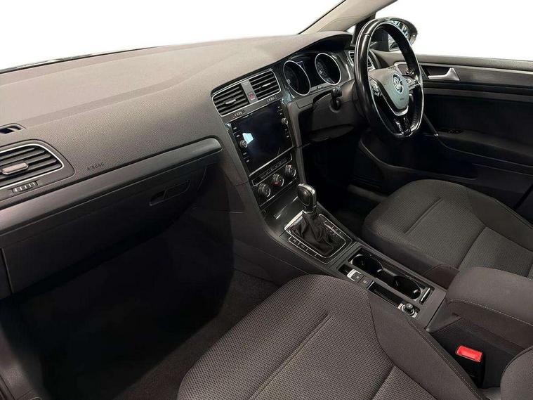 Brushed dark metal decorative inserts, Chrome-plated light switch surround, Polar night black centre console, Mirror pack - Golf, Steel space saver spare wheel, Alarm with interior protection, Electronic engine immobiliser, Remote central locking with 2 remote folding keys, CD/MP3/WMA, USB and SD card reader, aux-in, Composition media system, DAB Digital radio, 3 point height adj front seatbelts + pretensioners, 3 rear 3 point seatbelts, ABS, Automatic post collision braking, Child locks on rear doors, Driver/Front Passenger airbags, Driver/Passenger whiplash optimised head restraints, Drivers knee airbag, Electronic parking brake with auto hold, ESP with EDL + ASR, Front and rear curtain airbags, Front passenger airbag deactivation, Front side airbags, Pre crash system, Tyre pressure monitor, Auto dimming rear view mirror, Automatic coming/leaving home lighting function, Automatic headlights, Black front air intake and radiator grille with chrome insert, Black rear diffuser, Body colour bumpers, Body colour door handles, Body colour door mirrors, Electric front windows, Electric rear windows, Electrically adjustable and heated door mirrors, Heated rear windscreen, LED daytime running lights, LED rear lights, Rain sensor, Rear roof spoiler, Rear windscreen washer and wiper with interval delay, 12V socket in luggage compartment, 3 rear headrests, 3 spoke steering wheel, 60/40 split folding rear seat, Bag hook in luggage compartment, Boot lashing points, Cooled glovebox, Courtesy light delay, Cover for storage compartment in centre, Dust/pollen filter, Front and rear reading lights, Front centre armrest with storage box and rear air vents, Front passenger seat height adjust, Front seat back storage pockets, Grab handles, Height/reach adjust steering wheel, Illuminated vanity mirrors, Isofix preparation for 2 rear child seats, Load through provision with rear centre armrest and cupholders x2, Luggage compartment cover, Luggage compartment lighting, Multifunction leather steering wheel with leather gear knob/handbrake grip, Overhead storage box, Pearl grey headlining, Storage box in luggage compartment, Storage compartments in doors, Sun visors, Variable boot floor, height adjustable and removable, App-Connect, 'Lights On' Reminder warning buzzer, 8" touch screen, Adaptive Cruise Control with pedestrian detection and speed limiter, Bluetooth hands free telephone connection, Brake pad wear indicator warning light, Driver alert system, Driver profile selection, Exterior temperature gauge, Instrument cluster in white, Multifunction computer, PAS - speed related, Rev counter, Trip and service interval display, Ultrasonic front and rear optical and audible parking sensors, Warning buzzer and light for front seatbelts unfastened, XDS electronic differential lock,