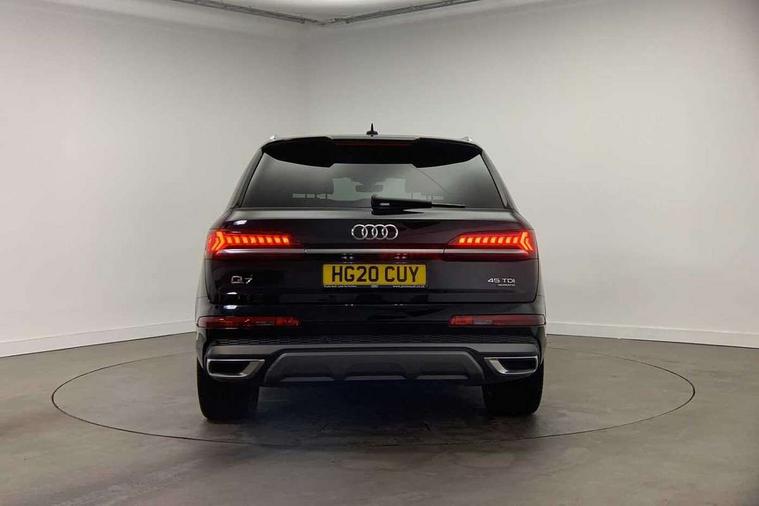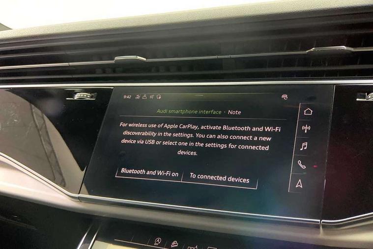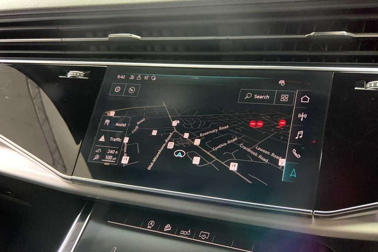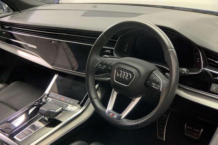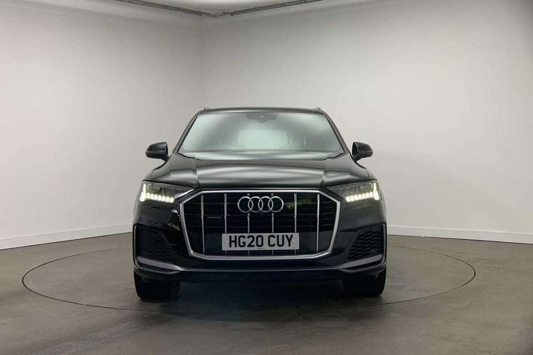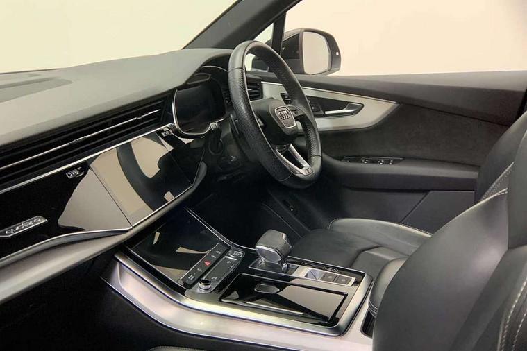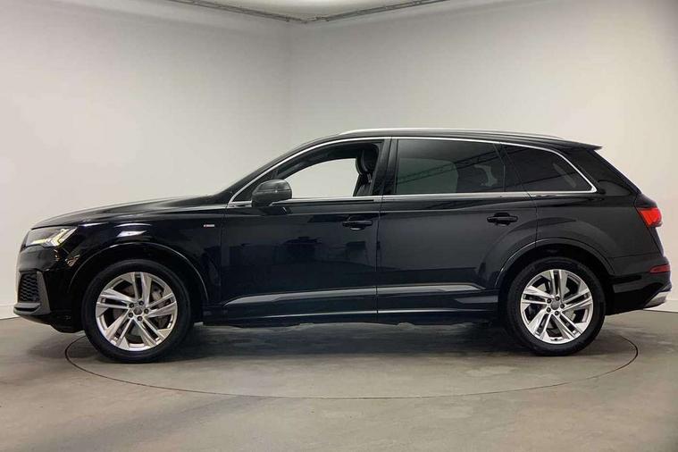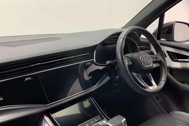 Darkened matt brushed aluminium inlays, Tyre repair kit, Anti theft alarm, Anti-theft wheel bolts and wheel loosening detection, Keyless go with remote central locking, Audi music interface - front 2 USB-C ports with charger and data functions, Audi sound system with 6 channel amplifier, 180 watt amplifying capacity and 10 loudspeakers including subwoofer, DAB digital radio module, 3 point seatbelts on all rear seats, Audi pre sense front, Driver and front passenger, front side and curtain airbags, Electromechanical parking brake, Electronic Stabilisation Control (ESC) including ABS, ASR and EDL, Extended pedestrian protection measures, Hill hold assist, Seatbelt monitoring, Tyre pressure loss indicator, Warning triangle and first aid kit, Aluminium roof rails, Aluminium window trim, Audi matrix LED headlights with dynamic front and rear indicators, Auto dimming frameless rear view mirror, Body coloured door mirrors, Electrically adj heated/folding + automatically dimming exterior mirrors with memory + automatic kerb side function for passenger side exterior mirror, Heat insulating glass in windshield, LED daytime running lights, LED rear tail lights, Privacy glass - dark tinted rear and rear side windows from B-pillar backwards, S Line badge on wings, S line bumpers in full body colour paint finish, S line roof spoiler, S line styling side ventilation grilles and side skirts, 2 zone automatic climate control, 7 seat layout with ISOFIX points for the front passenger seat and rear passenger seat, Comfort front centre armrest, Folding rear seats, Front head restraints, Front/rear floor mats, Heated front seats, Illuminated door sill trims with S logo, LED interior ambient lighting, Luggage compartment cover, Luggage compartment sill protection in stainless steel, Rear head restraints, Stainless steel pedals, Tool kit, Audi connect safety and service (e-call), Audi drive select (Auto, Comfort, Dynamic, Individual, Off-road and All road), Audi phone box with wireless charging, Audi smartphone interface includes wireless Apple carplay/Android Auto, Camera based traffic sign recognition, Electromechanical steering, MMI navigation plus with MMI touch screens includes 10.1" and 8.6" screens with haptic feedback, Natural voice recognition, Parking system plus - front + rear sensors, PAS, Power operated tailgate, Rear view camera, Start/stop system, 48V Mild hybrid technology, Adaptive air suspension, Quattro all wheel drive with self locking centre differential,