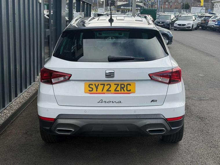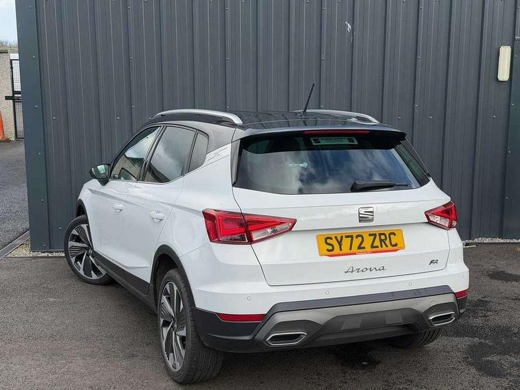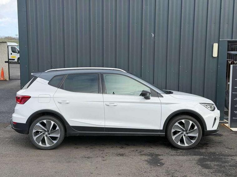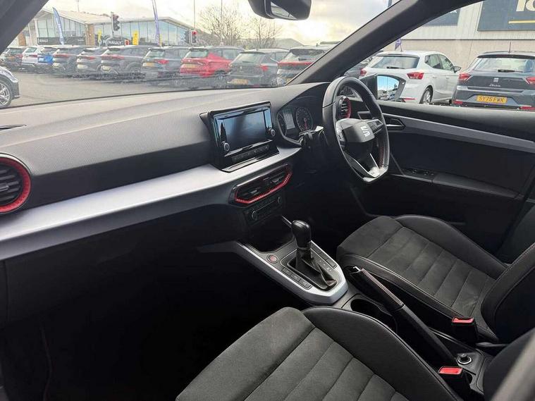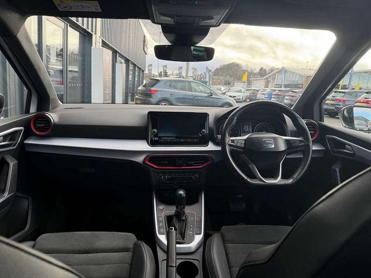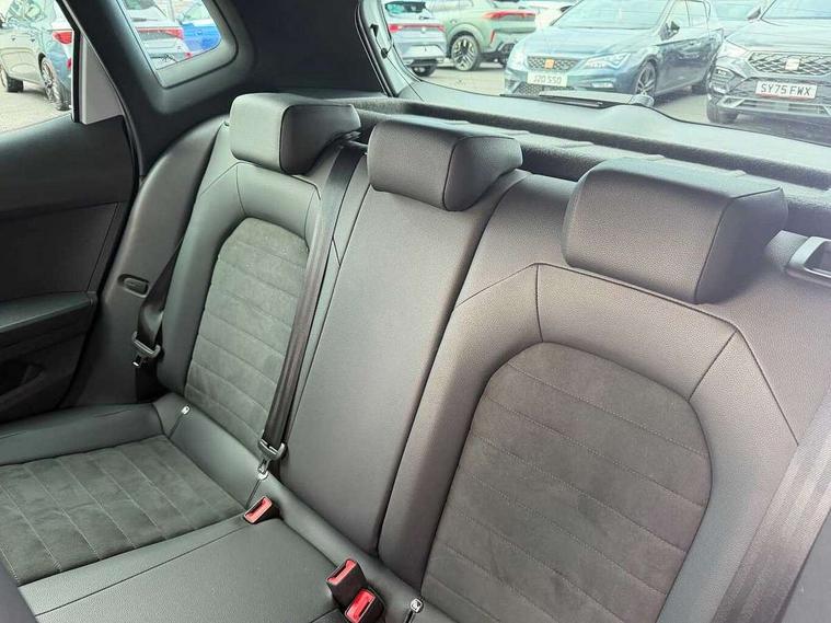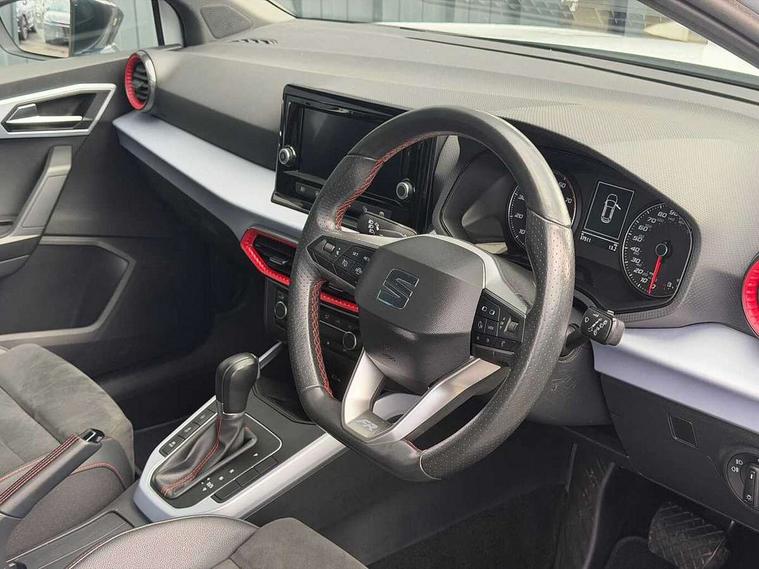 Titan black dashboard, Interior chrome pack - Arona, Alarm with back-up horn, Electronic engine immobiliser, KESSY Keyless entry and go, Locking wheel bolts, Remote central locking + deadlocks, Tow away protection, Bluetooth interface for hands free and audio streaming, DAB digital radio and AM/FM radio, Media system with 8.25" colour touchscreen with USB port (type c), Steering wheel mounted audio controls, 3 point seatbelts on all rear seats, ABS, Active front headrests, Child locks on rear doors, Driver and front passenger airbags with front passenger airbag de activation, front side and curtain airbags, Electronic stability control, Emergency Brake Assist (EBA) and front assist, Front and rear seatbelt reminder, Hill hold control, Multi-Collision braking, Tiredness recognition system, Traction control, Tyre pressure monitoring system, Anti theft roof antenna, Automatic activation of hazard warning lights, Body coloured bumpers, Body coloured door handle inserts, Chrome roof rails and window surrounds, Dark tinted rear windows, Dimming rear view mirror, Electric front/rear windows, Electrically adjustable and heated door mirrors, Front fog lights with cornering function and rear fog light, FULL LED automatic headlights with dynamic headlight range control, coming and leaving home, LED daytime running lights, LED rear tail lights and licence plate lights, Protective side mouldings, Rear side wing doors, Rear spoiler, Rear window wash/wipe, Roof colour door mirrors, Third brake light, Twin exhaust pipe styling hidden exhaust pipe, Visible VIN plate, Windshield wiper with intermittent control and potentiometer, 2 cupholders, 3 seat bench in 2nd row, 60/40 split folding rear seat, Aircare filter, Black interior roof, Double boot floor, Driver sunvisor with covered mirror + card holder, Dual zone climate control, Front comfort seats, Front courtesy light with front and rear reading lights, Gear shift indicator, Height adjustable front seats, Height/reach adjustable steering column, Illuminated boot, Instrument lighting with brightness control, Interior ambient lighting, Interior light in footwell, central console and door panel, ISOFIX points in outer rear seats with top tether anchorage points, Microsuede cloth upholstery, Passenger sunvisor with vanity mirror, Perforated flat bottomed leather steering wheel/gear knob/handbrake with red stitching and FR logo, Single front passenger seat, Steering wheel mounted gearshift paddles, Two front and three rear height adjustable headrests, 'Lights On' Reminder warning buzzer, Analogue cockpit with physical dials, Digital clock, E-call, Electric speed sensitive power steering, Full Link Smartphone Integration with Mirror Link, Apple Car Play, Google Android Auto with USB cable for Apple and Android compatibility, Lane keeping system, Low fuel warning light, Outside temperature display, Rear parking sensor, RPM counter, Seat connect with safety, service and remote, SEAT Drive profile - Four different models normal-sport-eco-individual, steering response, throttle response and gear shifts mode, Trip computer, Wireless phone charger,