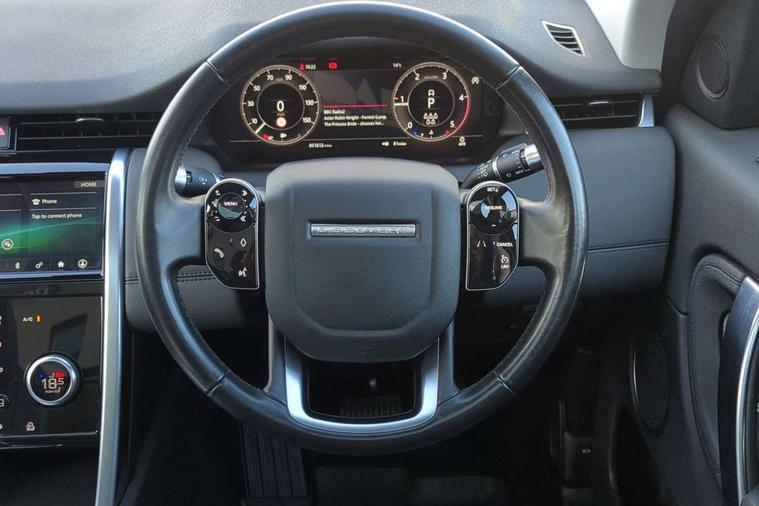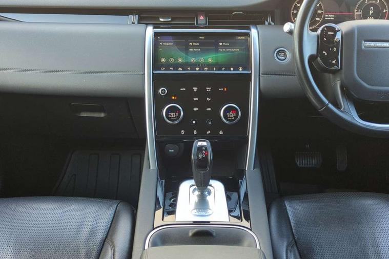 Online pack - Discovery sport, Battery Back Up System (BBUS) with tilt sensor, Intrusion sensor, Locking wheel nuts, Bluetooth connectivity including audio streaming, Digital Audio Broadcast radio-DAB, Steering wheel mounted audio controls, 3 point seatbelts on all seats, ABS, Brake hold function, Collision mitigation braking system, Cornering brake control (CBC), Driver/Front Passenger airbags, Drivers knee airbag, Electronic brake force distribution, Electronic parking brake, ESP + traction control, Hill descent control, Hill launch assist, Pedestrian airbag system, Roll stability control, Side and curtain airbags for front and 2nd row seats, Tyre pressure monitoring system, Automatic headlight levelling, Door mirror memory, Electric front/rear windows, Power fold, auto-dimming, heated door mirrors with approach lights, Rain sensing windscreen wipers, Rear wiper, Front passenger isofix child seat attachment, Illuminated vanity mirrors, Third row dual adjustable individual seats, Tilt/reach adjustable steering wheel, Android Auto, Apple CarPlay, Blind spot assist, Connected navigation pro, Driver condition monitor, InControl remote premium, Interactive driver display, Lane keep assist, PAS, Powered tailgate/boot lid, Service interval indicator, Traffic sign recognition with adaptive speed limiter, Trip computer, All terrain progress control, Coil suspension system, Diesel particulate filter, Terrain Response 2,
