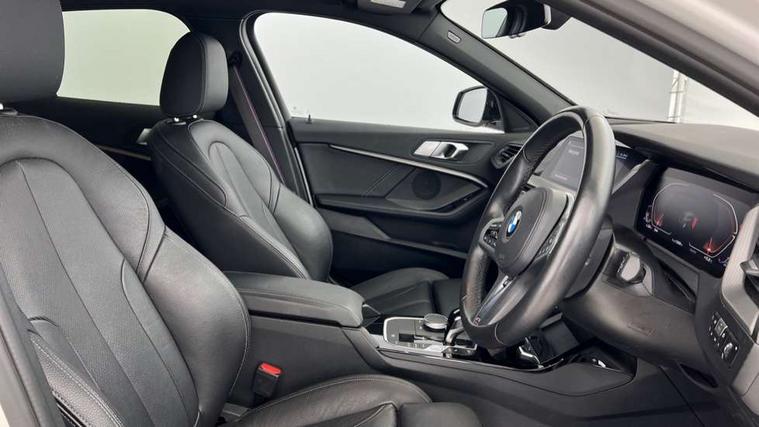 Contrast stitching on instrument panel, Additional interior lighting pack - 1 Series, Connected pack professional - 1 Series, Extended storage pack - 1 Series, Interior lights pack - 1 Series, Luggage compartment pack - 1 Series, M Sport exterior styling aerodynamics pack - 1 Series, Reduced rolling resistance tyres, Automatic drive away locking facility, Central locking switch for all doors, fuel filler cap and luggage compartment, Deadlocking function system to all doors, Locking wheel bolts, Remote control with integrated key with High-gloss Black inlay and M designation and 1 button for open/ close lock, window, open luggage compartment, Start/stop button with comfort go keyless engine start and auto start stop deactivation button, Thatcham Cat.1 alarm and immobiliser, Bluetooth audio streaming, DAB Digital radio, 2 tone horn, 3 point seatbelts on all seats, front pyrotechnic belt tensioners, stopper and belt force limiters, rear coded belt buckles, Airbags - front driver/passenger, front & rear curtain, front side, Anti lock braking system (ABS) with brake assist, BMW emergency call, Brake drying, Braking readiness, Crash sensor activating central locking release, hazard warning lights, fuel cut off, interior lighting + activation of safety battery terminal clamp, Driver and front passenger seat belt security check, Dynamic stability control + (DSC+), Dynamic Traction Control - DTC, Electrically operated hand brake, Front and rear disc brakes, Front passenger manual airbag deactivation, Seatbelt warning, Side impact protection, Tyre pressure monitoring system, Warning triangle and first aid kit, Auto dimming rear view mirror, Automatic headlight beam throw control, Automatic windscreen wipers and automatic headlight, Body colour door handles, Body colour mirror caps, Chrome 'M' logo side designation, Chrome exhaust tailpipe in single, round (Exhaust tailpipe, stainless steel - single, round), Chrome kidney grille frame with Satin Aluminium struts, Direction indicator side lights in exterior mirrors, Electric folding and anti dazzle exterior mirrors, Fading support, Follow me home headlights, Front and rear bumper system with replaceable deformation elements, Front and rear electric windows with open and close fingertip control, anti trap facility and comfort closing, Front door sill finishers in black plastic with M designation in metallic look, Green tinted heat protection glazing, Heated, electrically adjustable exterior mirror aspheric on driver side, convex on passenger side, High gloss shadowline window frame, Recess cover mirror frames and B/C pillar embelisher trim, High level third brake light, LED daytime running lights, LED eyebrow turn indicators, LED front fog lights, Lightweight engineering, Matt black air guide grilles, Model designation on right side of tailgate, Nearside reverse light in rear light cluster, Preparation for high beam assistant, Rain sensor including auto headlights activation, Rear fog lights, Rear window wiper, Shark fin antenna, Visible VIN plate, Welcome lighting, 12V power socket in centre console, 3 rear seat head restraints, 3 spoke M sports design leather steering wheel finished in nappa leather with specific M badge, Anthracite headlining, Anthracite Velour floor mats, Child seat ISOFIX attachment for two outer rear seats and front passenger seat with anchorage points, Conditioned based service, Dakota leather upholstery with perforation and contrast stitching, Driver and front passenger seat heating, Folding rear clothes hook, Four grab handles integrated in roof lining, Front and rear door pockets, Front and rear door pockets with bottle holders, Front and rear side armrest integrated into door trim, Front armrest foldable with integrated storage compartment, Front sports seats with electric side bolster adjustment, Glove compartment, Height adjustable front head restraints, Manual adjust steering wheel, Multi-function controls for steering wheel, Storage compartment in centre console, Sun visors with vanity mirrors and insert tab, Two zone automatic air conditioning, Active guard plus, Attentiveness assist, BMW Online services, BMW Teleservices, Check Control warning system for monitoring of lights and door/luggage compartment open warning, Connected eDrive Services, Eco pro mode, Integrated owners handbook, Oil sensor for level and grade, On board computer, Optimum shift indicator, Personal Profile, Pull away assistant, Speed limiter, Aluminium lightweight construction, Anti roll bar front and rear, Balancer shaft, Double VANOS, Drive Performance Control, Electronic differential lock, High precision injection, M sport suspension, Petrol Particulate Filter, VALVETRONIC engine management,