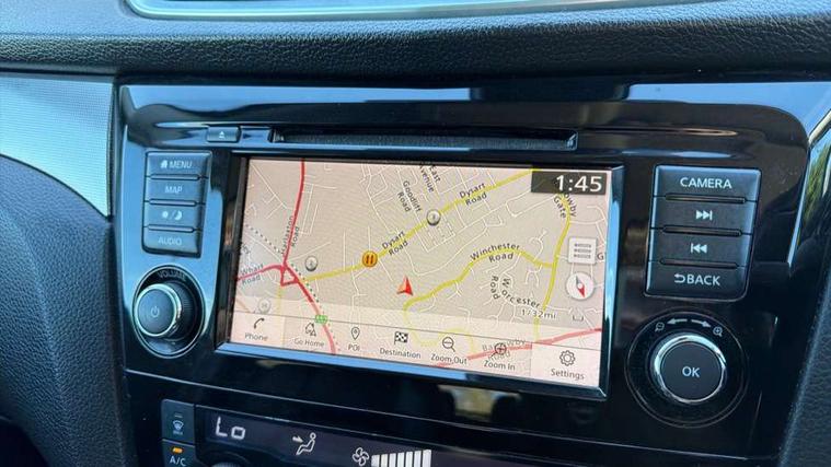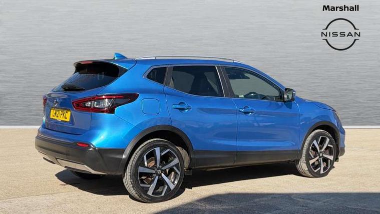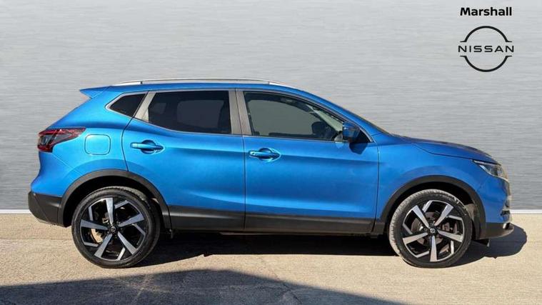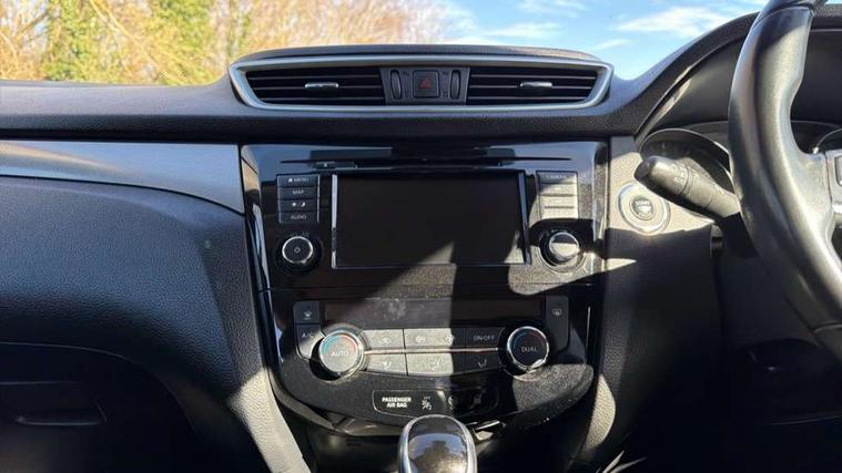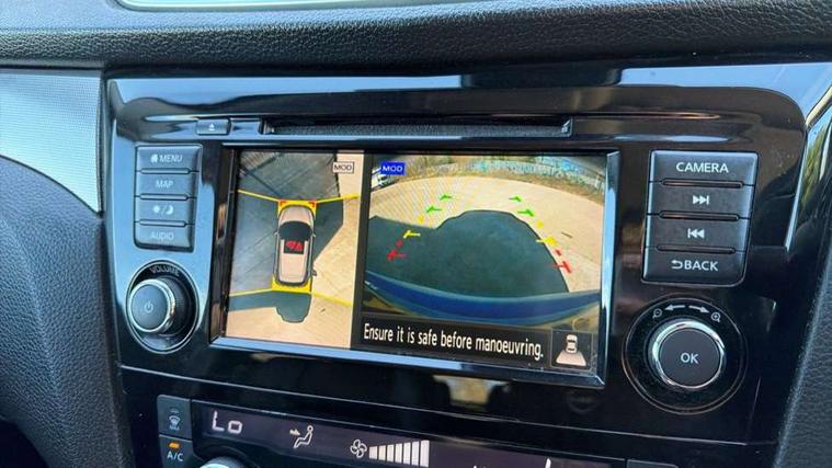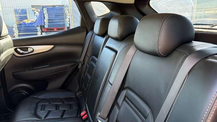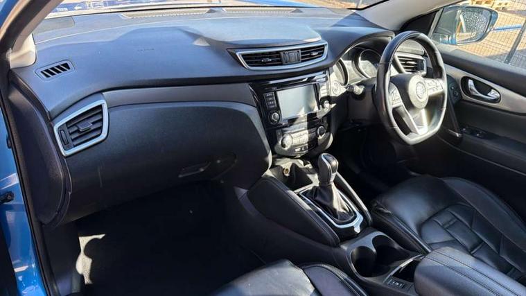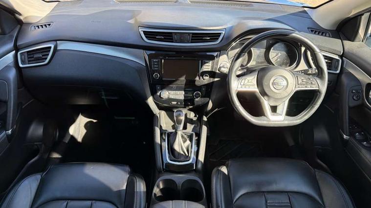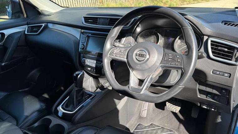 Carbon graphite dash trim, Glass roof pack - Qashqai, Heat package - Qashqai, LED pack - Qashqai, 19" Alloy wheels, Anti-theft immobiliser, Intelligent Key, Remote central locking, Thatcham Cat.1 alarm, 6 speakers, AM/FM radio, CD audio system, Aux-in socket, DAB Digital radio, Steering wheel mounted audio controls, USB port, 6 airbags - Driver, front passenger, curtain and side airbags, ABS, ESP, EBD and brake assist, Auto hold function, Child locks on rear doors, Electronic parking brake, Front and rear seat belt warning, Height adjustable front seatbelts, Hill start assist, Intelligent emergency braking with pedestrian recognition, Passenger airbag deactivation system, Three 3 point rear seatbelts, Tyre pressure monitoring system, Anti dazzle rear view mirror, Auto wipers, Body colour bumpers, Body coloured door handles, Body coloured door mirrors, Chrome window surround, Daytime running lights dip function when turn signal applied, Electric adjustable heated door mirrors with memory, Electric folding door mirrors, Electric front and rear windows with one touch illuminated window controls, Front fog lights, High beam assist, Intelligent auto headlights, LED indicators in door mirrors, Matt silver roof rails, Privacy glass, Rear roof spoiler, Rear wiper with reverse link, Shark fin antenna, Silver rear styling plate, Underbody vortex generators, 2 X front 12v power sockets, 3 height adjustable rear headrests, 60/40 split folding rear seat, Ambient interior lighting, Ambient lighting around centre console, Boot lighting, Centre console storage box/armrest, Chrome interior door handles, Dual zone climate control, Electric 4-way lumbar support for drivers seat, Electrically adjustable driver seat with memory, Electrically adjustable passenger seat, Front and rear door pockets with bottle holders, Front and rear seat belt pre-tensioners with load limiters, Height adjustable front headrests, Individual rear seat reading lights, ISOFIX restraints on outer rear seats x2, Leather D shaped steering wheel, Leather gear lever, Leather knee pad, Luggage board system, Luxury floor mats, Manual height adjustable passenger seat, Manual lumbar support on passenger seat, Monoform front sport seats with plastic backboard, Nappa leather upholstery with 3D quilted, Parcel shelf stow function under luggage board, Pollen filter, Rear armrest with 2 cupholders, Synthetic leather wrapped door handle with contrasting stitching, Tilt/telescopic adjustable steering wheel, 360 degree Intelligent around view monitor, Advanced drive assist display 5'' TFT coloured screen, Apple car play/Android Auto, Bluetooth connectivity, Cruise control + speed limiter, Electric speed sensitive power steering, Front parking sensors, Idle stop/start system, Intelligent park assist, Lane departure warning system, Nissan connect evo 7" touchscreen navigation and entertainment system, Normal or sport selectable steering, Outside temperature sensor, Premium Tomtom connected services, Push button starter, Rear parking sensors, Service interval indicator, Smartphone integration, Traffic sign recognition, Trip computer, Voice control system, Nissan chassis control (intelligent ride control, intelligent trace control, intelligent engine brake),