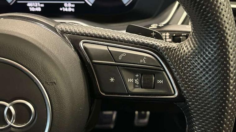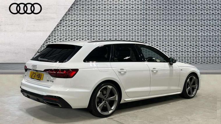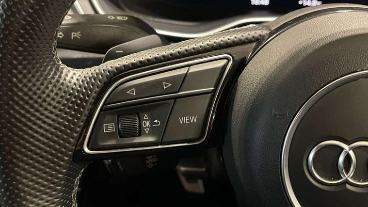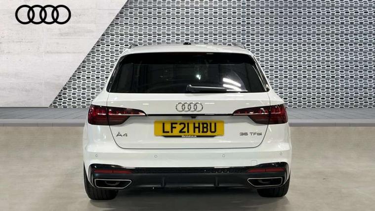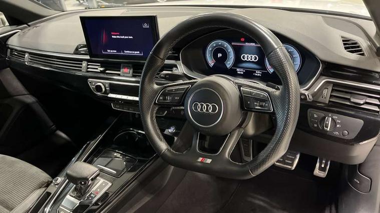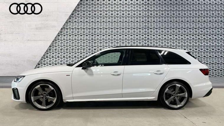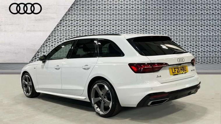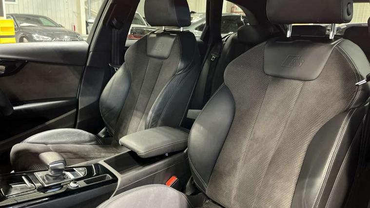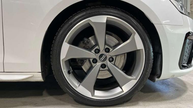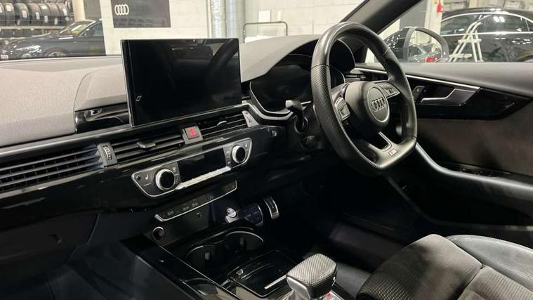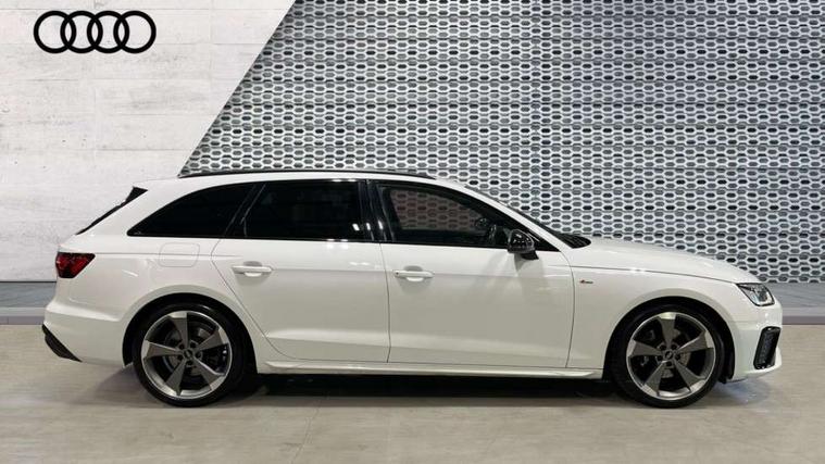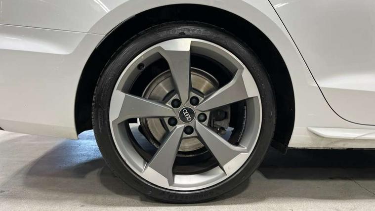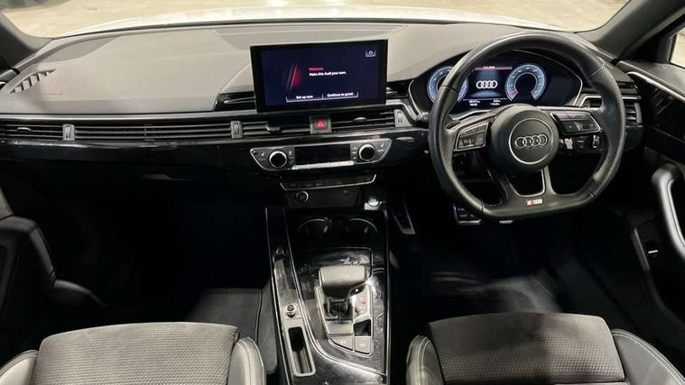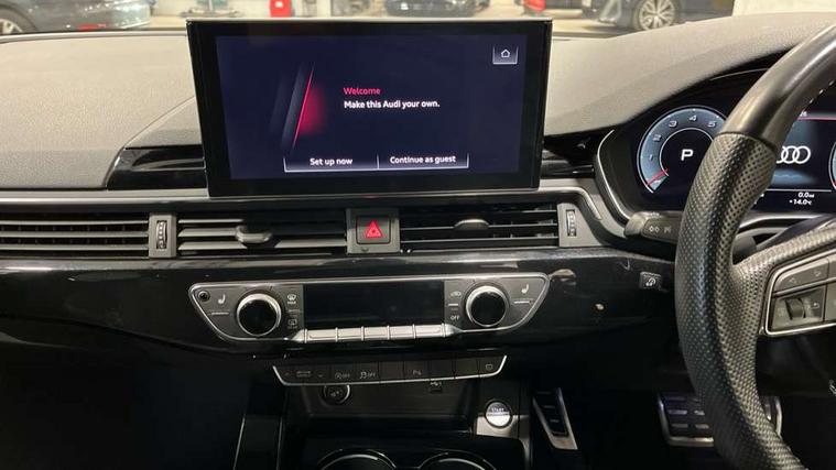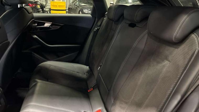 Piano black finish inlay, LED Interior light pack - A4/S4, Titanium black styling pack - A4 Avant, 19" 5 arm rotor design alloy wheels titanium matt look, Tyre repair kit, Anti theft alarm, Anti theft wheel bolts, Keyless Go, 2 USB charging ports, 8 passive loudspeakers, DAB digital radio reception, 3 rear seatbelts, 6 airbags - Driver, front passenger, curtain and side windows, Electronic Stabilisation Control (ESC) including ABS, ASR and EDL, Hill hold assist, Multi collision brake assist, Pop-up bonnet for pedestrian protection, Pre sense city, Seatbelt monitoring, Warning triangle and first aid kit, Auto dimming rear view mirror, Body colour door handles, Body colour front spoiler lip, Body colour side sill trim, Electrically folding auto dimming/adjustable/heated door mirrors with LED side indicators and kerb view function for passenger side, Grained matt black side air inlets with matt aluminium silver inlay, High beam assistant, LED headlights with LED rear lights + dynamic rear indicators + headlight adjustment and high beam, turning light + LED daytime running lights, Matt aluminium silver tailpipe trim, Rain and light sensors, S Line badges on the front wings, S line front and rear bumpers with side skirts, S Line rear diffuser in matt titanium black with trim strip in matt aluminium silver, S Line roof edge spoiler, Windscreen with acoustic glazing, 4 way electric lumbar support for driver and front passenger, 40/20/40 split folding 3 rear seat bench in 3 parts with rear centre armrest, Black cloth headlining, Black perforated leather gearknob, Contrast stitching on seats, steering wheel and gear lever gaiter, Deluxe 3 zone electronic climate control, Door sill trims with aluminium inlay, Electric load area cover, Front and rear head restraints, Front centre armrest, Heated front seats, Illuminated door sill trims with S logo, ISOFIX child seat mounting and top tether, Manual seat adjustment, Stainless steel pedals and foot rest, Tool kit, Audi connect safety and service (e-call), Audi drive select, Audi parking system plus with front and rear sensors, Audi smartphone interface, Audi virtual cockpit, Automatic start-stop system with coasting functionality and efficiency programme, Bluetooth interface, Electromechanical power steering, MMI Navigation plus with MMI touch includes 10.1" high resolution colour MMI display, 3D map, Power operated tailgate, Rear view camera, Voice control system, 54 litre fuel tank, Sports suspension lowered by 23mm,