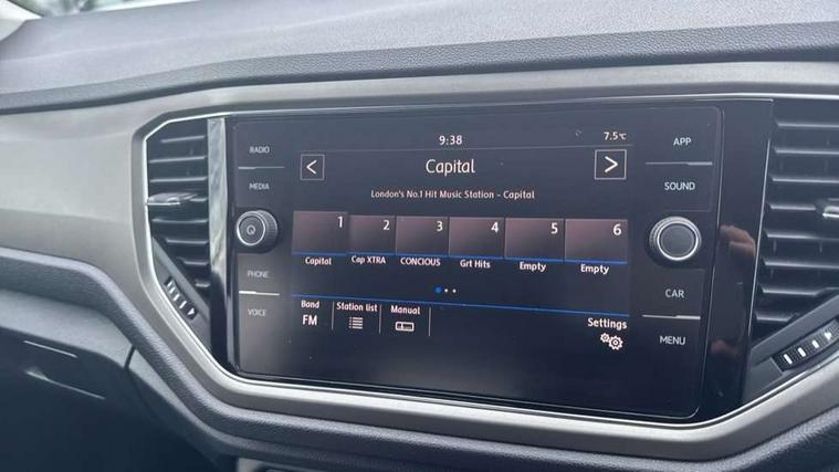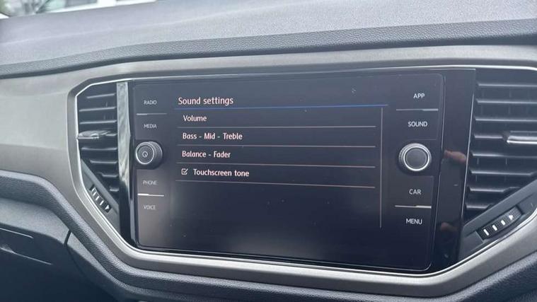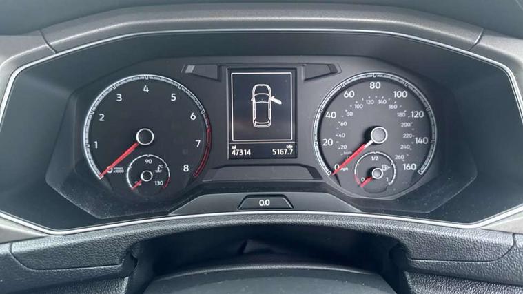 Limestone grey decorative inserts in dash and door panel, Steel space saver spare wheel, Alarm with interior protection and deactivation via infotainment system, Electronic engine immobiliser, Remote central locking with 2 remote folding keys, DAB Digital radio, Multi device interface (MDI) with USB connection, Music playback - MP3, WMA and AAC files, Premium USB cable in choice of either Apple or Android smartphone compatibility, SD card slot, Simultaneous pairing of 2 compatible mobile devices, SMS functionality - read, compose and send SMS messages using touch-screen display, Title and cover art display, 3 rear three point seatbelts, ABS, Curtain airbags, Driver and front passenger safety-optimised head restraints, Drivers and front passengers airbags with passengers deactivation switch, Electronic parking brake with auto hold, Electronic stability control (ESC) includes ASR, EDL, EDTC and trailer stabilisation function, Front seat side impact airbags, Predictive pedestrian protection, Rigid safety cell with front and rear crumple zones, Three point height adjust front seatbelts + pretensioners, Tyre pressure loss indicator, Ventilated front and rear disc brakes, Volkswagen roadside assistance, Auto dimming interior rear view mirror, Automatic hazard lights activation under emergency braking, Black grained lower door protectors, Black grained wheel arches, Body colour bumpers with silver metallic underbody fascia, Body colour door handles, Chrome trim on upper and lower radiator grille, Electrically foldable, adjustable and heated door mirrors with puddle lights and reverse activated kerb-view adjustment on passenger's door mirror, Front and rear electric windows, Front windscreen wiper with intermittent wipe and 4 position delay, Fully galvanised body, Heated rear window, High level 3rd brake light, LED rear number plate lights, Manual coming/automatic leaving home lighting function, Rain sensor, Rear wash/wipe with intermittent wipe setting, 12V socket in centre console storage area, 2 front reading lights, 3 rear head restraints, 4 load lashing points in luggage compartment, Climate control - 2 zone electronic air conditioning with automatic air recirculation and allergy filter, Drawer under drivers seat, Front centre armrest with storage compartment, longitudinal and height adjustable and two rear air vents, Front cupholders x 2, Front seat back storage pockets, Glovebox, Height adjustable front seats, Height/reach adjust steering wheel, Illuminated vanity mirrors, Instrument lighting, white adjustable panel illumination, Interior light delay, Isofix easy fit child seat preparation for 2 outer rear seats, Load through provision with single cup holder when folded down, Luggage compartment cover, removable, Luggage compartment lighting, Split folding rear seat backrests with centre armrest, Storage compartment in left and right luggage area, Storage compartment in rear doors, Storage compartments in driver and front passenger doors, App-Connect, 'Lights On' Reminder warning buzzer, 2 USB connection charging sockets, Adaptive cruise control with front assist, radar sensor controlled distance monitoring, city emergency braking, Automatic start/stop system, Bluetooth telephone and audio connection for compatible devices, Car information display, Driver tips and journey analysis, Dusk sensor, Lane assist, Multifunction computer with visual gear change recommendation for fuel consumption, Service interval indicator, Think blue trainer driver tips and journey analysis, Warning sound and light for doors and tailgate open, Warning sound and light for front seatbelts unfastened, We Connect Go Dongle, Battery regeneration during braking,