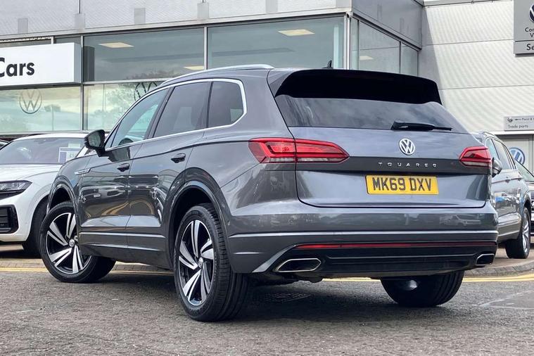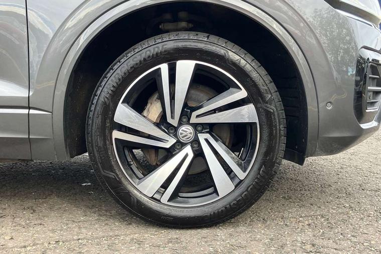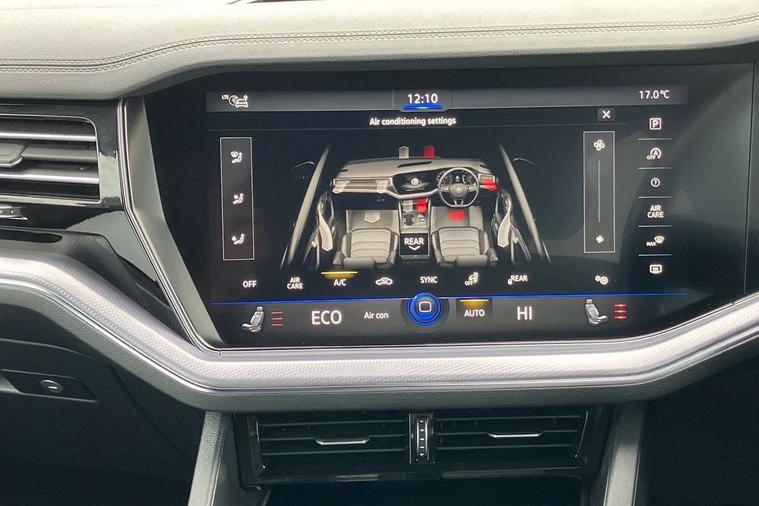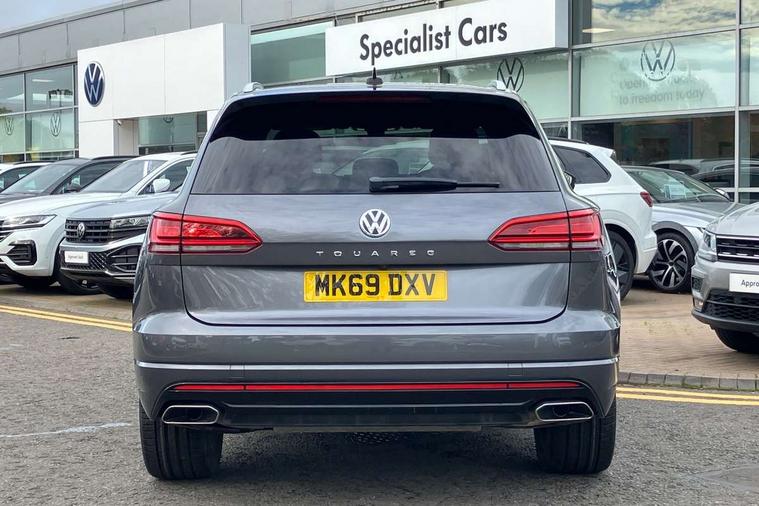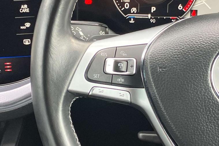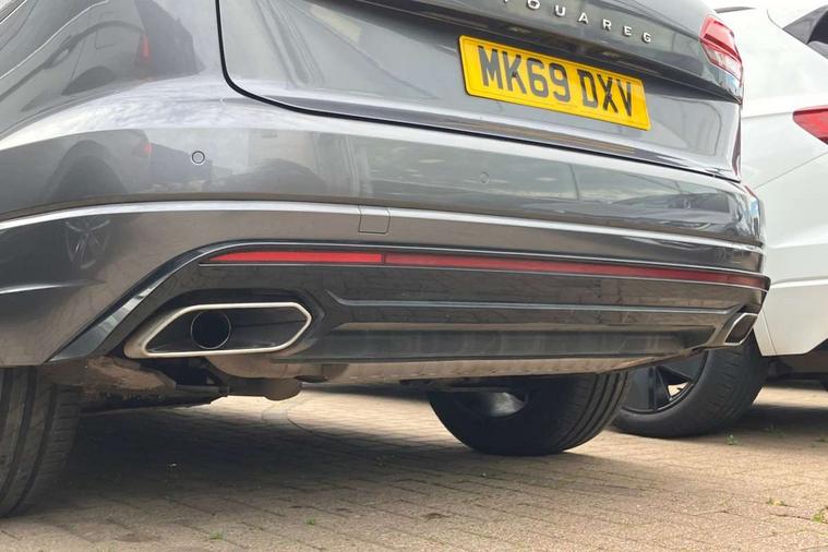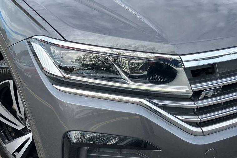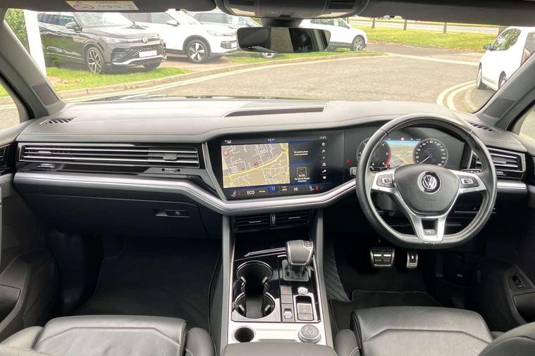 Aluminium dash and door panel inserts, High gloss black centre console, Innovision cockpit pack with Digital cockpit - Touareg, Temporary space saver steel spare wheel, Alarm with interior monitoring in cab, backup horn and towing protection, Anti-theft wheel bolts, Remote central locking, 2x SD card slot, DAB Digital radio, Gesture control for infotainment system, 3 point front seatbelts with pre-tensioners, ABS, Active bonnet, Automatic post collision braking system, Curtain airbags, Driver/Front Passenger airbags, EBD + Brake Assist, EDL, Electronic parking brake with auto hold, ESC with ASR, Front seat side impact airbags, Hill descent control, Passenger airbag deactivate switch, Seatbelt warning lamp and buzzer, Three 3 point rear seatbelts, Two tone horn, Warning triangle and first aid kit, Auto dimming rear view mirror, Automatic coming/leaving home lighting function, Automatic headlights, Black rear diffuser, Body colour bumpers, Body colour door handles, Body colour door mirrors with integral indicators, Body coloured side skirts, Chrome exhaust tailpipes, Chrome protective strip on door sill, Chrome trimmed radiator grille and air intake, Chrome trimmed side windows, Front and rear electric windows, Headlight range control, Heated windscreen washer jets, LED cornering headlights, LED daytime running lights, LED Indicators, Puddle lights, Rear fog lights, Rear wiper, 12V Accessory socket in centre console, 3 rear head restraints, 4 load lashing points, 4 way adjustable front head restraints, 4 way electric lumbar support for driver and front passenger, 4 zone climate control, 60/40 split folding slide/recline rear seat, Driver/front passenger seat height adjustment, Electric luggage compartment cover, Folding rear centre armrest with 2 cupholders, Front + rear carpet mats, Front centre armrest with storage box, Gear shift indicator, Height/reach adjust steering wheel, Isofix preparation for 2 rear child seats, Jack and tool kit, Leather heated multifunction steering wheel with paddle shift, Leatherette door trim, Load through provision, Soul black headlining, Stainless steel load sill protection, Stainless steel pedals, Sunvisors with illuminated vanity mirrors, ACC - Adaptive cruise control with front assist, forward collision warning, distance monitoring, city emergency brake and speed limiter, Apple car play/Android Auto, Bluetooth hands free telephone connection, Drive select with Damper control, Driver alert system, Dynamic road sign display camera controlled system with visual warning for traffic and road signs, Instrument cluster, MirrorLink, Multifunction camera with lane assist, Multifunction computer, Park assist with rear view camera, Service interval indicator, Speed sensitive power steering, Start/stop system with regenerative braking, Tailgate power latch, Traffic sign recognition, Voice control system, Wireless Smartphone charger, Torsen limited slip differential,
