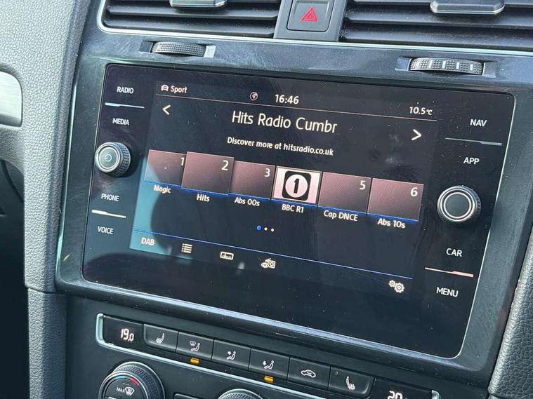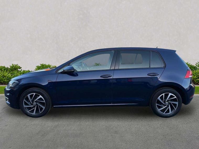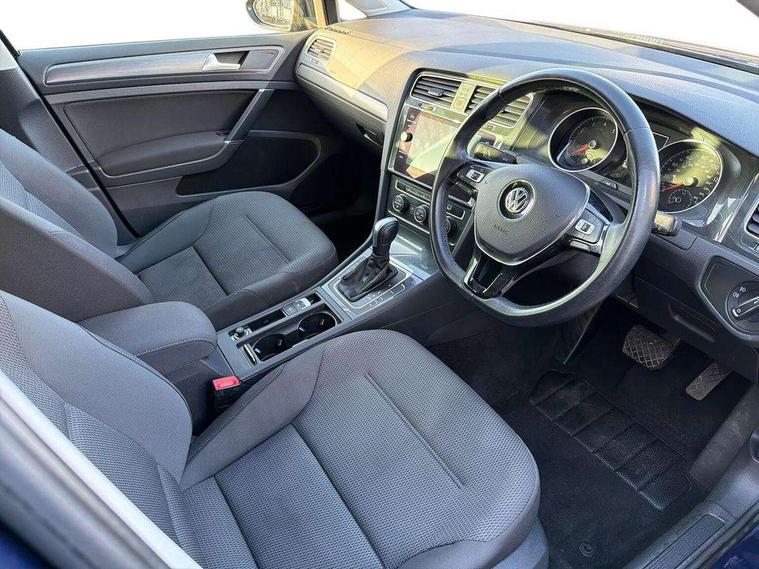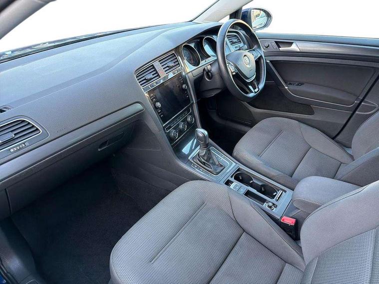 Brushed dark silver decorative inserts in dash and door panels, Chrome plated air vent surround, Chrome-plated light switch surround, Polar night black decorative inserts in centre console, Convenience Pack - Golf, Mirror pack - Golf, Winter pack - Golf, Steel space saver spare wheel, Alarm with interior protection and deactivation via infotainment system, Electronic engine immobiliser, Composition media system, DAB Digital radio receiver, Driver Personalisation profile selection, MP3/WMA compatability, Multi device interface (MDI) via USB connection, Premium USB cable in choice of either Apple or Android smartphone compatibility, SMS Functionality, Title and cover art display, USB and SD card connectivity, Volkswagen media control, 3 rear three point seatbelts, Airbags - Driver's and front passenger's, curtain airbag, Driver's knee, front side impact and passenger's airbag deactivation switch, Anti-lock Braking System (ABS) with Hydraulic Brake Assist (HBA), Automatic post collision braking system, Child locks on rear doors, Driver/Passenger optimised head restraints, Electronic parking brake with auto hold, Electronic stability control (ESC) including Electronic differential lock (EDL) and ASR (Traction control) with deactivation via infotainment system, Front ventilated disc brakes and rear disc brakes, Pre crash preventive occupant protection, Three point height adjustable front seatbelts with tensioners, Tyre pressure loss indicator, Black front air intake and radiator grille with chrome insert, Black rear diffuser, Body colour bumpers, Body colour door handles, Body colour door mirrors with integrated indicators, Dusk sensor + automatic driving lights, Electric front windows, Electric rear windows, Electrically adjustable and heated door mirrors, Fully galvanised body, Heated rear windscreen, High level 3rd brake light incorporating LED Technology, LED front fog lights with static cornering light function, Range adjustable headlights via infotainment system with LED daytime running lights, Rear fog lamp, Rear number plate lights incorporating LED technology, Rear tinted glass 65% light absorbing from B pillar backwards, Rear window aerial, Rear window wash/wipe with intermittent wipe, Reflectors in all doors, Tailgate with integrated rear roof spoiler, Windscreen wipers/ intermittent wipe + 4 position delay, 12V socket in luggage compartment, 3 rear headrests, 4 load lashing points in luggage compartment, 60/40 split folding rear seat backrest, Bag hook in luggage compartment x 2, Climate control - 2 zone electronic air conditioning with automatic air recirculation and allergy filter, Cooled glovebox, Cover for storage compartment in centre, Dust/pollen filter, Front and rear reading lights X 2, Front centre armrest with storage compartment and two rear air vents, Front seat back storage pockets, Grab handles front x 2, rear x 2 with integrated coat hooks, Height and reach adjustable steering wheel, Illuminated vanity mirrors, Instrument lighting white adjustable panel illumination, Interior light delay, Isofix preparation for 2 rear child seats, Load through provision with rear centre armrest and cupholders x2, Luggage compartment lighting, Overhead storage box, Pearl grey headlining, Storage box in luggage compartment, Storage compartment in roof console with cover, Storage compartments in centre console, Storage compartments in front doors, Storage compartments in rear doors, Stowable luggage compartment cover, Sun visors, Variable boot floor, height adjustable and removable, 'Lights On' Reminder warning buzzer, ACC - Adaptive cruise control with front assist, forward collision warning, distance monitoring, city emergency brake and speed limiter, Bluetooth telephone and audio connection for compatible devices, Brake pad wear indicator warning light, Driver alert system, Driving Mode Selection with four preset modes - Eco, normal, sport or individual modes, Multifunction computer with visual gear change recommendation for fuel consumption, Power assisted speed sensitive electro-mechanical steering, Push tank flap, Speed limit display, Speedo, rev counter, electronic odometer, trip, service interval display, exterior temperature and fuel gauge, Stop/start system, Think blue trainer driver tips and journey analysis, Warning buzzer and light for front seatbelts unfastened, Battery regeneration during braking, XDS electronic differential lock,