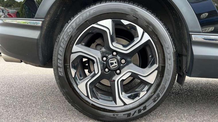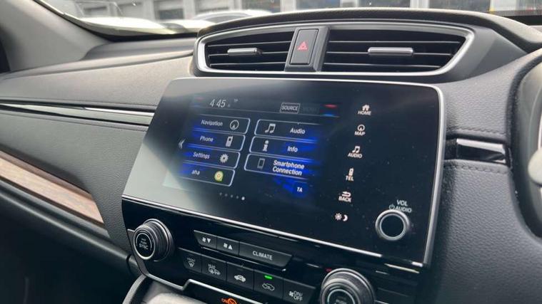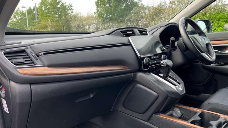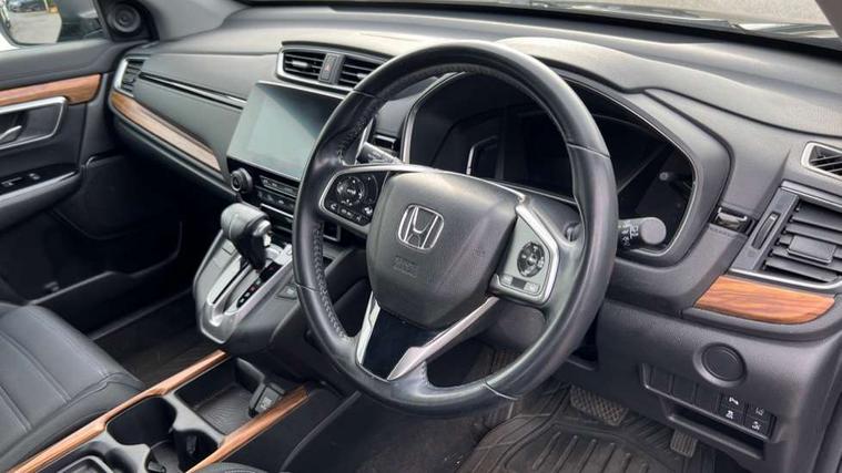 Temporary spare wheel, Honda super locks, Immobiliser, Remote central locking with 2 remote folding keys, Security alarm, Ultrasonic sensor and tilt sensor, 2 USB sockets in rear, 2x USB sockets in front, 8 speakers, DAB Digital radio, Steering wheel mounted controls, Subwoofer, 5 x 3 point seatbelts, ABS/EBD, Anti-whiplash front headrests, Brake assist function, Collision mitigation braking system, Deflation detection system, Driver airbag, Electronic parking brake with auto hold, Front and rear curtain airbags, Front side airbags, Hill start assist, Passenger airbag deactivate switch, Aspheric door mirrors, Auto dimming rear view mirror, Automatic headlights with dusk sensor, Body colour bumpers, Body colour door handles, Door mirrors tilt when reversing, Electric front windows/one touch facility, Electric rear windows + one touch facility, Electrically adjustable and heated door mirrors, Electrically retractable door mirrors, Front fog lights, High beam assist, LED daytime running lights, LED Headlights, LED rear lights, Rain sensor, Rear wiper, Shark fin roof aerial, Trailer stability assist, Welcome home function, 60/40 split folding rear seat, Accessory sockets, AWD emblem rear, Cargo hooks, Courtesy lights, Driver's electric adjustable lumbar support, Driver/passenger front seatback pockets, Driver/passenger sunvisors with illuminated vanity mirrors, Dual zone automatic climate control, Front centre armrest, Front map lights, Height adjustable driver's seat, Illuminated glovebox, Instrument panel with garnish wood film, Isofix child seat preparation, Leather steering wheel, Paddle shift controls, Rear air vents, Rear centre armrest, Rear headrests, Rear reading lights, Rear seat conversation mirror, Silver interior door handles, Sunglasses holder with mirror, Tilt/telescopic adjustable steering wheel, Tonneau cover, Trunk light, Adaptive cruise control, Agile handling assist, Bluetooth hands free telephone connection, Economy mode, Electric power steering, Emergency stop signalling system, Forward collision warning, Front and rear parking sensors, Honda CONNECT with GARMIN Navigation + 7" touchscreen, DAB radio, Apple CarPlay, Android Auto, Aha app integration and internet browsing, Intelligent multi info display, Lane departure warning system, Lane keep assist system, Low speed following, Rear view camera, Road departure mitigation, Speed limiter, Traffic sign recognition, Vehicle stability assist,