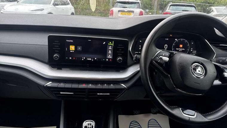 Aluminium decorative inserts, Door locks with immobiliser, Keyless start/stop, Remote central locking, 2x USB Type C ports (for charging and data transfer), 8 speakers, DAB Digital radio, Swing radio with 8.25" touchscreen, 3 point front/outer rear seatbelts+pre-tensioners, Alarm with interior monitoring, tilt sensor and back up horn, Automatic door unlocking in case of crash, Automatic fuel cut off in case of crash, Automatic warning lights in case of emergency braking, Drivers knee airbag, Electronic parking brake, Emergency call and proactive services, ESC including ABS, EBV, MSR, ASR, EDS, HBA, DSR, Head and curtain airbags, Hill hold control, Hill start assist, ISOFIX on front passenger seat and outer rear seats, Passenger airbag deactivate switch, Rear disc brakes, Two tone horn, Tyre pressure monitor, Visual and acoustic seat belt reminder, Warning reflectors in front door, Aero front windscreen wipers with intermittent function, Auto dimming rear view mirror, Black window surrounds, Body colour door mirrors and handles, Chrome grille surround, Electric front and rear windows, Electrically adjustable and heated door mirrors, Heated rear windscreen, High level third brake light, Ice scraper in fuel cap, Rain and light sensors, Rear fog light on one side, 3 rear headrests, 4 foldable roof handles, Chrome inner door handles, Climatronic dual-zone electronic air conditioning, Cloth upholstery, Front centre armrest, Front head restraints, Height adjustable driver and passenger seat with lumbar support, Illuminated air conditioned glovebox, Leather trimmed gearshift lever, Luggage compartment lighting x1 light, Parcel shelf - folding, Satin black textured with artificial stiching in dash board pads, Sun visors with mirrors, Sunglasses storage, Ticket holder, Two-spoke leather multi function steering wheel, Umbrella in door panel, Unsplit rear bench seat and split folding backrest, 1x USB Type C port in rear view mirror (charging only), 2x USB Type C ports in rear of front centre armrest (charging only), Bluetooth system, Electro-mechanical power steering, Front assist system, Lane assist, Rear parking sensors with manoeuvre assist, Smartlink (includes android auto and mirrorlink), Speed limiter, Virtual Cockpit - 10.25" digital display, Wireless SmartLink for Apple Car Play,