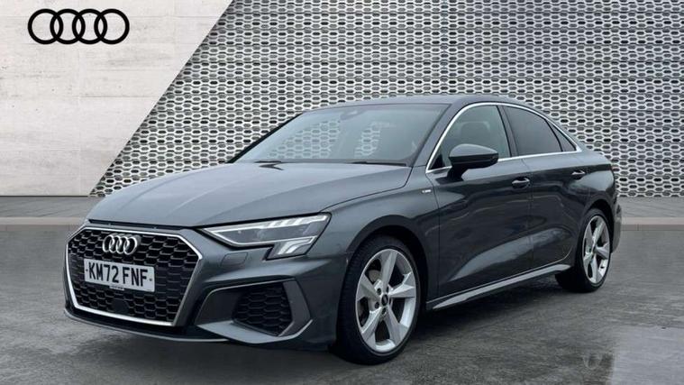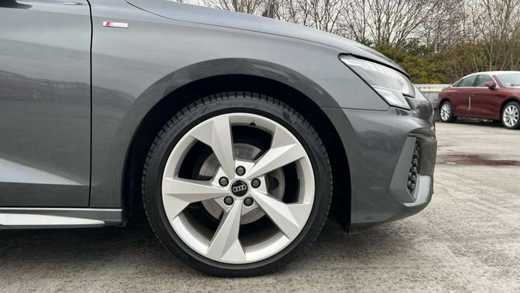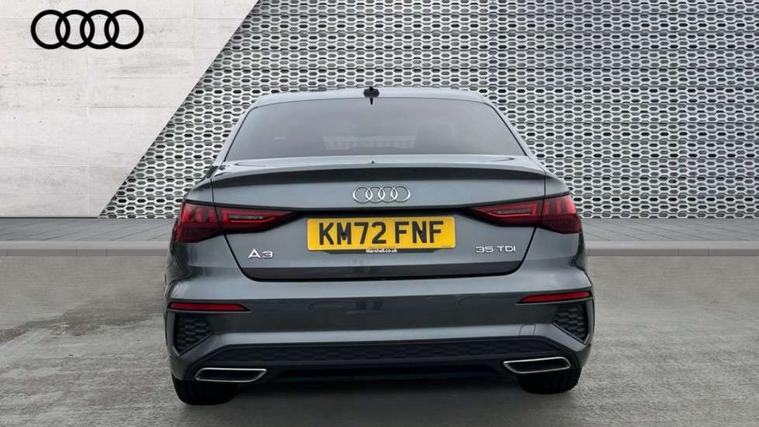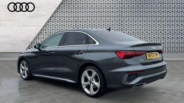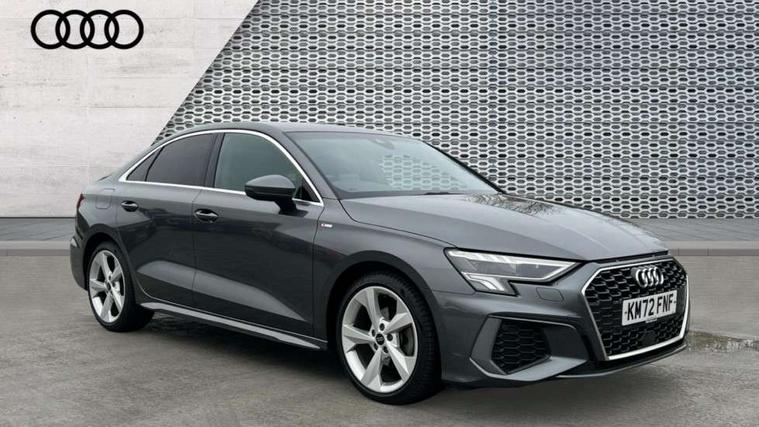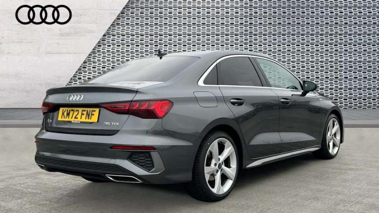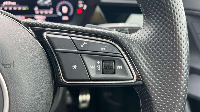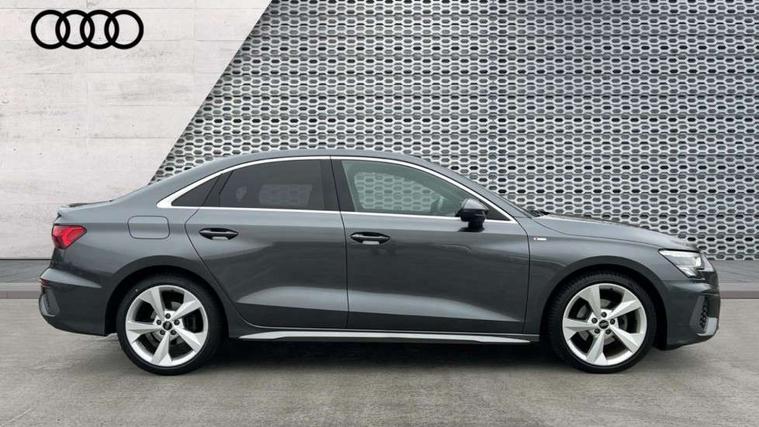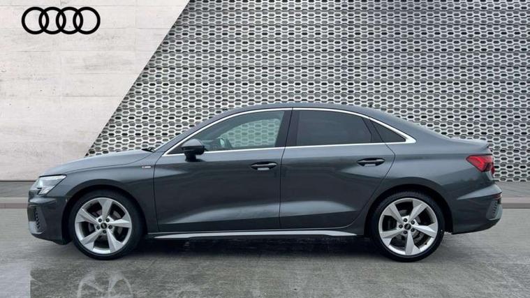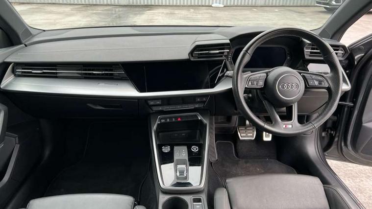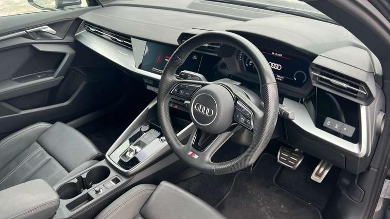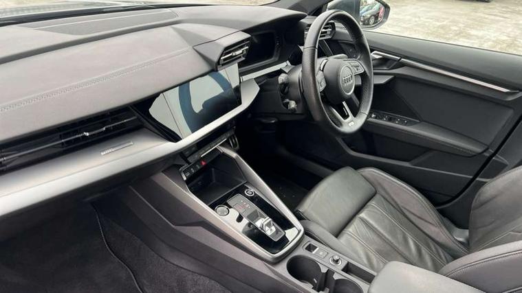 Aluminium air vent surrounds, Aluminium trim elements, Dark spectrum aluminium inlays, accent surfaces in the dashboard and centre console in platinum grey silk effect paint finish, Aluminium interior elements pack - A3 Saloon, LED interior lighting pack - A3 Saloon, S line styling pack - A3 Saloon, Anti theft alarm, Anti-theft wheel bolts, Electronically operated child locks, Immobiliser, Remote control central locking, 2x USB Type C ports (for charging and data transfer), 6 passive loudspeakers, CD player, DAB Digital radio, 3x3 point rear seat belts, Driver and front passenger airbag with passenger airbag deactivation, Electronic Stabilisation Control (ESC) including ABS, ASR and EDL, First aid kit with warning triangle and 2 safety vests, Front side airbags with head airbags and interaction airbag, Hill hold assist, Pre-sense front with pedestrian and cyclist detection, Seatbelt monitoring, Tyre pressure loss indicator, 3rd brake light, Acoustic glass windscreen, Aluminium window trim, Auto dimming frameless rear view mirror, Electrically adjustable/heated/folding/dimming door mirrors with kerb view includes integrated LED indications + kerb view function for passenger side, Front electric windows, Illuminated door sills with aluminium inserts at the front with S logo, LED daytime running lights, LED headlights with LED rear lights and dynamic rear indicators, Light and rain sensors, Model and engine designation badges at rear, Privacy glass - dark tinted rear window, rear door and side windows, Rear boot, Rear electric windows, Rear side wing doors, S line bumpers, S roof spoiler, 12V socket and storage compartment in front centre console, 3 seat bench in 2nd row, 40/20/40 split folding rear seat bench with cupholder, Black cloth headlining, Dual zone electronic climate control, Front and rear centre armrest in leather, Front and rear headrests, Front/rear floor mats, Height and reach adjustable steering wheel, Illuminated vanity mirror, Interior lighting - glove compartment light and right hand side, Luggage compartment floor covering, Manual boot compartment lid, Manually adjustable front sport seats, Seat side bolsters, Single front passenger seat, Stainless steel pedals and front footrest in black, Twin leather upholstery with front sports seats S embossed logo, Audi connect emergency call and service, Audi drive select (Auto, Comfort, Dynamic, Efficiency and Individual), Audi smartphone interface, Audi Virtual Cockpit - 10.25" digital and colour instrument cluster, Automatic start/stop system with recuperation, Bluetooth interface, Collision avoidance assistant, Electromechanical power speed sensitive steering, Lane departure warning system, MMI Navigation Plus with high resolution 10.1" colour touch screen display, Service indicator, Voice control system with natural language interaction, Diesel particulate filter,