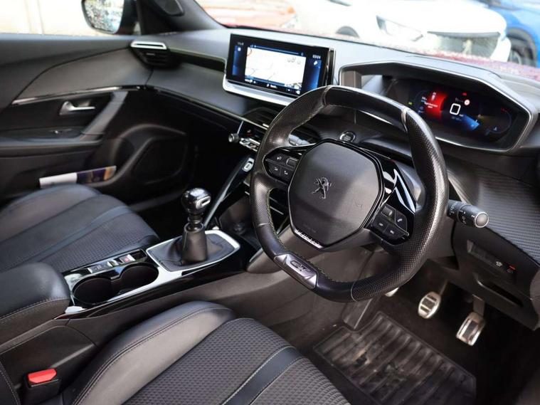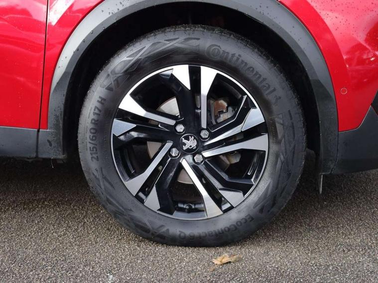 Carbon effect Dashboard, front and rear door panel finish, Visibility pack - 2008, 17" Salamanca diamond cut alloy wheels, Alarm system with anti-lift sensor, Automatic door locking when moving off, Automatic hazard light activation upon heavy brake application, Deadlocks, Electronic code immobiliser, Exterior door lock x1 (Left-hand or passenger’s side), 2 front USB socket with USB-C, 2 USB sockets in rear, DAB Radio (Digital Audio Broadcasting), Voice recognition for radio, navigation and telephony features, 2x 2nd row ISOFIX child seat mountings, ABS (Anti-lock Braking System) with EBD (Electronic Braking Distribution) and EBA (Emergency Braking Assistance), Acoustic vehicle alerting system, Active safety brake with night function/cyclists/pedestrians, Adaptive driver and front passenger airbags with passenger airbag deactivation function, Child locking functionality on rear doors, Driver/front passenger side airbags, Electric parking brake, ESP (Electronic Stability Program) + Hill Start Assist, Front and rear curtain airbags, Front and rear disc brakes, Front and rear three-point retractable seatbelts, with force limiters, Front optimised safety headrests and rear retractable headrests (x3), height adjustable, Tyre pressure sensor, 2 X Rear number plate lights, Automatic front windscreen wipers, Black diamond roof, Black front wing trim with gloss black detail and GT badging, Body coloured exterior door handles, Chrome Lion Badge front and rear, Dark tinted rear side and tailgate windows, Diamond black mirror shells, Diamond black rear spoiler, Electric, heated, and power folding door mirrors, Frameless electrochrome interior rear view mirror, Front bumper - Silver lower trim, Full LED headlights with smartbeam assist, Gloss black finish on B pillar, Gloss black longitudinal roof rails, Gloss black rear cluster connecting strip, Gloss black roof bars, Gloss black window surround, GT model designation badging on tailgate, Headlights left on audible warning, LED daytime running lights with 3 claw headlight with distinctive tooth design, LED side indicator lights integrated into door mirrors, LED third brake light, Model designation badges front and rear, One touch electric front/rear windows with pinch protection, Radiator grille - Dark chrome chequered and gloss black edge trim, Radiator grille - gloss black top edge trim, Rear full LED 3D peugeot signature claw effect lights with daylight function, Rear reversing lights, Rear side wing doors, Rear windscreen wiper triggered automatically in reverse gear, Stainless steel door sill scuff plates, Tailgate with heated rear windscreen and wiper blade, Twin chromed exhaust pipes, Welcome lighting, Wheel arch extensions, 1/3 to 2/3 split folding rear seats, 12V socket, 3 seat bench in 2nd row, 8 Colour personalisable ambient lighting, Aluminium pedals, Automatic air conditioning with pollen and active carbon filter, Central front armrest with storage compartment, Driver and front passenger sport seats, Electric power steering with reach and rake adjustable steering column, Front and rear carpet mats in black with lime green stitch detail, Front LED interior light with 2 reading spotlights and rear interior light with timer, Front passenger seat manual adjustment - height, longitudinal and back rest angle, Gear lever top - manual in full grain leather, Gear shift indicator, Heated front seats, High centre console, ISOFIX child seat mounting points on passenger seat, Lime green contrast stitching to front centre console, door panels and dashboard facia, Mistral full-grain perforated leather steering wheel with Lime Green stitch detail and satin chrome 'GT' emblem, Modular boot floor, Piano keys: Gloss black and chrome toggle switches to access main functions of the vehicle and touchscreen functions, Roof lining - Mistral black, Seatbelt unfastened on the move audible and visual alert for front and rear seats, Single front passenger seat, Switch for Push Button Start finished in black with chrome surround, Blind spot monitoring, Bluetooth telephone facility, Connected 3D navigation, Driver attention warning, Exterior temperature indicator with ice warning, Front and rear parking sensors, Lane keep assist, Mirror screen with mirror link, apple carplay and android auto, Multi function trip computer, Peugeot connect SOS and assistance, PEUGEOT i-Cockpit with 10" capacitive colour touchscreen, PEUGEOT i-Cockpit with compact steering wheel, PEUGEOT i-Cockpit with configurable 3D headup instrument panel, Smart phone docking station, Smartphone charging plate, Speed limit recognition and recommendation, Visio Park 1 with 180 degree Colour reversing camera,