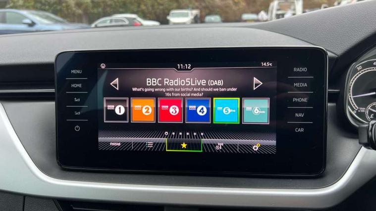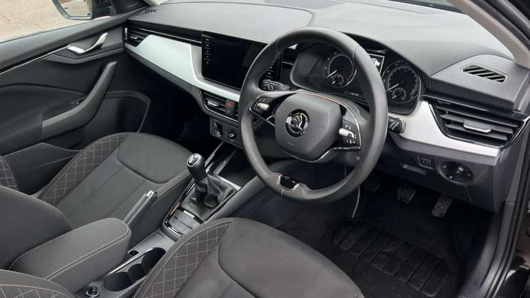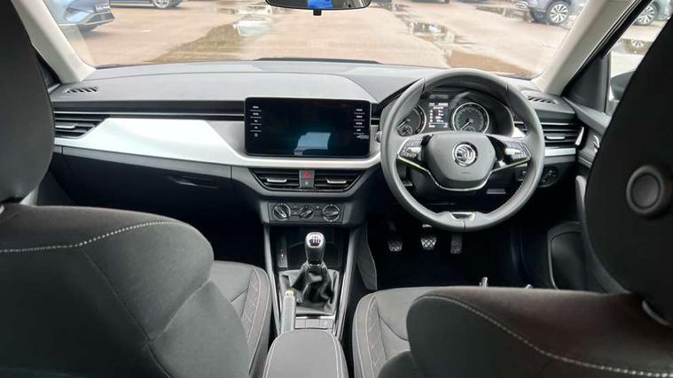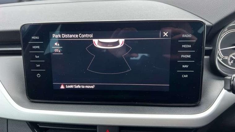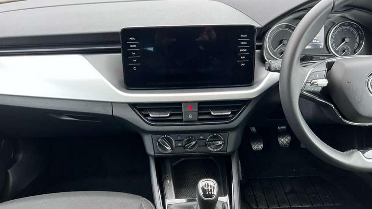 Silver haptic decorative insert on the dashboard with hot stamping in glossy black, Anti-theft alarm system with interior monitoring, backup horn, towing protection and remote central locking with SAFE system, Anti-theft wheel bolts, Electronic engine immobilizer, 8 speakers, Auxiliary input socket, DAB Digital radio, 3x3 point rear seatbelts, Airbags - driver and front passenger, ESP, Front passenger airbag deactivation switch, Front side airbags with curtain airbags, Hill hold control, Manual parking brake, Manual rear child locks, One tone horn, Rear disc brakes, Seatbelt reminder for driver an co-driver, Traction control, Tyre pressure monitor, Body colour bumpers, Body colour door mirrors and handles, Chrome grille surround, Dimming rear view mirror with black surround, Electrically adjustable and heated door mirrors, Front and rear electric windows, Headlight range control, Heated rear window, LED rear lights - low functionality, LED third brake light, Light sensors, Privacy glass, Rain sensor, Rear fog lights, Rear side wing doors, Rear wiper, 12V Accessory socket in centre console, 3 seat bench in 2nd row, Chrome inner door handles, Cloth upholstery, Front head restraints, Glove compartment with illumination, Height adjustable driver and front passenger seats - manual, Ice scraper, Isofix child seat fittings on outer rear seats, ISOFIX on front passenger seat, Manual lumbar support for front seats, Rake/reach adjustable steering wheel, Reading lights, Single front passenger seat, Sun visors with illumination on front passenger, Textile floor mats, Third rear headrest, Top tether for front passenger seat, Umbrella in driver's door, Amundsen satellite navigation with 9.2" glass colour touchscreen display, web radio, voice control and traffic sign recognition, Bluetooth system, E-call, Front assist system, Gesture control, PAS, Service indicator, Speed limiter, Wireless SmartLink for apple car play, android auto and mirrorlink,