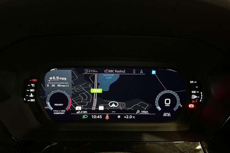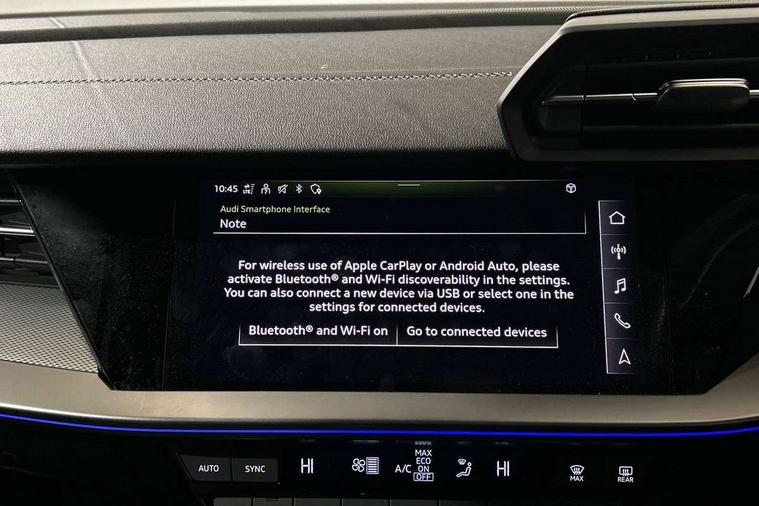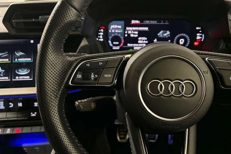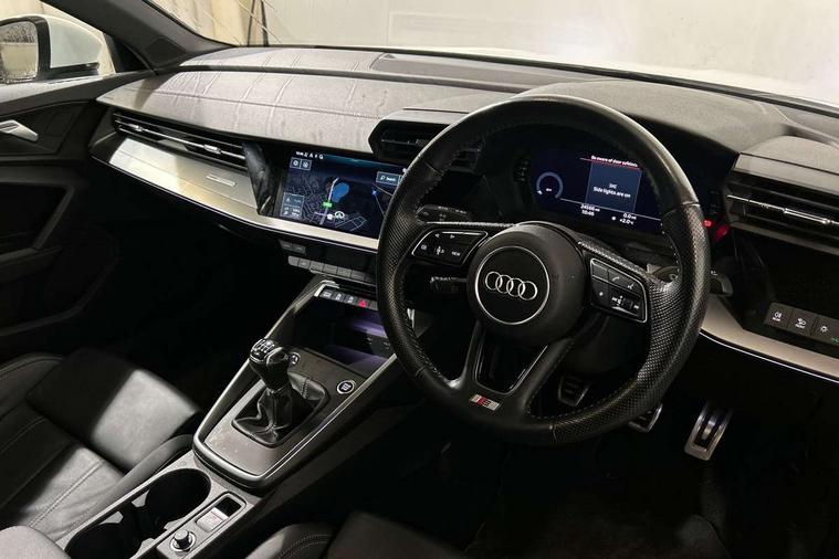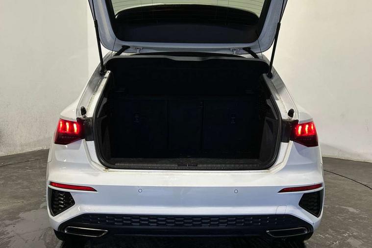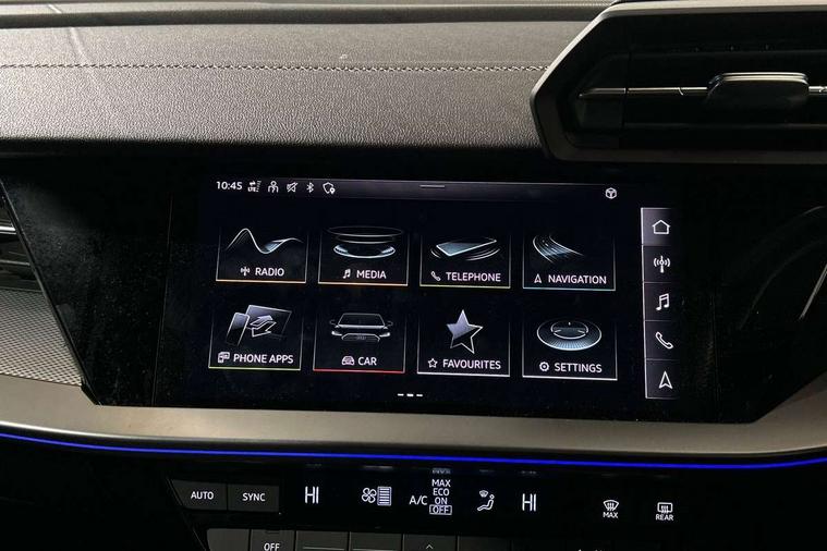 Black dashboard, Detail dashboard around MMI touch colour display in glass look, black with surround in aluminium look, Micrometallic silver inlay, Non smoking pack - Q3, Anti theft alarm, Anti theft wheel bolts, Remote central locking, 1 x USB type C and 1 USB type A charging points, 6 passive loudspeakers, DAB digital radio module, 3x3 point rear seatbelts, 6 airbags - Driver, front passenger, curtain and side windows, Audi pre-sense front with pedestrain and cyclist recognition, Electrically operated child locks on rear doors, Electromechanical parking brake, Electronic stabilisation control including ABS, ASR and EDL, Hill descent control, Hill hold assist, Pre sense basic, Seatbelt monitoring, Tyre pressure warning, Warning triangle and first aid kit, Acoustic windscreen, Aluminium window trim, Auto dimming frameless rear view mirror, Bumpers and underbody protection in contrasting manhattan grey paint finish, Diffuser grille in grained matt black, Diffuser trim in manhattan grey metallic, Door sill trims with illuminated aluminium inlay, Electrically folding, adjustable and heated door mirrors with integrated LED side indicators and kerb view function for passenger side, Front and rear electric windows, Front fog lights, Front side air inlets in Manhattan grey metallic, Grille surround in aluminium silver matt, High gloss black finish B and C pillars, Honeycomb design radiator grille in matt titanium black, LED headlights with LED daytime running lights and dynamic rear indicator, LED rear lights, Rain and light sensors, 12V socket in rear centre console, 40:20:40 folding with manual adjustment for 60:40 forwards/backwards position and backrest angle, Adjustable rear seat bench/backrest, Dual zone electronic climate control, Front and rear floor mats, Front and rear headrests, Front and rear roof module including reading lights, Front centre armrest, Glove compartment lighting, Height and reach adjustable steering wheel, ISOFIX child seat mounting for front passenger with airbag deactivation and outer rear seat including top tether attachment point for outer rear seats, Luggage compartment light, Lunar silver cloth headlining, Manual front seats with height adjustment, Stainless steel luggage compartment sill finisher, Audi connect safety and service (e-call), Audi drive select, Audi lane departure warning, Audi side assist, Audi smartphone interface includes wireless Apple carplay/Android Auto, Audi Virtual Cockpit - 10.25" display, Bluetooth interface, Camera based traffic sign recognition, Cruise control + speed limiter, MMI Navigation Plus with high resolution 10.1 inch touchscreen colour display, Power operated tailgate, Progressive steering, Rear parking sensors, Service interval indicator, Start stop system with recuperation, Voice control system with natural language interaction, Sports suspension,
