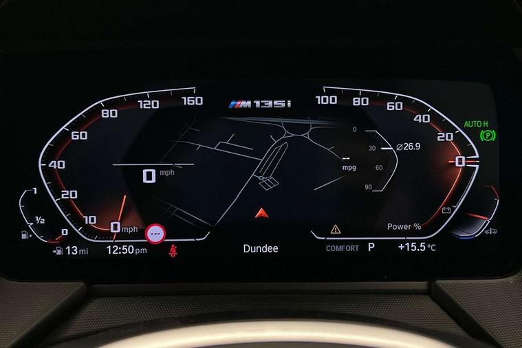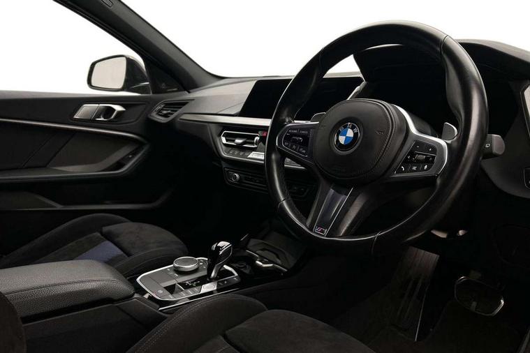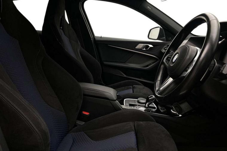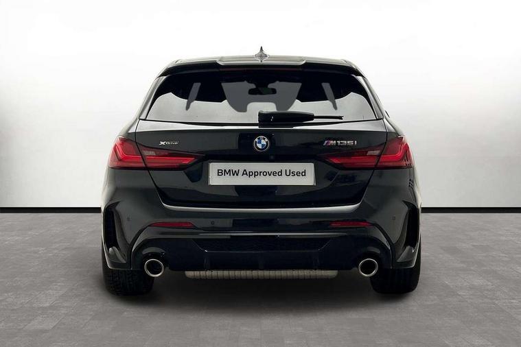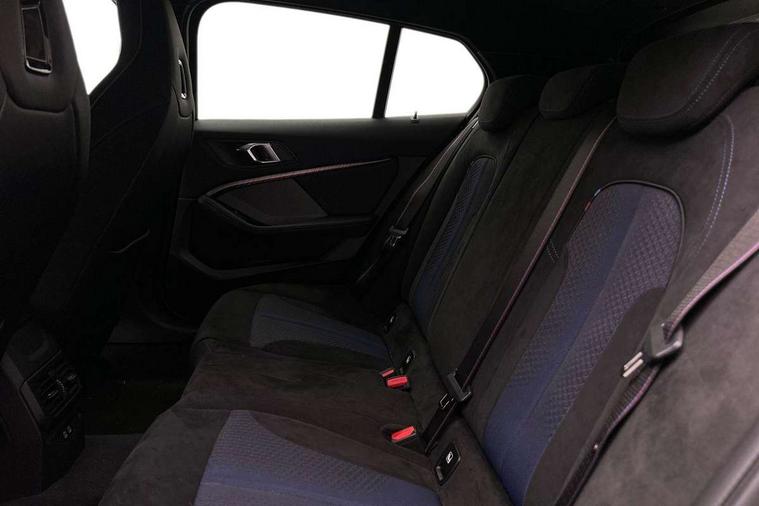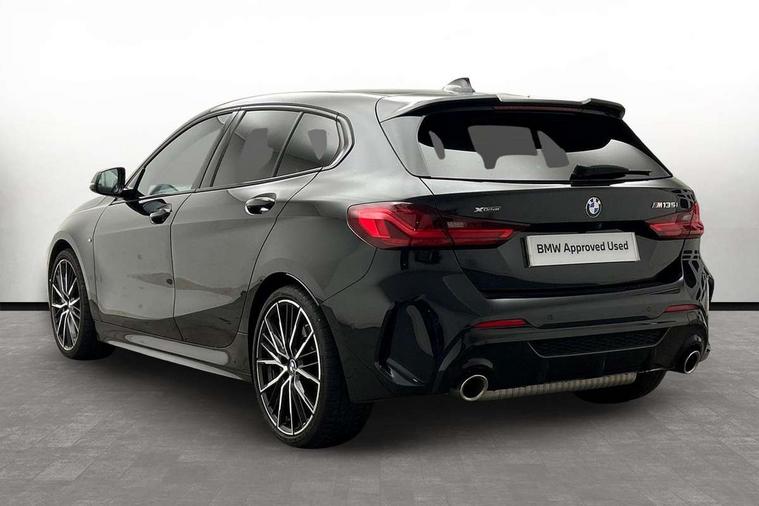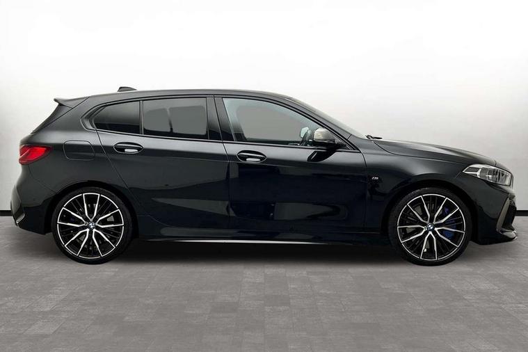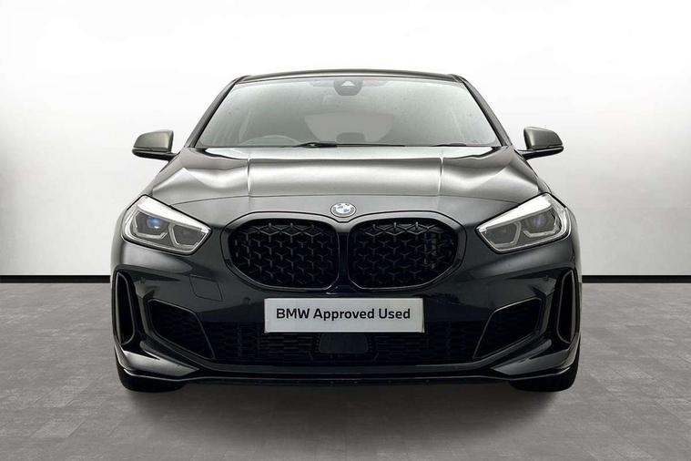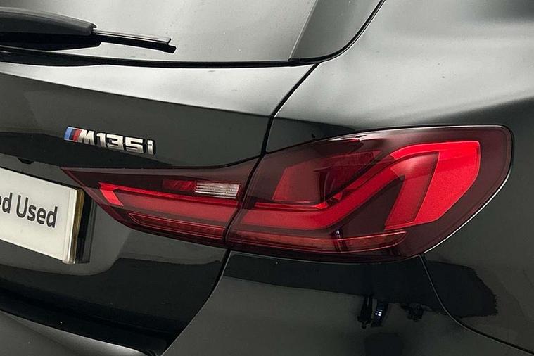 Contrast stitching on instrument panel, Additional interior lighting pack - 1 Series M135i, Connected pack professional - 1 Series, Extended storage pack - 1 Series, Interior lights pack - 1 Series, Luggage compartment pack - 1 Series, M Sport exterior styling aerodynamics pack - 1 Series 135i, 18" Burnished M double spoke Bi-colour alloy wheels finished in Cerium grey matt - style 556M, BMW mobility system, Reduced rolling resistance tyres, Automatic drive away locking facility, Central locking switch for all doors, fuel filler cap and luggage compartment, Deadlocking function system to all doors, Locking wheel bolts, Remote control with integrated key with High-gloss Black inlay and M designation and 1 button for open/ close lock, window, open luggage compartment, Start/stop button with comfort go keyless engine start and auto start stop deactivation button, Thatcham Cat.1 alarm and immobiliser, Bluetooth audio streaming, DAB Digital radio, 2 tone horn, 3 point seatbelts on all seats, front pyrotechnic belt tensioners, stopper and belt force limiters, rear coded belt buckles, Airbags - front driver/passenger, front & rear curtain, front side, Anti lock braking system (ABS) with brake assist, BMW emergency call, Brake drying, Braking readiness, Cornering brake control, Crash sensor activating central locking release, hazard warning lights, fuel cut off, interior lighting + activation of safety battery terminal clamp, Driver and front passenger seat belt security check, Dynamic stability control + (DSC+), Dynamic Traction Control - DTC, Electrically operated hand brake, Electrically operated hand brake including automatic hold function, Front and rear disc brakes, Front passenger manual airbag deactivation, Integrated torsen mechanical limited slip differential on front axle, M Sport brakes with blue calipers, M sport seatbelt, Seatbelt warning, Side impact protection, Tyre pressure monitoring system, Warning triangle and first aid kit, Auto dimming rear view mirror, Automatic headlight beam throw control, Automatic windscreen wipers and automatic headlight, Body colour door handles, Cerium grey exterior mirror caps, Direction indicator side lights in exterior mirrors, Electric folding and anti dazzle exterior mirrors, Fading support, Follow me home headlights, Front and rear bumper system with replaceable deformation elements, Front and rear electric windows with open and close fingertip control, anti trap facility and comfort closing, Front door sill finishers with M135i designation, Green tinted heat protection glazing, Heated, electrically adjustable exterior mirror aspheric on driver side, convex on passenger side, High gloss shadowline window frame, Recess cover mirror frames and B/C pillar embelisher trim, High level third brake light, Integrated front windscreen with washer jets, Kidney grille frame in Cerium Grey with Mesh design, LED daytime running lights, LED eyebrow turn indicators, Lightweight engineering, M logo designation side in cerium grey, M performance exhaust system, M rear spoiler, Matt black air guide grilles, Model designation on right side of tailgate, Nearside reverse light in rear light cluster, Preparation for high beam assistant, Rear fog lights, Rear window wiper, Round exhaust system with twin cerium grey tailpipes in left and right split, Shark fin antenna, Visible VIN plate, Welcome lighting, 12V power socket in centre console, 3 rear seat head restraints, 3 spoke M sports design leather steering wheel finished in nappa leather with specific M badge, Anthracite headlining, Child seat ISOFIX attachment for two outer rear seats and front passenger seat with anchorage points, Conditioned based service, Driver and front passenger seat heating, Floor mats in anthracite velour with contrasting colour seam to match contrast stitching on instrument panel, Folding rear clothes hook, Four grab handles integrated in roof lining, Front and rear door pockets, Front and rear door pockets with bottle holders, Front and rear side armrest integrated into door trim, Front armrest foldable with integrated storage compartment, Front M seats, Glove compartment, Height adjustable front head restraints, Manual adjust steering wheel, Multi-function controls for steering wheel, Storage compartment in centre console, Sun visors with vanity mirrors and insert tab, Two zone automatic air conditioning, Active guard plus, Attentiveness assist, BMW Live Cockpit Professional sat nav system including 10.25" high resolution display and Intelligent Voice Assistant, BMW Online services, BMW Teleservices, Check Control warning system for monitoring of lights and door/luggage compartment open warning, Eco pro mode, Gearshift time display in manual mode, Integrated owners handbook, M Sports steering, Oil sensor for level and grade, On board computer, Optimum shift indicator, Personal Profile, Pull away assistant, Speed limiter, Sporty fast gear shifting in sport mode, Aluminium lightweight construction, Anti roll bar front and rear, Balancer shaft, Double VANOS, Drive Performance Control, Eight speed sport automatic transmission with electronic selector lever, Electronic differential lock, Engine cover with M performance designation, High precision injection, Larger fuel tank capacity (50 litres), Launch control, Petrol Particulate Filter, VALVETRONIC engine management,