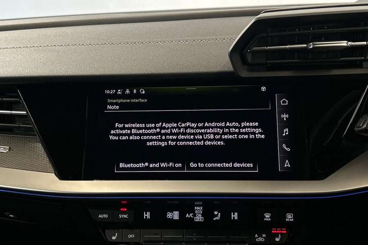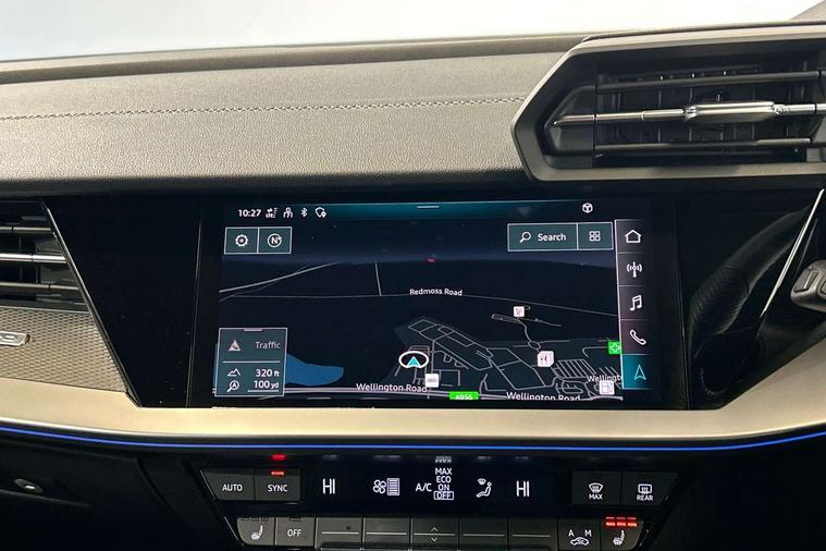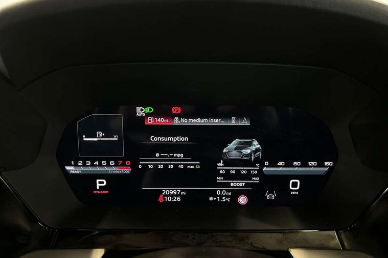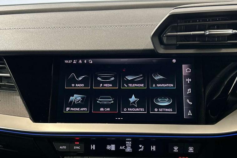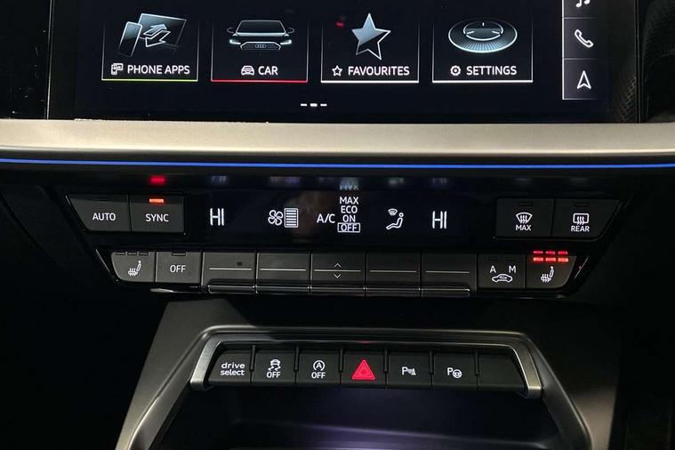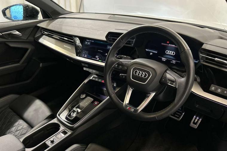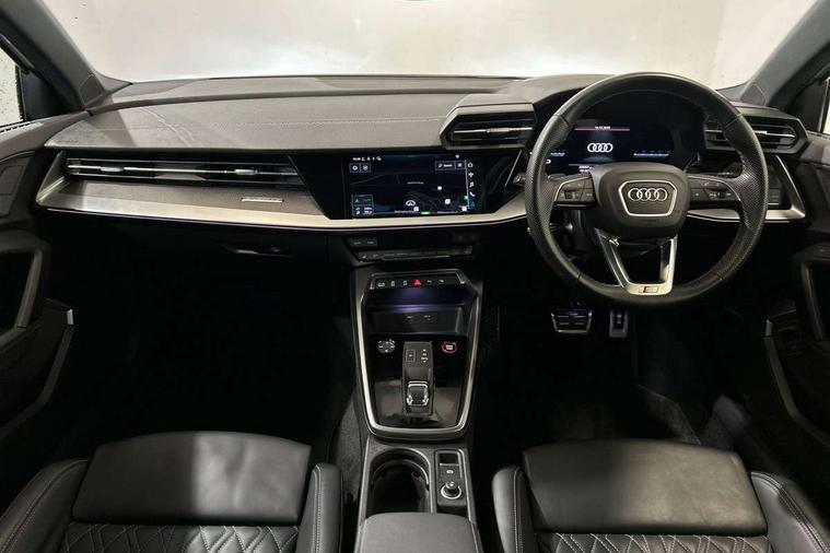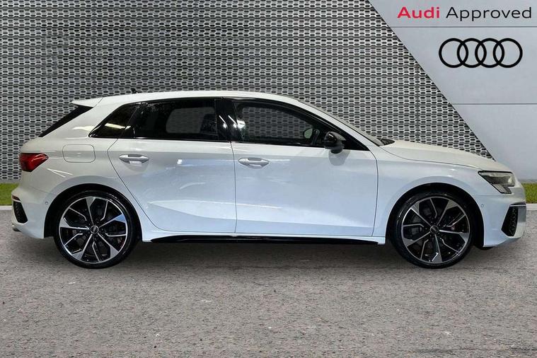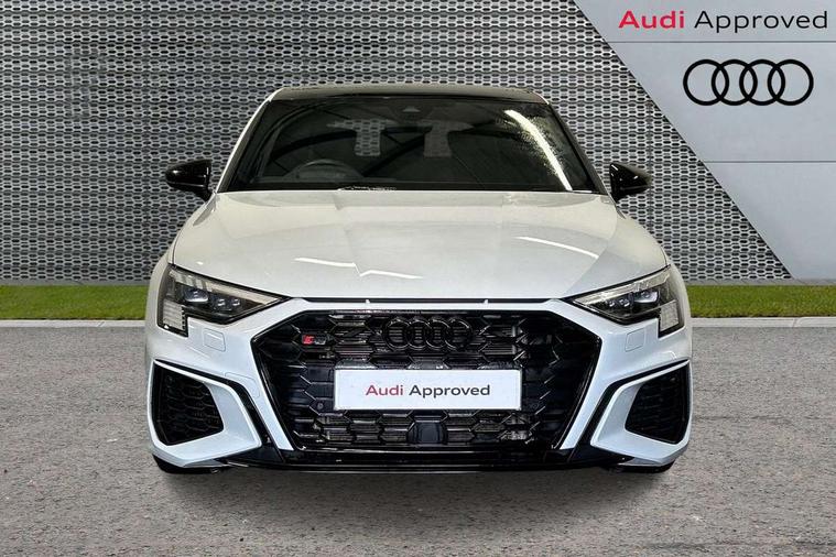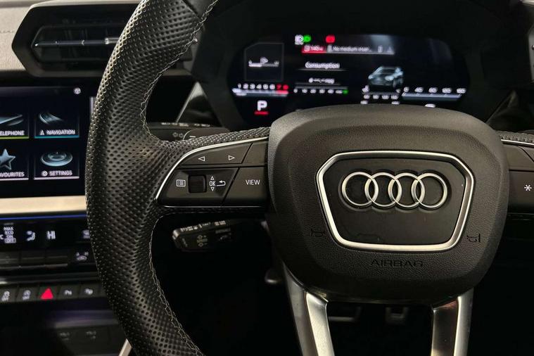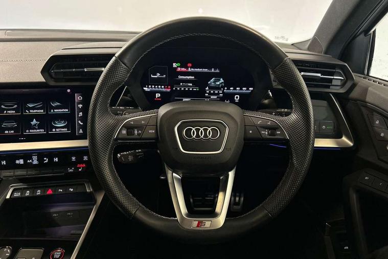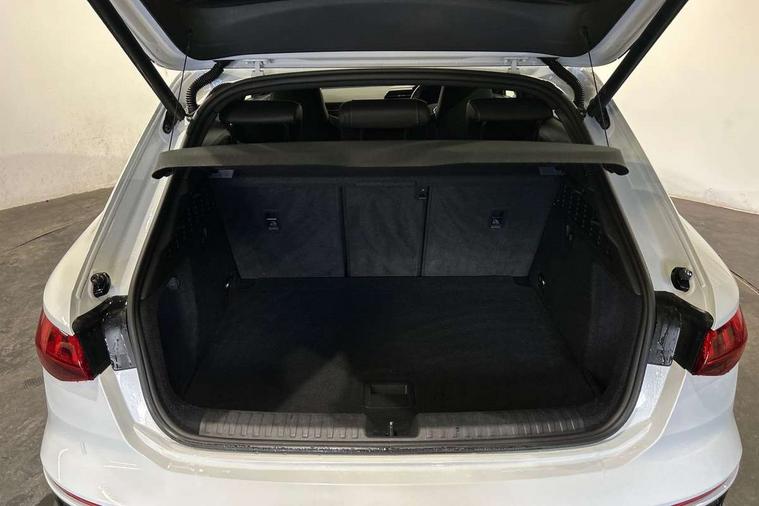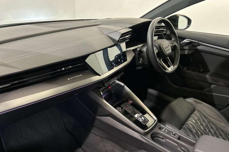 Carbon inlays, accent surfaces in the dashboard and centre console in platinum grey silk effect paint finish, Aluminium interior elements pack - A3 Sportback, Black styling pack - A3 Sportback Vorsprung, Comfort and sound pack - A3, Design body styling - A3 Sportback, Driver assistance package - A3 Sportback, Extended ambient lighting pack - A3 Sportback, Storage pack - A3 Sportback, Advanced key, Anti theft alarm, Anti-theft wheel bolts, Electronically operated child lock, Immobiliser, Remote control central locking, 2xUSB-C connection with data and charging functions, DAB Digital radio, 3x3 point rear seat belts, Audi pre sense front, Driver and front passenger airbag with passenger airbag deactivation, Electronic Stabilisation Control (ESC) including ABS, ASR and EDL, First aid kit with warning triangle and 2 safety vests, Front side airbags with head airbags and interaction airbag, Pre-sense front with pedestrian and cyclist detection, Seatbelt monitoring, Tyre pressure loss indicator, 3rd brake light, Acoustic glass windscreen, Audi Beam uses LEDs to project Vorsprung logo, Audi matrix LED headlights, LED rear lights, dynamic front and rear indicators and headlight cleaning system, Auto dimming frameless rear view mirror, Electrically adj heated/folding + automatically dimming exterior mirrors with memory + automatic kerb side function for passenger side exterior mirror, Front electric windows, Headlight washers, Illuminated aluminium inserts front door sills with S logo, Integrated LED indicators in door mirrors, LED daytime running lights, Light and rain sensors, Panoramic glass sunroof, Privacy glass - dark tinted rear window, rear door and side windows, Rear electric windows, Rear side air outlets in grained matt black, Rear side wing doors, Rear wiper, 12V socket and storage compartment in front centre console, 3 seat bench in 2nd row, 3 spoke leather multifunction steering wheel with paddle shift, 4 way electrically adjustable lumbar support for driver and front passenger, 40/20/40 split folding rear seat bench with cupholder, Black cloth headlining, Dual zone electronic climate control, Electrically adjustable front seats with memory function for driver's side, Front and rear headrests, Front/rear floor mats, Height and reach adjustable steering wheel, Interior lighting - glove compartment light and right hand side, Luggage compartment floor covering, Seat side bolsters, Single front passenger seat, Stainless steel pedals and front footrest in black, Audi drive select (Auto, Comfort, Dynamic, Efficiency and Individual), Audi smartphone interface, Audi virtual cockpit plus - 12.3" full HD resolution dynamic digital instrument cluster, Automatic start/stop system with recuperation, Bluetooth interface, Collision avoidance assistant, e-Call (emergency call), Head up Display, Lane change assistant with exit warning system and rear cross traffic alert, Lane departure warning system, MMI Navigation Plus with high resolution 10.1" colour touch screen display, Power operated tailgate - Luggage compartment lid opens electrically, Progressive steering, Service indicator, Trip computer, Voice control system with natural language interaction, Quattro permanent all wheel drive, S suspension with damper control,