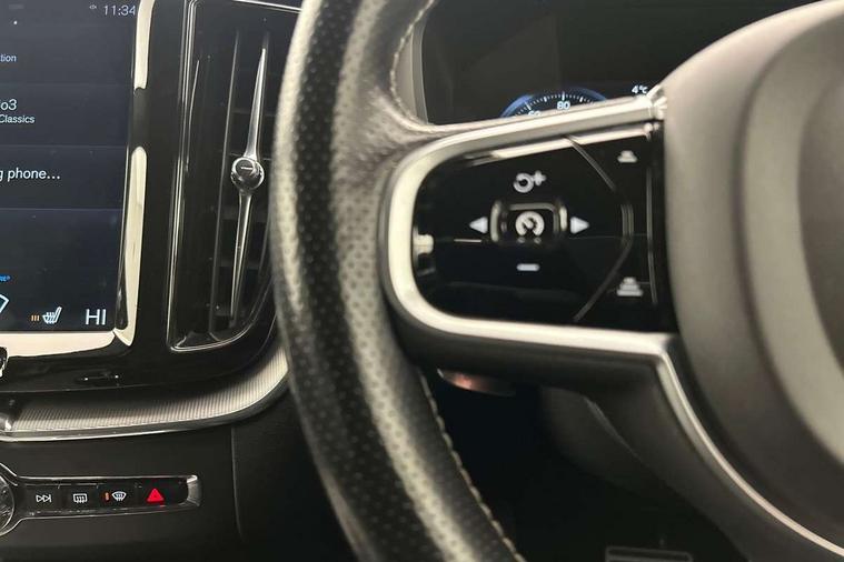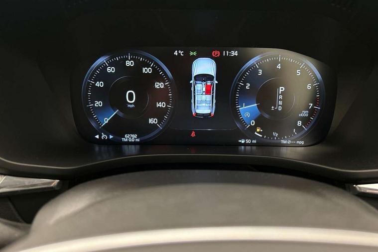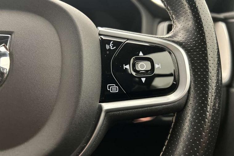 Metal mesh inlays, Tailored instrument panel with contrast stitching, Anti-theft alarm including immobiliser/volume sensor + level sensor, Fuel flap with deadlocking system, Key integrated remote control central locking, Keyless Start, Locking wheel nuts, Private locking, DAB Digital radio, 5 three point seatbelts, ABS/EBD, Child proof door locks, City safety, Drivers knee airbag, DSTC-Dynamic Stability and Traction Control, Dual stage driver/passenger airbags, EBA, Electronic parking brake with auto hold, Fasten seatbelt reminder, First aid kit, HBA (Hydraulic Brake Assist), Hill descent control, Hill start assist, Inflatable curtain, Passenger airbag deactivate switch, Road sign information display, Roll over protection, RSC - Roll stability control, Run off Road Protection, Seatbelt pre-tensioners, SIPS airbags, Tyre pressure monitor, Warning triangle, Auto dimming interior + exterior mirrors, Body colour bumpers, Dark tinted glass for rear windows + rear screen + side luggage area window, Dual integrated exhaust pipes with high gloss black surround, Electric front+rear windows, Electrically adjustable and heated door mirrors, Front skid plate, Headlamp levelling, High gloss black front grille, Home safe and approach lighting, Illuminated side steps, LED front fog lights, LED Headlights + Active high beam incorporating daytime running lights, Matt silver finish door mirrors, R Design tread plates, Rear wiper, Roof antenna, Roof spoiler, Silver matt window frame surround, Silver roof rails, Tinted windscreen, Visible VIN plate, 12V power point in luggage area, 12V socket in front + rear tunnel console, 3 spoke leather steering wheel with chrome trim, 4 aluminium high level anchor points, 60/40 split folding rear seat, A-pillar parking ticket holder, B Pillar ventilation, Black headlining, Bright metal luggage threshold, Centre armrest storage illumination, Extended front seat cushions, Front centre armrest with storage compartment and cupholders, Front footwell illumination, Front/rear reading lights, Gearshift paddles, Glovebox illumination, Head restraints for all seats, Heated front seats, Height adjustable drivers seat with lumbar support, Height/reach adjustable steering column, Illuminated driver/passenger vanity mirrors, Illuminated luggage compartment, Isofix attachments on rear seats, Load cover, Lockable load floor, Passenger seat adjustable for lumbar support, Perforated leather gearknob, Perforated Leather Key Integrated Remote, Perforated leather steering wheel, Pollen filter, Rear armrest / integral cup holders / storage tray, Rear seat concealed storage, Sport pedals, Sports floor mats, Theatre dimming interior lights, Underfloor stowage compartment, WHIPS - Whiplash Protection System, 12.3" Active TFT crystal driver's instrument display, 9" Touch screen, Adjustable steering wheel force, Bluetooth hands free telephone kit, Drive mode selector, Intelligent driver information system (IDIS), Lane keep assist with driver alert control, Oncoming Lane Mitigation, Power tailgate, Road Edge Detection, Service interval indicator, Speed limiter, Speed sensitive steering, Voice control system, Volvo on call,