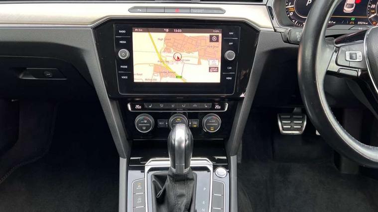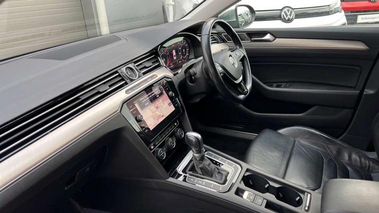 Piano black centre console, Full size alloy spare wheel, Alarm with interior protection, Anti-theft wheel bolts, Electronic engine immobiliser, Remote central locking with 2 remote folding keys, CD/MP3/WMA, USB and SD card reader, aux-in, DAB Digital radio, MDI with USB/iPod connection cables, Volkswagen media control, 3 rear 3 point seatbelts + pretensioners, ABS+EBD+Brake assist, Active bonnet, Driver/Front Passenger airbags, Driver/Front passenger WOKS head restraints, Drivers knee airbag, Electronic parking brake with auto hold, ESP with EDL + ASR, Front and rear curtain airbags, Front and rear seat side impact airbags, Front assist including city emergency braking, Front passenger airbag deactivation, Height adjustable front 3 point seatbelts + pretensioners, Hill start assist, Proactive passenger protection system, Two tone horn, Tyre pressure warning, Warning triangle, Auto dimming driver's door mirror, Auto dimming rear view mirror, Automatic activation of hazard warning lights, Automatic coming/leaving home lighting function, Automatic headlights with dusk sensor, Body colour bumpers, Body colour door handles, Chrome headlight surround, Chrome louvres in grille, Chrome side window surrounds, Dynamic light assist, Electric adjustable/heated/folding door mirrors, Front and rear electric windows, Front fog lights, Headlight range control, Headlight washers, Heated rear window, Heated windscreen washer jets, High beam assist, LED daytime running lights, LED headlights with dynamic curve lighting, LED rear lights, Matt chrome door mirrors, Rain sensor, Reverse activated kerb-view adjustment on passenger's door mirror, Side skirts with chrome inserts, Stainless steel door sill protection, Tinted rear windows, Trailer stability assist, Windscreen wipers/ intermittent wipe + 4 position delay, 12V Accessory socket in centre console, 12v socket in front centre armrest storage compartment, 2 bag hooks in luggage compartment, 3 rear head restraints, 3 spoke multi-function leather steering wheel, 3 Zone electronic climate control with automatic air recirculation, 60/40 split folding rear seat, Aluminium finish interior door handles, Ambient lighting, Cover for storage compartment in centre, Front + rear carpet mats, Front and rear interior lighting with delay and dimming function, Front centre armrest with storage box and rear air vents, Front cupholders x 2, Front footwell lights, Front seat and rear pockets, Gearshift paddles, Heated front seats, Height adjustable head restraints, Height/reach adjust steering wheel, Isofix system on outer rear seats, LED reading lights, Load through provision, Lockable, illuminated, cooled glovebox, Luggage compartment lighting, Mistral headliner, Nappa leather upholstery, Rear armrest with 2 cupholders, Removable luggage cover, Stainless steel foot rest, Stainless steel pedals, Storage box in luggage compartment, Storage compartment in driver's door, Storage compartment in passenger's door, Storage compartment in rear doors, Sunvisors with illuminated vanity mirrors, USB charging point, App-Connect, 'Lights On' Reminder warning buzzer, Active information display, Adaptive Cruise Control with pedestrian detection and speed limiter, Analogue clock, Door/tailgate open warning lights, Driver alert system, Driver profile selection, Lane assist, Press and drive key, Progressive power assisted steering, Remote tailgate release, Rev counter with fuel gauge, Service interval indicator, Touch screen display, Traffic message channel (TMC), Warning buzzer and light for front seatbelts unfastened,