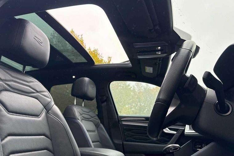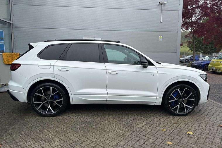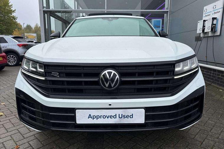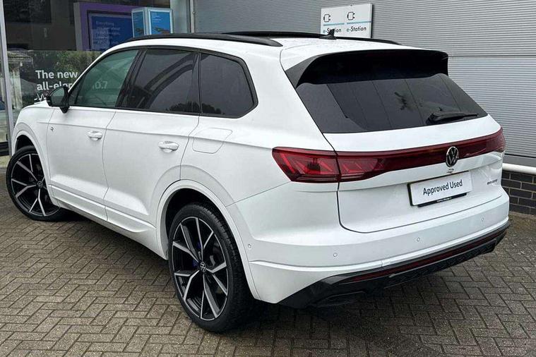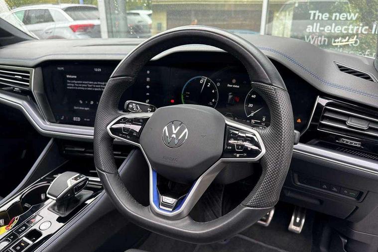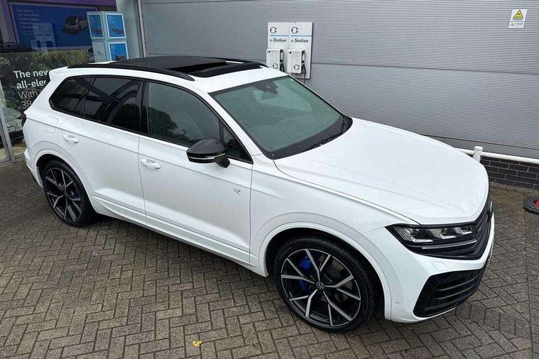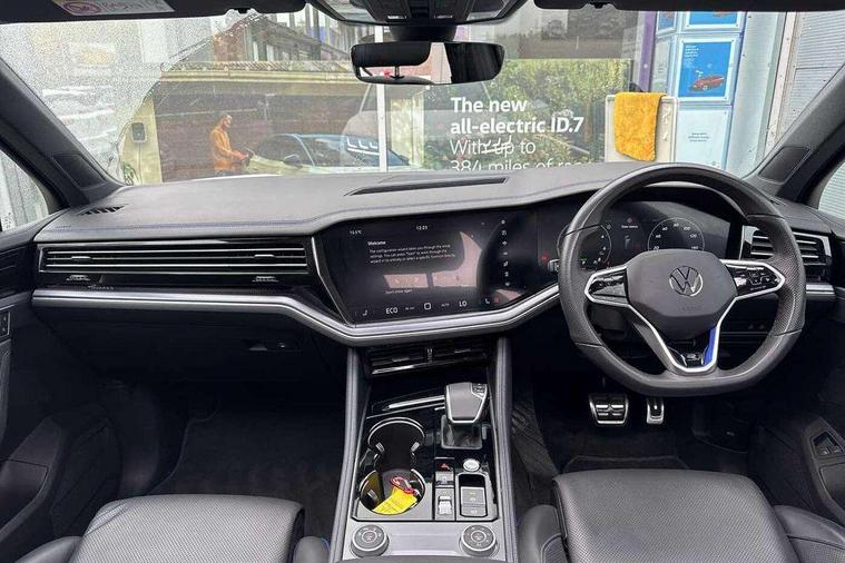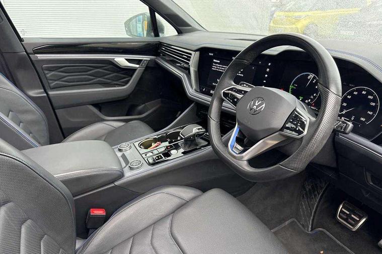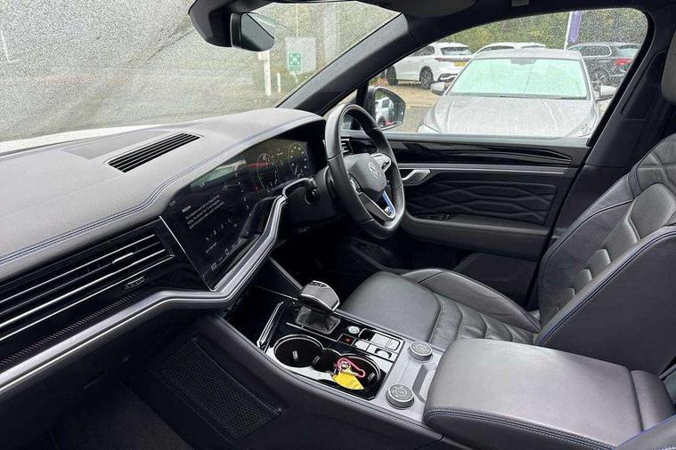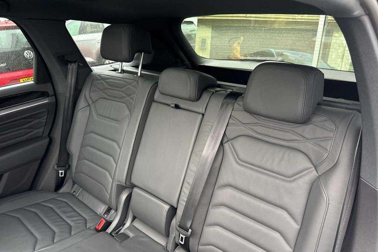 15" Screen Top infotainment system Premium (MIB3), Adaptive cruise control, Driver profile selection, Dynamic road sign display, E-Sim card for online connectivity, eCall emergency system, Innovision cockpit, Intelligent park assist, Mobile phone interface with inductive charging, Multi-colour Active Info display, Park Assist - Sensor controlled steering aid to assist parallel or bay parking, PAS, Warning signal and warning light for front and rear seatbelts not fastened, Wireless app connect, Adaptive chassis control, Air suspension, Charging cable - Mode 2 / 10-amp / 2.3 kW, Charging cable - Mode 3 / 32-amp / 7.2 kW, Standard electronic engine sound, DAB Digital radio, Diversity antenna for AM/ FM reception, We Connect and We Connect Plus functionality, Automatic coming/leaving home lighting function, Automatic headlights, Black door mirrors, Black style comfort bumpers, Dynamic headlight range control with dynamic cornering light, Electric front tilt/slide panoramic sunroof and fixed rear sunroof, Electrically power adjustable, heated, folding, auto dimming, front passenger exterior door mirror lowering function, External USB type C socket and charging sockets, Gloss black roof rails, HD LED Matrix beam plus digital headlight projection with variable light distribution, Headlight washers, Heat insulating glass in side and rear windows, Heated windscreen washer jets, Highway light, LED 3rd brake light, LED daytime running lights, LED rear combination lamp with variable lighting functions and special styling, Poor weather light, Rear exhaust tailpipe, Rear fog light with back up light on both sides, Rear light bar and illuminated logo, Rear side wing doors, Rear wiper, Stainless steel door sill protection, 12V socket in centre console, 3 rear headrests, 3 seat bench in 2nd row, 30 colours interior ambient lighting, 4 zone climate control, Additional Interior Lighting, Airbag label on sun visor and B-pillar, Black decorative trims, Brushed stainless steel pedals, Door and side trim panel with Leather quilting, Double sun visors with illuminated vanity mirrors, Front + rear carpet mats, Front centre armrest, Illuminated scuff plates in door apertures, Leather wrapped multifunction sports steering wheel, heated, with touch control and shift paddles, Mechanical rear seat release, Power adjustable lumbar support in front, Power seats in front, right side with memory features and seat cushion depth adjustment, Puglia leather upholstery with "R" ergoComfort, Rear seat backrest and split folding with center armrest, Single front passenger seat, Tool kit, Extra acoustics pack - Touareg, Memory pack plus - Touareg, 3 point seatbelts, outer rear with ECE lable, ABS, Advanced driver attention and drowsiness monitor, Child locks on rear doors, Curtain airbags, Disc brakes in front blue with R-Logo, Disc brakes in rear blue, Driver and front passenger safety-optimised head restraints, Driver/Front Passenger airbags, Extended pedestrian protection measures, Front assist, Front seat side impact airbags, Generative braking with start and stop system, Height adjustable 3 point front seatbelts with pre tensioners, Passenger airbag deactivate switch, Three 3 point rear seatbelts, Two tone horn, Tyre pressure loss indicator, Warning triangle and first aid kit, Alarm system with interior protection, Easy open and close sensor controlled luggage compartment opening and closing with remote unlocking, Keyless Access Keyless locking and starting system with SAFELOCK, Aluminium decorative inserts, Gloss black decorative inserts in centre console, 285/35 R22 106Y XL Low rolling resistance tyres, Tyre mobility kit including compressor and sealing foam,