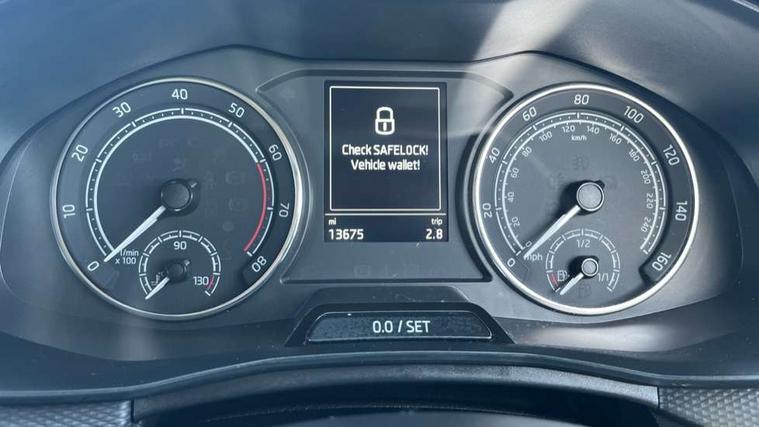 Temporary space saver wheel, Alarm, Anti-theft wheel bolts, Remote central locking with 2 remote folding keys, SAFE function for remote central locking, 2 USB - C ports, 8 loudspeakers, Bolero radio with 8" touchscreen display, DAB Digital radio, 3x3 point rear seatbelts, Curtain airbags, Emergency call and proactive services, Front head and side airbags, Hill hold control, Manual rear child locks, One tone horn, Passenger airbag switch off function, Seat belt reminder for all seats, 3rd brake light, Automatic headlamp activation with Coming home and Leaving home feature, Body colour door mirrors and handles, Chrome grille surround, Dimming rear view mirror with black frame, Electrically adjustable and heated door mirrors, Front and rear electric windows, LED rear lights, Rear side wing doors, Rear wiper, Tinted windows, 12V Accessory socket in centre console, 3 seat bench in 2nd row, Chrome inner door handles, Cloth upholstery, Front head restraints, Glasses storage in roof liner, Height adjustable drivers seat, Height adjustable passenger seat, Instrument cluster with chrome painted decor ring, ISOFIX for rear passenger seat, Leather gearknob and handbrake lever, Manual lumbar support for front seats, Reading lights for driver and front passenger, Single front passenger seat, Sun visor with make up mirror for front passenger, Third rear headrest, Umbrella, Bluetooth system, eCall emergency system, PAS, Rain and light assist with auto dimming rear view mirror, Speed limiter, Tailgate,