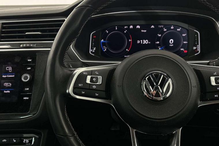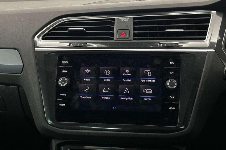 Chrome door trim inserts, Dark grey decorative inserts in dash and door panel, Piano black decorative inserts in centre console, Ambient lighting pack - Tiguan, Alarm with interior protection, Electronic engine immobiliser, Remote central locking with 2 remote folding keys, 2 x USB connection + USB charging socket, 4 X 20 watt output, DAB Digital radio, SD card slot, Simultaneous pairing of 2 compatible mobile devices, SMS functionality - read, compose and send SMS messages using touch-screen display, Title and cover art display, 3 rear 3 point seatbelts, ABS+EBD+Brake assist, Active bonnet, Active pedestrian safety system, Curtain airbags, Driver/Front Passenger airbags, Driver/Passenger whiplash optimised head restraints, Drivers knee airbag, DTC - Drag torque control, Electronic parking brake with auto hold, ESC with EDL, ASR, EDTC and trailer stabilisation function, First aid kit, Front seat side impact airbags, Front side airbags, Front ventilated disc brakes and rear disc brakes, Head airbag system, Height adjustable front 3 point seatbelts + pretensioners, Hill hold control, Passenger airbag deactivate switch, Passenger knee airbag, Pre crash preventive occupant protection, Rear side airbags, Rigid safety cell with front and rear crumple zones, Two tone horn, Warning sound and light for front seat belts if unfastened, Warning triangle, 3D effect cherry red LED rear tail lights, Auto dimming interior mirror, Automatic activation of hazard warning lights, Black grained lower door protectors with chrome inserts, Body colour door handles, Body colour door mirrors, Body coloured bumpers, Chrome side window surrounds, Chrome trimmed radiator grille, Coming/leaving home lighting function, Dusk sensor + auto driving lights, Electric panoramic sunroof with sunblind, Electrically heated and foldable door mirrors, door mirror puddle lights and reverse activated kerb view adjustment on passenger's door mirror, Front and rear electric windows, Heated rear window, High level 3rd brake light, LED headlights with dynamic light assist daytime running lights and cornering front fog lights, LED rear number plate lights, Piano black front air intake and rear diffuser, Rain sensor windscreen wipers, Rear tinted glass from B-pillar backwards approx 65% tinted, Rear windscreen washer and wiper with interval delay, Side door sills with chrome inserts, Silver front underbody protection and rear diffuser, Silver roof rails, Windscreen wipers/ intermittent wipe + 4 position delay, 12V socket in centre console storage area, 2 cup holders in front, 3 rear headrests, 3 zone climate control, 4 load lashing points, 40:20:40 split folding rear seats, Bag hook in luggage compartment, Driver and front passenger under seat drawer, Foldable front passenger seat backrest, Front + rear carpet mats, Front centre armrest with 12v socket, Front centre armrest with storage + rear 2 air vents, Front seat back storage pockets, Front seatback folding tables, Height/reach adjust steering wheel, Illuminated driver/passenger vanity mirrors, Illuminated scuff plates, Instrument lighting white adjustable panel illumination, Interior light with delay, Isofix Preparation 2 Rear child seats, Leather gear knob, Load through provision with 2 cupholders when folded, Lockable cooled glovebox, Luggage compartment lighting, Map pockets on front seats, Passenger seat height adjuster, Removable luggage cover, Sliding/reclining rear seats, Storage compartment in driver's door, Storage compartment in passenger's door, Storage compartment in rear doors, Storage compartments in luggage area left and right, Storage tray on dashboard, Sunglasses storage, Variable boot floor, height adjustable and removable, App-Connect, 2D/3D map view, Active information display, Adaptive cruise control, Bluetooth phone integration system, Car information display, Distance control assist, Driver profile selection, Front assist, radar sensor controlled distance monitor, city emergency braking + predictive pedestrian protection, Instrument cluster, Lane assist, Lights on warning, Multifunction computer with visual gear change recommendation for fuel consumption, Outside temperature display, Service interval indicator, Speed limiter, Start/Stop function, Warning sound and light for doors and tailgate open, Battery regeneration during braking, XDS electronic differential lock for improved traction and handling,