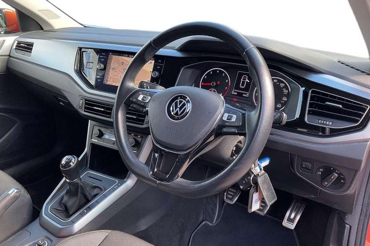 Air vents in High gloss black, Limestone grey decorative inserts, Discover media navigation system with 8" display including streaming and internet pack - Polo, Light and sight pack - Polo, Winter pack - Polo, 15" Galway alloy wheels with anti theft wheel bolts, Alarm with interior protection and deactivation via infotainment system, Electronic engine immobiliser, Remote central locking with 2 remote folding keys, Diversity antenna for FM reception, Front and rear 6 speakers, 3 point height adj front seatbelts + pretensioners, 3x3 point rear seatbelts, ABS, Automatic post collision braking, Driver/front passenger airbag, Drivers and front passengers safety optimised head restraints, ESP with EDL + ASR, Front and rear passenger curtain airbags, Front disc brakes and rear drum brakes, Front passenger airbag deactivation, Front seat side impact airbags, HBA (Hydraulic Brake Assist), Hill hold control, Single tone horn, Tyre pressure monitoring system, Active aluminium scuff plates, Active badge on B Pillar, Black grille with chrome surround, Black radiator grille with chrome louvres, Body colour bumpers, Body colour door handles, Body colour door mirrors with integrated indicators, Body colour rear spoiler, Body coloured side sills, Electric front windows, Electrically adjustable and heated door mirrors with reverse activated kerb view adjustment on passenger's side, Front windscreen washers and wipers with 4 speed intermittent delay, Heat insulating rear tinted glass from B-pillar backwards approx 65% tinted, Heated rear window with auto timer, High level 3rd brake light, LED daytime running lights, LED rear number plate lights, Rear electric windows, Rear windscreen washer and wiper with interval delay, reverse activated, 2 bag hooks in luggage compartment, 2 front and 2 rear reading lights, 2 front cupholders and 12 V socket with cover, 3 rear head restraints, 4 grab handles, 60/40 split folding rear seat, Ambient lighting, Centre console storage with open storage compartment, Chrome interior door handles, Climate control - 2 zone electronic air conditioning with automatic air recirculation and allergy filter, Driver and front passenger seat height adjustment, Driver and front passenger sunvisors with illuminated vanity mirrors, Dust/pollen filter, Folding rear seat backrest, Front + rear carpet mats, Front head restraints, Front seat backrest storage pockets, Gear lever gaiter in black trim surround, Glovebox, Handbrake grip button in chrome effect, Height/reach adjustable steering column, Instrument lighting, adjustable panel illumination, Interior light with delay, Isofix Preparation 2 Rear child seats, Leather gear knob and handbrake grip, Leather multifunction steering wheel, Luggage compartment cover, removable, Luggage compartment lighting, Luggage compartment with variable load floor, Lumbar adjustment for front seats, Special Active Waveform cloth upholstery, Stainless steel foot pedals, Storage compartment in front doors, Storage compartment in rear doors, Storage compartment under front seats, Sunglasses holder, Digital clock, Driver alert system, Emergency call service, Multifunction computer plus, Power assisted speed sensitive steering, Speedo and rev counter, electronic odometer, trip, service interval display and fuel gauge, Start/stop system, Volkswagen connect, Warning buzzer and light for front seatbelts unfastened, Wireless app connect, Battery regeneration during braking, Galvanished body,