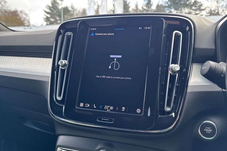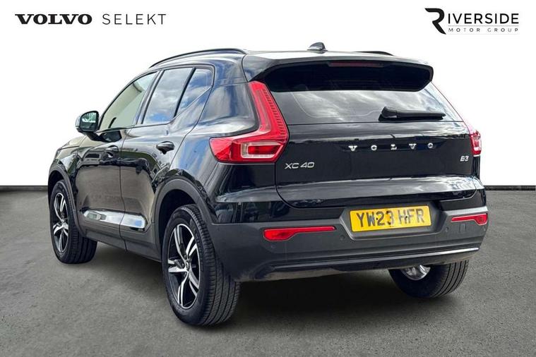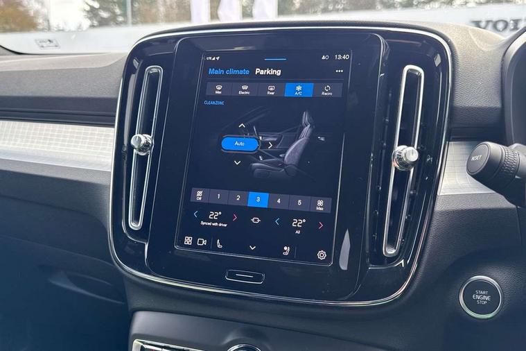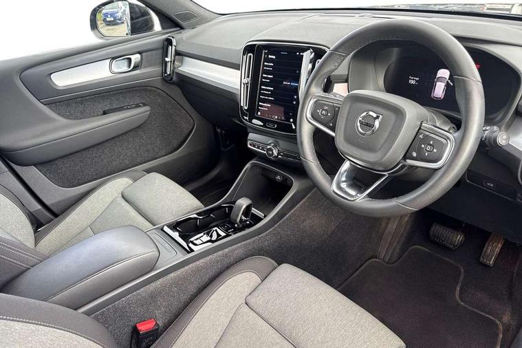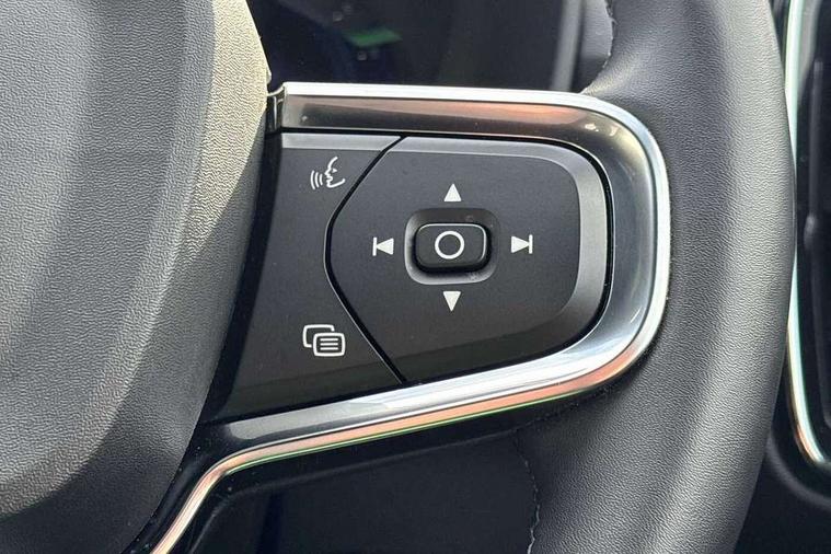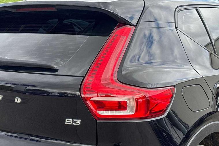 Climate pack without heated front seats - XC40, Anti-theft alarm including immobiliser/volume sensor + level sensor, Key integrated remote control central locking + fuel flap with deadlocking system and auto open/close power windows, Keyless drive includes keyless entry and keyless start, Locking wheel nuts, DAB Digital radio, High performance sound, 8 speakers/250W, front USB and 2 rear type C USB, Steering wheel mounted remote controls, 3x3 point rear seatbelts, City safety with steering support with Pedestrian + cyclist + front collision warning with full auto brake and rear auto brake, Drivers knee airbag, Dual stage driver/passenger airbags, Electronic parking brake with auto hold, First aid kit, Front and outer rear seatbelt reminder and pretensioners, Front seats SIPS airbags, Hill descent control, Hill start assist, Inflatable curtain, Passenger airbag cut-off device, Power child locks on rear doors, Road sign information display, Run off Road Mitigation, Run off Road Protection, SIPS (Side Impact Protection System), Slippery road and hazard light alert, Stability and Traction Control with Spin control, Engine Drag Control and Corner Traction Control, Tyre pressure monitoring system, Vehicle deceleration control with Anti-lock Brake System, Electronic Brake Distribution and Emergency Brake Assist, Warning triangle, WHIPS whiplash protection system - front, Adaptive brake lights with high level LED brake lights, Auto dimming feature for exterior door mirrors, Auto dimming interior mirror, Automatic headlamp levelling, Automatic LED Headlights + Active high beam incorporating daytime running lights, Front aluminium tread plates, Front and rear electric windows, High gloss black front and rear skid plate, High gloss black mesh front grille with high gloss black surround, High gloss black window trim, Home safe and approach lighting, Integrated roof rails in high gloss black, LED front fog lights, Puddle lights, Rain sensor with automatic windscreen wiper activation, Rear side wing doors, Rear wiper, Roof antenna, Roof spoiler, Visible VIN plate, 12V socket in front tunnel console and cargo compartment, 2 zone electronic climate control with clear zone air quality system and pollen filter, 3 seat bench in 2nd row, 3 Spoke tailored steering wheel with chrome trim, 60/40 versatile split folding rear seat, A-pillar parking ticket holder, Centre console cupholders and storage, Flexible load floor and grocery bag holder, Floor mats, Front footwell illumination, Front headrests, Front reading light and theatre lighting, Front seat cushion extensions, Front tunnel pocket, Glovebox bag hook, Heated front seats, Height adjustable passenger seat, Height/reach adjustable steering column, High gloss centre tunnel deco, Illuminated glovebox, Illuminated luggage compartment, Illuminated vanity mirrors, Integrated waste bin, Isofix attachments on rear seats, Load protection net, Multi directional lumbar support, Power driver seat with memory + exterior mirrors memory, Rear armrest / integral cup holders / storage tray, Rear headrests, Single front passenger seat, Underfloor cargo storage, 12.3" Progressive Driver Display, 360 degree surround view parking camera with side proximity sensors, 9" centre console portrait touch screen, Adjustable steering wheel force, Bluetooth hands free telephone kit, Cruise control, E-call, Front park assist, Google automatic services - Nav with google maps, apple carplay/android auto, voice recognition with google assistant, Hands free power tailgate, Lane keep assist with driver alert control, Oncoming Lane Mitigation, Rear park assist, Speed limiter, Speed sensitive steering, Wireless/Inductive Mobile Phone Charging, Dynamic chassis,