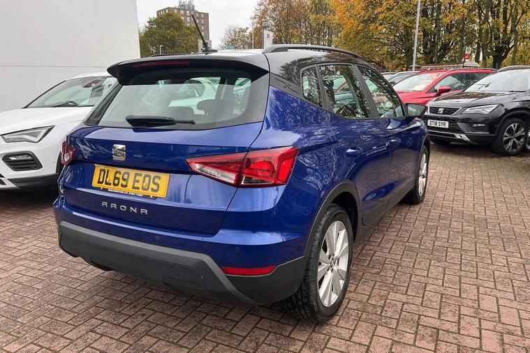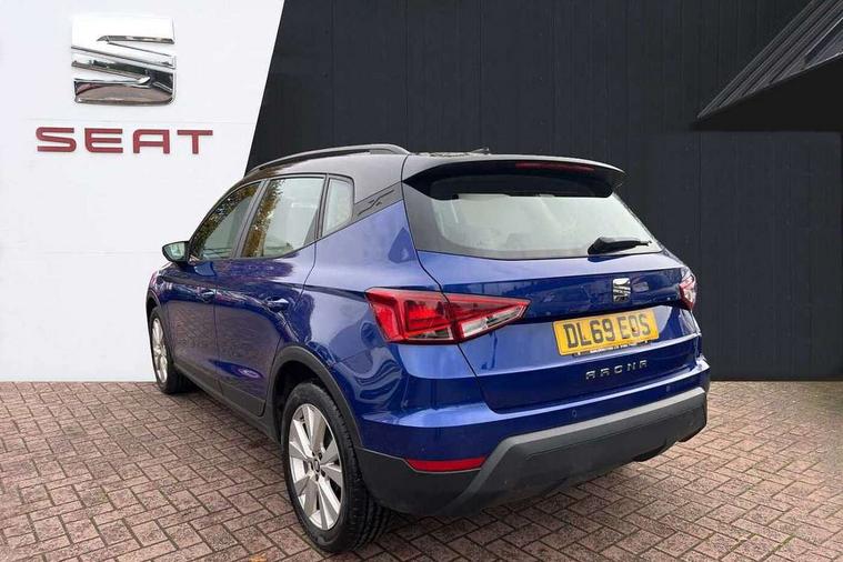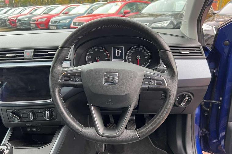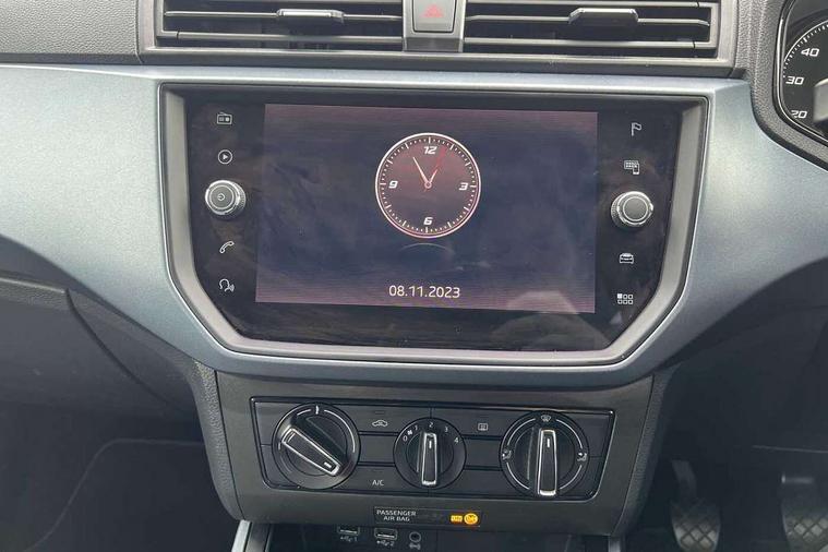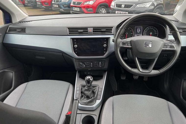 Interior chrome line trim, Plastic grey dashboard, Connectivity pack plus - Arona, Interior chrome pack - Arona, 17" Dynamic alloy wheels, 2 folding remote keys with window open/close function, Electronic engine immobiliser, Locking wheel bolts, Remote central locking + deadlocks, 6 speakers, Bluetooth interface for hands free and audio streaming, DAB digital radio and AM/FM radio, Steering wheel mounted audio controls, 3 point seatbelts on all rear seats, ABS, Active front headrests, Child locks on rear doors, Driver and front passenger airbags with front passenger airbag de activation, front side and curtain airbags, Electronic stability control, Emergency Brake Assist (EBA) and front assist, Front and rear seatbelt reminder, Hill hold control, Multi-Collision braking, Tiredness recognition system, Traction control, Tyre pressure monitoring system, Anti theft roof antenna, Automatic activation of hazard warning lights, Automatic headlights, Black roof rails, Black window trims, Body coloured bumpers, Body coloured door handle inserts, Body coloured door mirrors, Chrome front grille frame, Dimming rear view mirror, Electric adjustable door mirrors, Electric front/rear windows with one touch/auto up/down, Electric headlight adjustment, Front fog lights with cornering function and rear fog light, Hidden exhaust pipe, LED daytime running lights, LED rear tail lights and licence plate lights, Rear window wash/wipe, Visible VIN plate, Windshield wiper with intermittent control and potentiometer, 2 cupholders, 60/40 split folding rear seat, Air conditioning, Cloth upholstery, Double boot floor, Driver sunvisor with covered mirror + card holder, Dust/pollen filter, Front courtesy light with front reading lights, Gear shift indicator, Grey interior roof, Height adjustable front seats, Height/reach adjustable steering column, Illuminated boot, Instrument lighting with brightness control, Interior footwell lighting, ISOFIX points in outer rear seats with top tether anchorage points, Leather steering wheel/gear knob/handbrake, Multi-colour ambient interior lighting, Passenger sunvisor with vanity mirror, Two front and three rear height adjustable headrests, 'Lights On' Reminder warning buzzer, Cruise control, Digital clock, Electric speed sensitive power steering, Full Link Smartphone Integration with Mirror Link, Apple Car Play, Google Android Auto with USB cable for Apple and Android compatibility, Low fuel warning light, Outside temperature display, Rear parking sensor, RPM counter, Trip computer, Comfort suspension,