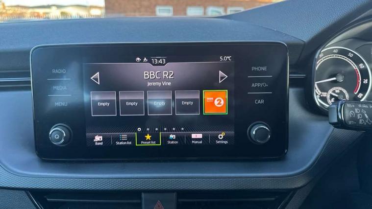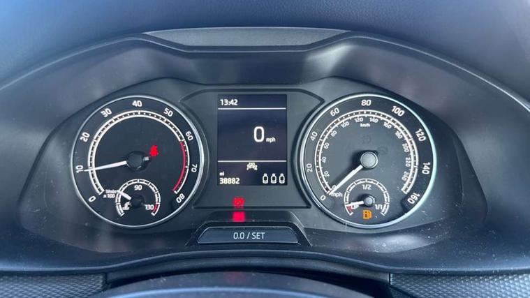 Temporary space saver wheel, Alarm, Anti-theft wheel bolts, Remote central locking with 2 remote folding keys, SAFE function for remote central locking, 2 USB - C ports, 8 loudspeakers, Bolero radio with 8" touchscreen display, DAB Digital radio, 3x3 point rear seatbelts, Curtain airbags, Emergency call and proactive services, Front head and side airbags, Hill hold control, Manual rear child locks, One tone horn, Passenger airbag switch off function, Seat belt reminder for all seats, 3rd brake light, Automatic headlamp activation with Coming home and Leaving home feature, Body colour door mirrors and handles, Chrome grille surround, Dimming rear view mirror with black frame, Electrically adjustable and heated door mirrors, Front and rear electric windows, LED rear lights, Rear side wing doors, Rear wiper, Tinted windows, 12V Accessory socket in centre console, 3 seat bench in 2nd row, Chrome inner door handles, Cloth upholstery, Front head restraints, Glasses storage in roof liner, Height adjustable drivers seat, Height adjustable passenger seat, Instrument cluster with chrome painted decor ring, ISOFIX for rear passenger seat, Leather gearknob and handbrake lever, Manual lumbar support for front seats, Reading lights for driver and front passenger, Single front passenger seat, Sun visor with make up mirror for front passenger, Third rear headrest, Umbrella, Bluetooth system, eCall emergency system, PAS, Rain and light assist with auto dimming rear view mirror, Speed limiter, Tailgate,