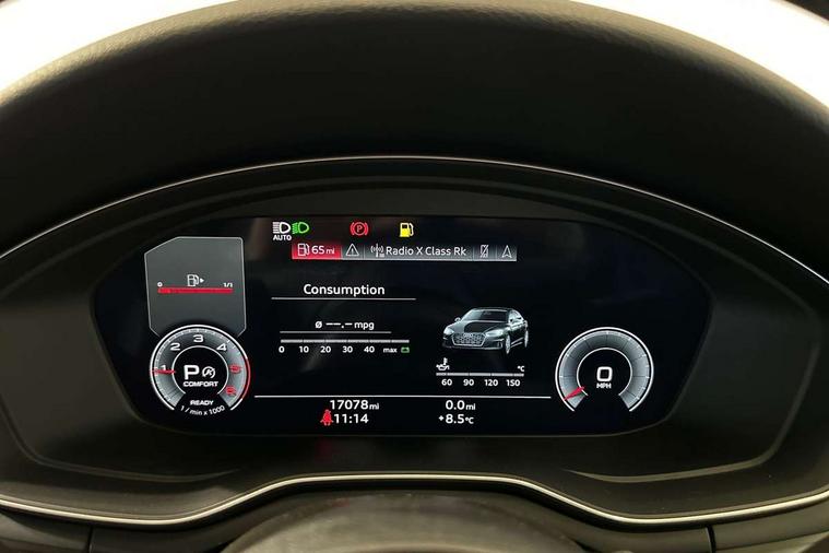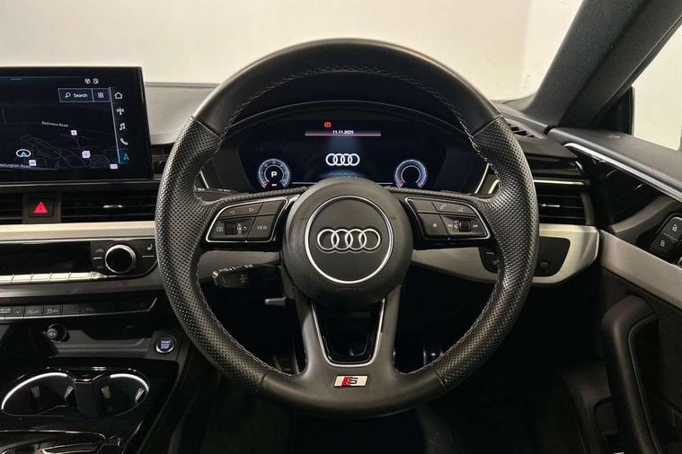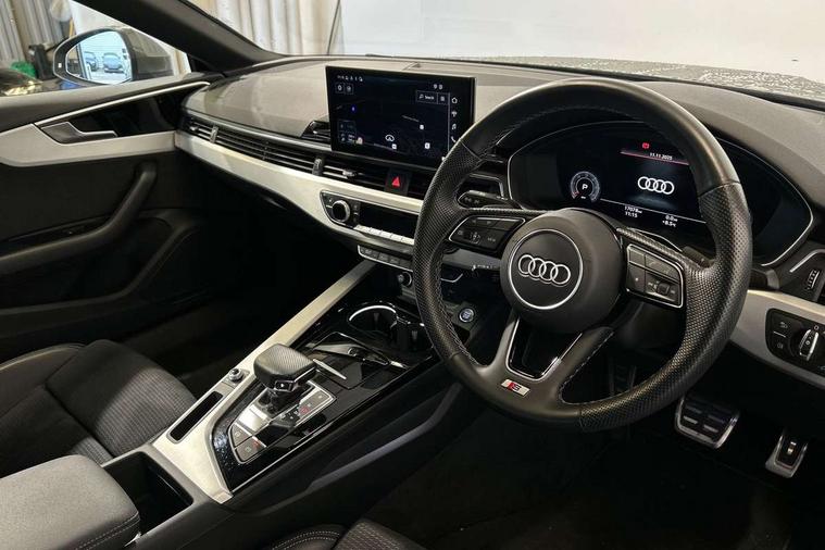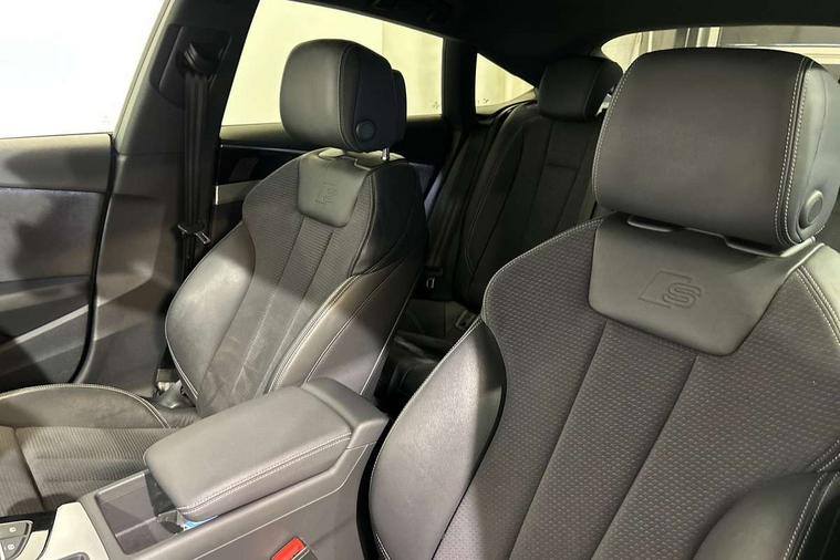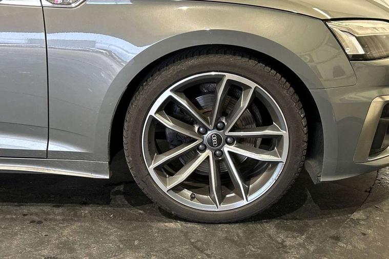 Matt brushed aluminium inlays, LED interior light pack - A5/RS5, Tyre repair kit, Anti theft alarm system, Anti theft wheel bolts, Immobiliser, Keyless Go, Remote central locking, 8 passive loudspeakers, CD player, DAB digital radio reception, Two additional USB ports for rear passenger in rear centre console, Two SDXC card slots, 3x3 point rear seatbelts, 6 airbags - Driver, front passenger, curtain and side airbags, Electromechanical parking brake, Electronic Stabilisation Control (ESC) including ABS, ASR and EDL, Front passenger airbag deactivation, Height adjustable front seatbelts, Hill hold assist, Manual child lock in rear doors, Multi collision brake assist, Pop-up bonnet for pedestrian protection, Pre sense city, Seatbelt monitoring, Tyre pressure warning, Variable restraint system, Warning triangle and first aid kit, Audi matrix LED headlights with LED rear lights + dynamic front and rear indicators, Auto dimming door mirrors, Auto dimming rear view mirror, Body colour bumpers, Body colour door handles, Body colour front spoiler lip, Body colour side sill trim, Body coloured door mirrors, Electric adjustable heated door mirrors, Electric folding door mirrors, Electric front windows, Front fog lights, Honeycomb structure radiator grille in grained matt black, Kerb-view function for passenger side, LED daytime running lights, LED side indicator lights integrated into door mirrors, LED third brake light, Matt aluminium silver tailpipe trim, Privacy glass, Rain and light sensors, Rear side wing doors, S line badges on front wings, S line front and rear bumpers with side skirts, S Line rear diffuser in matt titanium black with trim strip in matt aluminium silver, Side air inlets in grained matt black with matt aluminium silver inlay, Variable front intermittent wipers, Windscreen with acoustic glazing, 3 seat bench in 2nd row, 4 way electric lumbar support for driver and front passenger, 40/20/40 split folding 3 seater rear bench seat, Adjustable steering column, Black cloth headlining, Black perforated leather gearknob, Contrast stitching on seats, steering wheel and gear lever gaiter, Deluxe 3 zone electronic climate control, Front centre armrest, Front head restraints, Front/rear floor mats, Heated front seats, Illuminated door sill trim with S logo, ISOFIX child seat mounting and top tether, Luggage compartment mat, Manual seat adjustment, Rear centre armrest, Rear headrests, Single front passenger seat, Stainless steel pedals, Sunvisors with vanity mirrors, Tool kit, Audi connect safety and service (e-call), Audi connect with Amazon Alexa Integration, Audi drive select (Auto, Comfort, Dynamic, Efficiency and Individual), Audi parking system plus with front and rear sensors, Audi smartphone interface, Audi virtual cockpit - 12.3" full colour digital instrument cluster, vehicle/engine speed, Radio/media information+Driver assistance systems, Automatic start-stop system with coasting functionality and efficiency programme, Bluetooth interface, Electro-mechanical power steering, Email, calendar and text messages displayed via MMI, MMI nav+ with MMI touch - 10.1" high resolution MMI display, touch sensitive, 3D map, route/country info, dynamic route guide, personal route assist, Power operated tailgate, Rear view camera, Service interval indicator, Voice control system, Diesel particulate filter, Sports suspension lowered by 23mm,