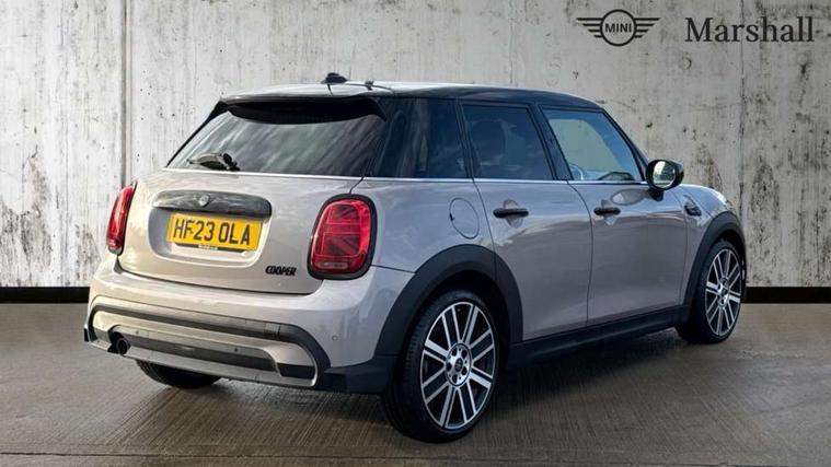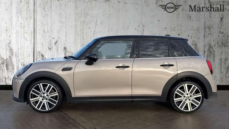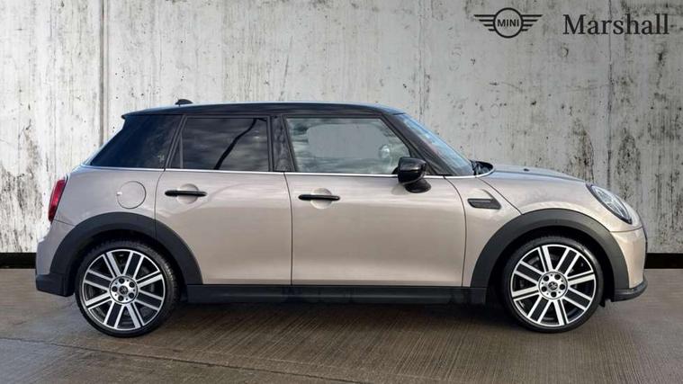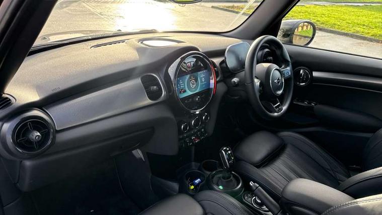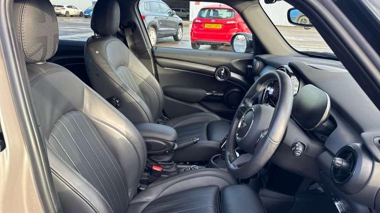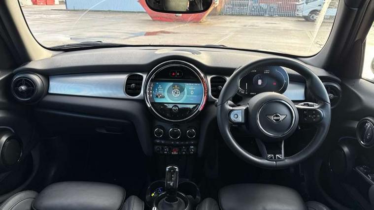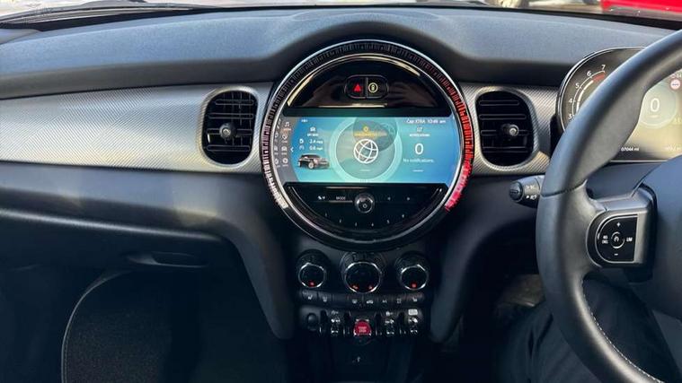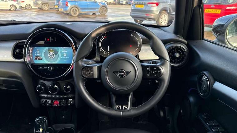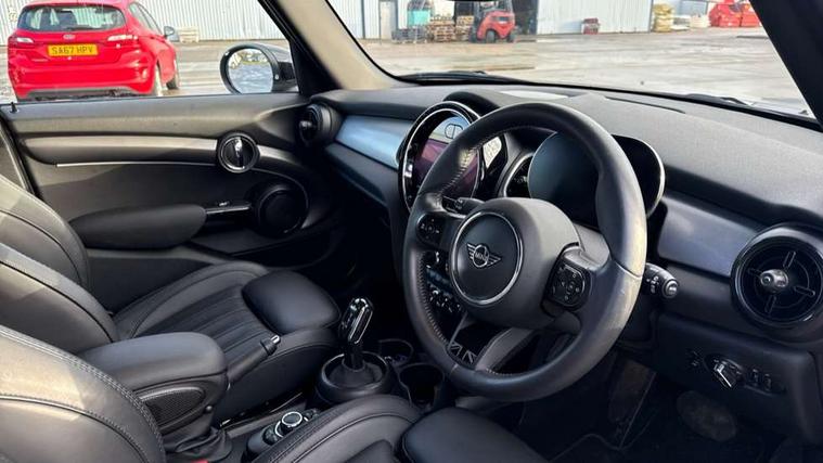 Alarm system with tilt sensor, monitoring doors, bonnet interior and tailgate, Electronic vehicle immobiliser, Start/stop toggle with keyless go, 8.8" touchscreen with LED ring, FM tuner and DAB digital radio, 3 point seatbelts on all five seats, 6 Airbags - front, side, head and seat belt tensioners, Anti-lock braking system (ABS), Child locks on rear doors, DSC - Dynamic Stability Control, Front and rear disc brakes, Hill start assist, Single tone fanfare horn, Tyre pressure monitoring system, 3rd brake light, Automatic headlight activation switch, Body colour fuel filler cap, Chrome line exterior - radiator grille bars, tailgate handle, lower front grille grating and rear central fog-light, Dynamic brake lights, Electric front+rear windows, Heated rear window, Heated windscreen washer jets, Metal door sill strips with MINI imprint, Model logo Cooper on right of tailgate, Rain sensor window wipers, Rear fog lights, Rear LED lights with union jack design, Rear side wing doors, Rear window wiper, Side scuttle panel with integrated indicator, Sun/heat protection glass, White indicator lenses, 12V Accessory socket in centre console, 3 seat bench in 2nd row, 4 lashing eyes in luggage compartment, 60/40 split folding rear seat, Anthracite headliner including grab handles and clothes hooks, Carbon black colour line - Knee roll and door armrest, Chrome interior highlights, Chrome line interior - air vents, gear lever base, door handles and speakers in doors, Cupholders, Front and rear head restraints, Front and rear isofix with front passenger airbag deactivation, Front and rear velour floor mats, Glove compartment, Height and length steering column adjustment, Interior lighting with 12 different colours across the dashboard, underneath door bezel with illuminated laser-engraved design on central display, Leatherette gearshift lever and handbrake gaiters, LED reading lights, vanity mirror lights, front foot well light and spotlight on front seats, Mechanical seat adjustment - forward/back & backrest for front seats and driver seat height adjust, MINI yours badge on exterior pillar, Multifunction steering wheel, Single front passenger seat, Storage compartments in doors, Sunvisors with vanity mirrors, Tool kit, Walknappa leather steering wheel with grey seam and MINI Yours badge on Piano Black lower steering wheel spoke, Apple CarPlay, Automatic start/stop function with brake energy recuperation, Compatible mobile phone bluetooth with audio streaming, Electro-mechanical speed dependant steering assistance, Flexible car sharing preparation, MINI Driving Modes - centre toggle switch to control driving setting (sport, mid and green), Mini E-call, MINI TeleServices, On board computer, Rear park distance control, Service interval indicator, Double Vanos system, Fully variable valve control, Gear change indicator display, High precision injection, Performance Control, Steptronic transmission with double clutch,