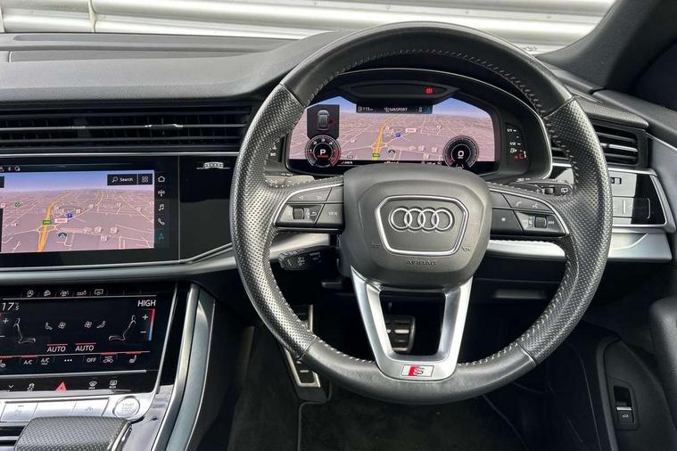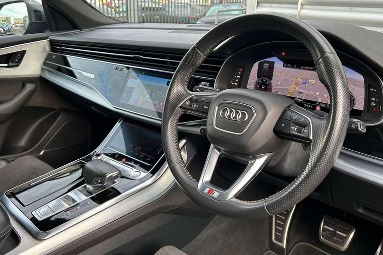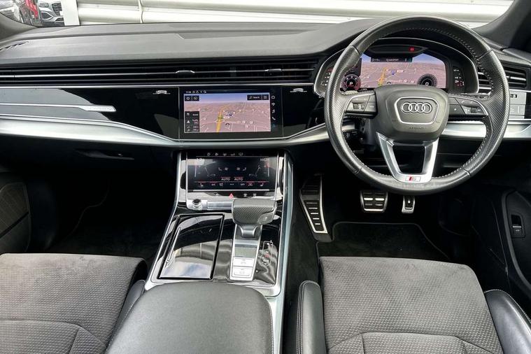 Tyre repair kit, Anti theft alarm, Immobiliser, Keyless Go access/ignition system, Locking wheel bolts, Remote central locking, 2 USB ports, Audi music interface, Aux-in socket, DAB Digital radio, 3 point seatbelts on all seats, ABS, Curtain airbags, Driver and passenger airbags, EDL + ASR, Electromechanical parking brake, Electronic stability control, ESP, Front passenger airbag deactivation, Front side airbags, Hill descent control, Hill hold assist, Pre sense front, Predictive pedestrian protection, Seatbelt warning, Traction control, Tyre pressure monitoring system, Warning triangle and first aid kit, Acoustic windscreen, Auto dimming rear view mirror, Body colour door mirrors, Body coloured bumpers, Coming home function, Electric front+rear windows, Electric/heated/folding door mirrors with memory, HD Matrix LED headlights with dynamic front and rear indicators, Headlight washers, Heat insulating glass, LED daytime running lights, Loading sill protector in stainless steel, Privacy glass, Rain and light sensors, Rear wiper, S Line body styling, 4 way electrically adjustable lumbar support for drivers seat, 4 way electrically adjustable lumbar support for front passenger seat, 40:20:40 split folding rear bench seat, Black cloth headlining, Door sill trims with S line logo, Electrically adjustable front seats, Front centre armrest with storage compartment and angle adjustment, Front head restraints, Front/rear floor mats, Gearshift paddles, ISOFIX on front passenger and rear outer seats, Rear centre armrest with 2 cupholders, Rear headrests, Stainless steel pedals, Sunvisors with illuminated vanity mirrors, Tool kit, Top tether anchor plate for isofix child seat, 10.1" and 8.6" Dual colour touchscreens, Audi connect, Audi drive select, Audi lane departure warning, Audi phone box with wireless charging, Audi smartphone interface, Automatic start/stop system, Electro-mechanical PAS, Low washer fluid indicator, MMI - Multi Media Interface control system, MMI navigation plus with MMI touch, On board computer, Operating buttons in black, glass look with haptic feedback, Rear view camera, Remote electric boot opening/closing, Service interval indicator, Virtual cockpit, Voice control system, Adaptive air suspension, Diesel particulate filter, Quattro sports differential,