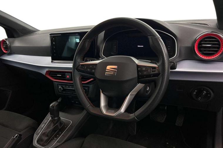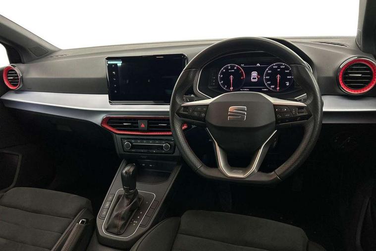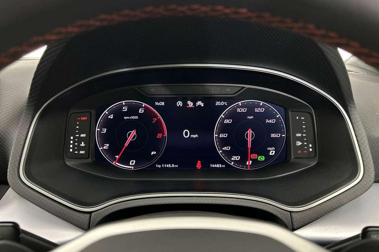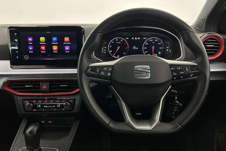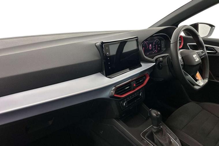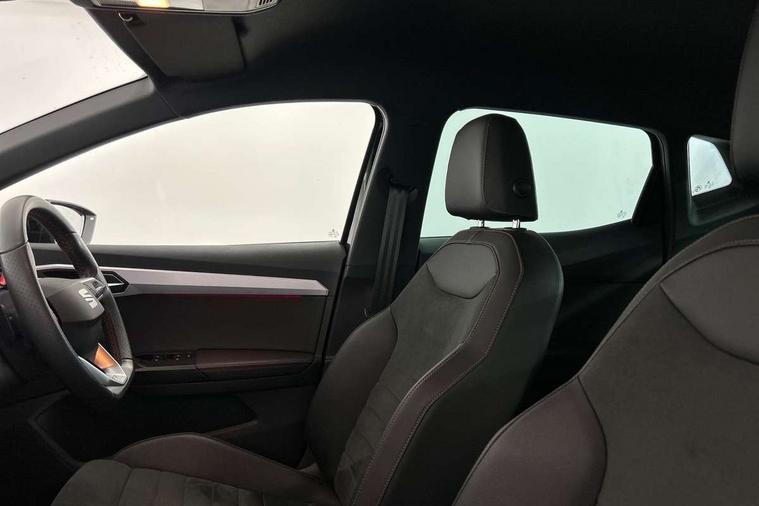 18" Performance machined alloy wheels in black and grey, Electronic engine immobiliser, Locking wheel bolts, Perimeter alarm and interior monitoring with backup horn and tow away protection, Remote central locking + deadlocks, Auxiliary input socket, Radio/MP3 player, SD card slot, Steering wheel mounted controls, 3 point seatbelts on all 3 rear seats, ABS, Active front headrests, Child locks on rear doors, Electronic stability control, Energy recovery system, Front assist forward collision warning and autonomous emergency braking, Front driver and passenger side airbags with curtain airbag and front passenger airbag deactivation, Hill hold control, Multi-Collision braking, Seat belt reminder for front and rear seats, Tiredness recognition system, Tyre pressure monitoring system, Anti theft roof antenna, Auto dimming rear view mirror, Automatic rain sensing wipers, Black door mirrors, Body colour bumpers, Body colour door handles, Brilliant black window surrounds, Dark tinted rear windows, Electric adjustable/heated/folding door mirrors, Electric front windows, Electric headlight adjustment, Electric rear windows, Front/rear fog lights, FULL LED automatic headlights with dynamic headlight range control, coming and leaving home, LED daytime running lights, LED tail lights, Rear side wing doors, Rear spoiler with FR twin exhausts, Rear wiper, Third brake light, 3 seat bench in 2nd row, 60/40 split folding rear seat, Ambient interior lighting, Chrome detailing and black headlining, Comfort seats, Dual zone climate control with combination filter, Front courtesy lights, Front cupholders x 2, Front reading lights, Gear shift indicator, Glovebox, Height adjustable front and rear headrests (five), Height adjustable front seats, Height/reach adjust steering wheel, Illuminated air vent surrounds, Illuminated boot, Instrument lighting with brightness control, Isofix, Leather multifunction flat bottomed sports steering wheel with gearshift paddles, Microsuede cloth upholstery, Passenger sunvisor, Single front passenger seat, Storage pockets on back of front seats, Sunvisors with mirror and driver side card holder, 'Lights On' Reminder warning buzzer, 10" Digital cockpit, 9.2" touchscreen navigation system with type C USB socket, Voice control and DAB/AM/FM radio, Auto start and stop system, Bluetooth audio streaming with handsfree system, Digital clock, E-call, Full link smartphone integration with mirror link, wireless apple carplay, Google android auto + USB Type C cable for apple and android devices, Lane assist, Low fuel warning light, Outside temperature gauge, Power Steering, Seat connect with safety, service, remote and online, SEAT drive profiles and ECO function, SEAT logo boot release, Speed limiter, Trip computer, Sports suspension,