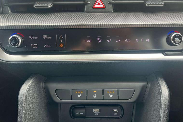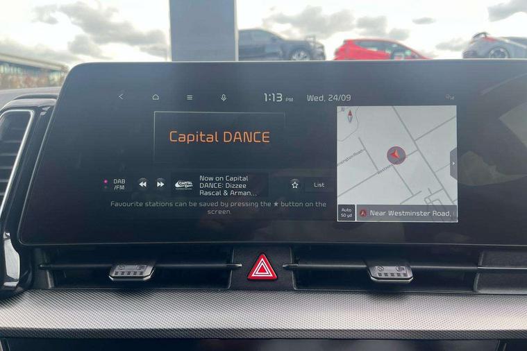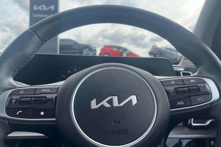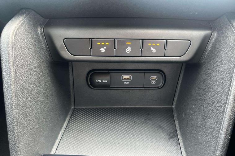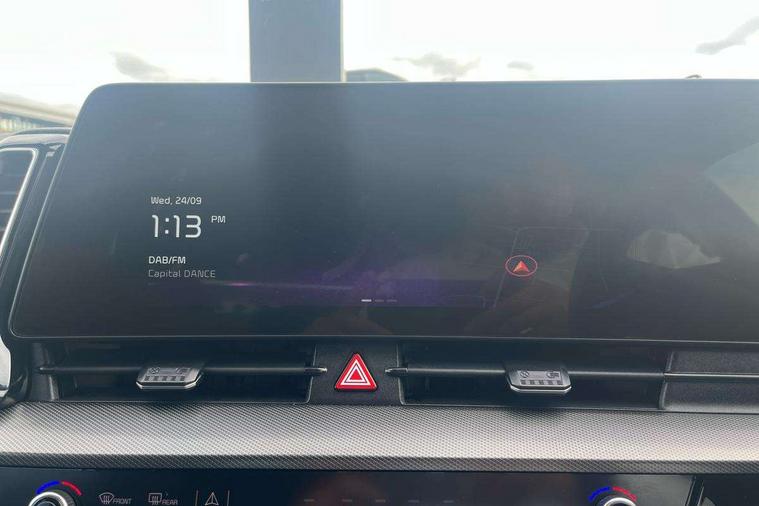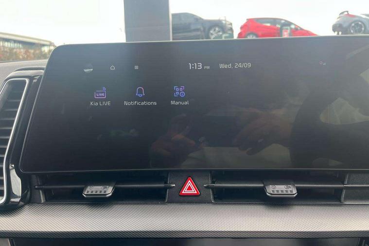 High gloss black centre fascia, High gloss black door inserts, 16" alloy wheels, Tyre mobility system, Anti theft alarm system, Deadlocks, Folding key, Immobiliser, Locking wheel nuts, Remote central door locking, Speed sensitive auto door locking, 'Shark fin' mobile antenna, 4.2-Inch Colour TFT Screen, 6 speakers, DAB Radio with MP3, Steering wheel mounted controls, USB connection located in centre console, USB/aux input socket, 3 point seatbelts on all seats, ABS, Active front headrests, Automatic unlocking of doors in case of impact, Autonomous emergency braking, Curtain airbags, Drivers knee airbag, Electronic stability control, Foot operated parking brake, Height adjustable front seatbelts, Hill start assist control (HAC), Passenger airbag deactivate switch, Traction control, Twin front and side airbags, Tyre pressure monitoring system, Auto dimming rear view mirror, Automatic defog system, Automatic headlight control system, Black side sills, Body colour bumpers, Chrome beltline trim, Chrome door handles, Chrome grille surround, Driver's side wide angle mirror, Electric adjustable/heated/folding door mirrors, Electric windows + anti trap protection + one touch open/close drivers side, Follow me home headlights, Front fog lights, High gloss black door mirrors, LED daytime running lights, LED indicators in door mirrors, LED tail lights, Manual headlight levelling, Matt black radiator grille, Privacy glass (rear side windows and rear screen), Projector headlamps, Rain sensing front wipers, Rear spoiler, Rear wiper, Roof rails, Solar glass, Wheel arch mouldings, 12V power in rear centre console, 60/40 split/folding 2nd row of seats, Ambient lighting, Assist grips, Centre console storage box, Door armrest in leather, Driver's seat height adjuster, Driver/passenger sunvisors with illuminated vanity mirrors, Dual zone automatic air conditioning, Front and rear door pockets, Front map light with sunglasses case, Front/rear centre armrests, Headlining in Light grey, Height adjustable headrests, High gloss black steering wheel trim, Illuminated ignition key hole, Isofix child seat attachment, Leather trimmed gearshift, Leather trimmed steering wheel, Luggage area lamp, Luggage compartment cover, Luggage net hooks, Part leather upholstery, Passenger seat back pocket, Rear armrests with cupholder, Satin chrome interior door handles, Tilt/telescopic adjustable steering wheel, Ventiliation ducts to rear compartment, 7" touch screen sat nav with TMC, Apple car play/Android Auto, Bluetooth audio streaming with voice recognition, Colour information display, Digital clock, Drive mode selector, Emergency stop signalling system, Kia connected services, Lane keep assist, Power Steering, Rear parking sensors, Reversing camera, Roll over sensor, Speed limiter, Trip computer,