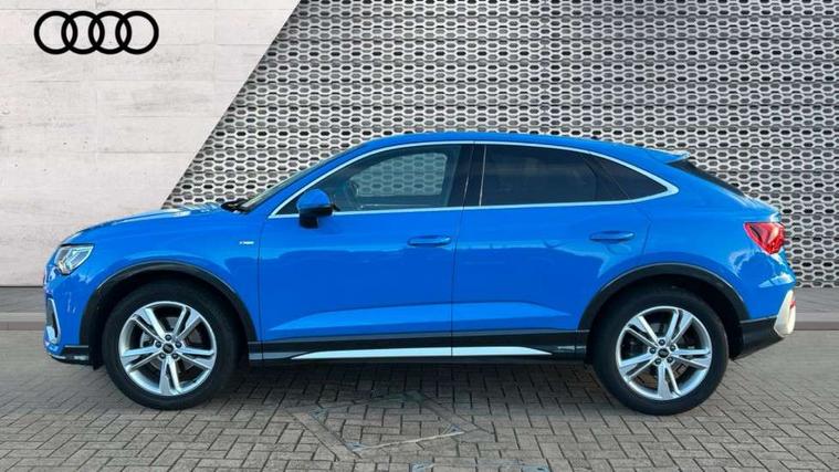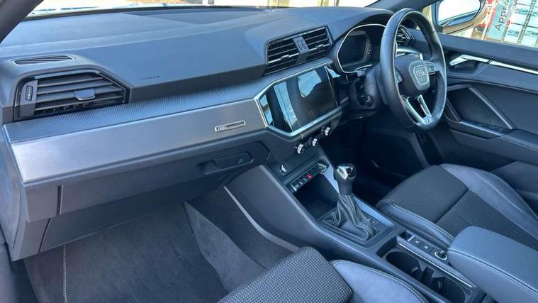 Aluminium look interior elements, Black dashboard, Dark matt brushed aluminium inlay, Detail dashboard around MMI touch colour display in glass look, black with surround in aluminium look, Leatherette door armrest, Ambient lighting pack - Q3, Non smoking pack - Q3, Anti theft alarm, Anti theft wheel bolts, Immobiliser, Remote central locking, 2 USB-C ports with charge and data functions, 6 passive loudspeakers, DAB digital radio module, 3x3 point rear seatbelts, 6 airbags - Driver, front passenger, curtain and side windows, Audi pre-sense front with pedestrain and cyclist recognition, Electrically operated child locks on rear doors, Electromechanical parking brake, Electronic stabilisation control including ABS, ASR and EDL, Front seatbelt reminder, Hill descent control, Hill hold assist, Pre sense basic, Seatbelt monitoring, Tyre pressure warning, Warning triangle and first aid kit, Acoustic windscreen, Aluminium window trim, Auto dimming frameless rear view mirror, Diffuser grille in grained matt black, Diffuser trim in selenite silver, Electrically folding, adjustable and heated door mirrors with integrated LED side indicators and kerb view function for passenger side, Front and rear electric windows, Front fog lights, Front side air inlets in selenite silver, Front underbody protection in manhattan grey paint finish, Grille surround in aluminium silver matt, High gloss black finish B and C pillars, LED Dynamic rear indicators, LED headlights with LED daytime running lights, LED rear lights, LED third brake light, Privacy glass dark tinted rear and rear-side windows (from B-pillar backwards), Radiator grille in anthracite black with inlay in matt aluminium silver, Rain and light sensors, Rear side wing doors, Rear underbody protection in matt black, Rear wiper, S line badges on front wings, S line front and rear bumpers and side skirts in contrasting Manhattan grey paint finish, Side skirt insert in matt Platinium grey, Variable front intermittent wipers, 12V socket in rear centre console, 3 seat bench in 2nd row, 3 spoke leather multifunction steering wheel features S badging and grips in perforated leather with contrast stitching, 40:20:40 folding with manual adjustment for 60:40 forwards/backwards position and backrest angle, Adjustable rear seat bench/backrest with centre armrest and cupholder, Black cloth headlining, Dual zone electronic climate control, Front and rear black floor mats with contrast stitching, Front and rear headrests, Front and rear roof module including reading lights, Front centre armrest, Glove compartment lighting, Height and reach adjustable steering wheel, Illuminated door sill trims with S logo, ISOFIX child seat mounting for front passenger with airbag deactivation and outer rear seat including top tether attachment point for outer rear seats, Luggage compartment light in right, Luggage compartment sill protection in stainless steel, Manual front seats with height adjustment, Perforated leather gearknob, Single front passenger seat, Stainless steel pedals, Audi drive select, Audi lane departure warning, Audi smartphone interface includes wireless Apple carplay/Android Auto, Audi Virtual Cockpit - 10.25" display, Bluetooth interface, Camera based traffic sign recognition, Legal emergency call, MMI Navigation Plus with high resolution 10.1 inch touchscreen colour display, Power operated tailgate, Progressive steering, Service interval indicator, Start stop system with recuperation, Voice control system with natural language interaction, Sports suspension,