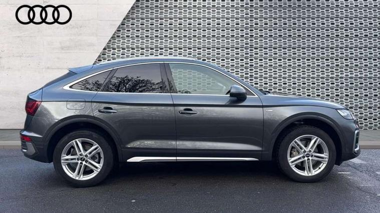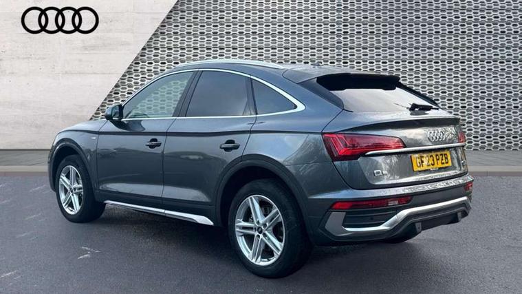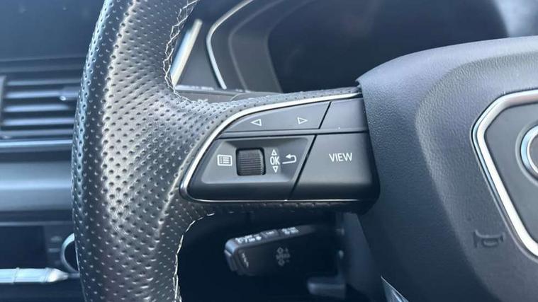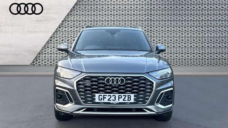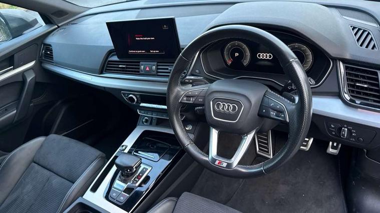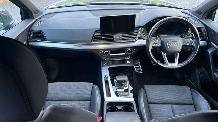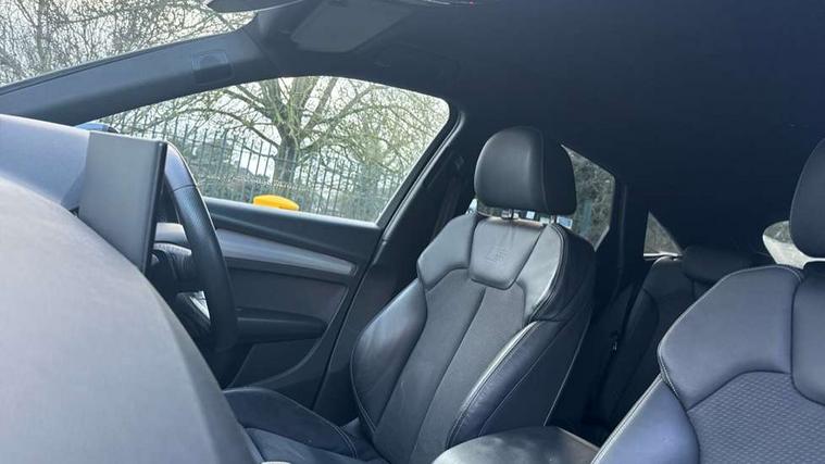 Air vents inserts and centre console in gloss black, Matt brushed aluminium inlays, High gloss pack - Q5, LED interior light pack - Q5, Tyre repair kit, Anti theft alarm, Anti-theft wheel bolts, Remote central locking, Remote control key with SAFELOCK and keyless go, 8 loudspeakers, DAB Digital radio, 3 point seatbelts on all seats, 6 airbags - Driver, front passenger, curtain and side airbags, Electrically operated child locks on rear doors, Electromechanical parking brake, Electronic stabilisation control including ABS, ASR and EDL, First aid kit with warning triangle and vests, Front passenger airbag deactivation, Hill descent control, Hill hold assist, ISOFIX child seat mounting for front passenger seat and ISOFIX child seat mounting with Top Tether for outer rear seats, Multi collision brake assist, Pop-up bonnet for pedestrian protection, Pre sense city, Seatbelt monitoring, Tyre pressure warning, 3rd brake light, Acoustic windscreen, Aluminium roof rails, Auto dimming door mirrors, Auto dimming frameless rear view mirror, Automatic headlight adjustment, Automatic headlights and windscreen wipers, Body colour bumpers, Body colour door mirrors, Body colour rear diffuser with matt aluminium silver surrounds, Body colour underbody protection, Chrome plated exhaust trims, Daytime running lights, Door sills in Selenite silver, Electric adjustable/heated/folding door mirrors, Front air inlet surrounds in aluminium, Front and rear electric windows, Front radiator grille in honeycomb design, LED headlights and LED tail lights, Lower bumpers painted in contrast Manhattan grey, Rear chrome trim strip below lights, Rear privacy glass and rear side windows, Rear side wing doors, Rear wiper, Roof bars, S Line badges on the front wing panels, S Line front and rear bumpers, S Line rear spoiler, S Line side skirts, 2 x USB charging port with aux input socket, 3 rear headrests, 3 spoke leather multifunction steering wheel with S badging perforated leather grips, Black cloth headlining, Comfort front centre armrest, Contrast stitching on seats, steering wheel and gear lever gaiter, Deluxe 3 zone electronic climate control, Front head restraints, Front sport seats with S embossed logo, Front/rear floor mats, Gear lever in black leather, Heated front seats, Height/reach adjustable steering column, Illuminated door sill trims with S logo, Loading edge protection in stainless steel, Luggage compartment cover, Manual seat adjustment with 4-way electric lumbar support, Single front passenger seat, Stainless steel pedals, Sunvisors with vanity mirrors, Tool kit, Acoustic front and rear parking sensor, Audi connect safety and service (e-call), Audi connect with Amazon Alexa Integration, Audi drive select, Audi virtual cockpit plus with 12.3" screen and three different layout designs, Audi wireless smartphone interface, Automatic start-stop system with coasting functionality and efficiency programme, Bluetooth interface, Electro - mechanical power assisted steering, MMI navigation plus with 10.1" touch screen, Power tailgate, Reversing camera, Service interval indicator, Voice control system with Audi hotword activation "Hey Audi", Diesel particulate filter, Quattro on demand, S line sports suspension,
