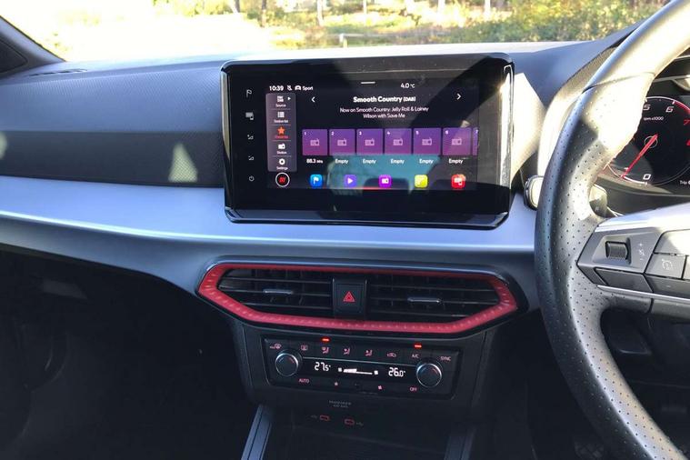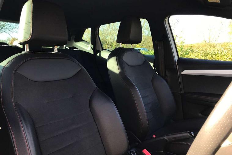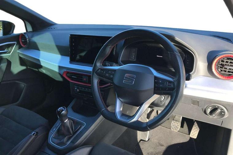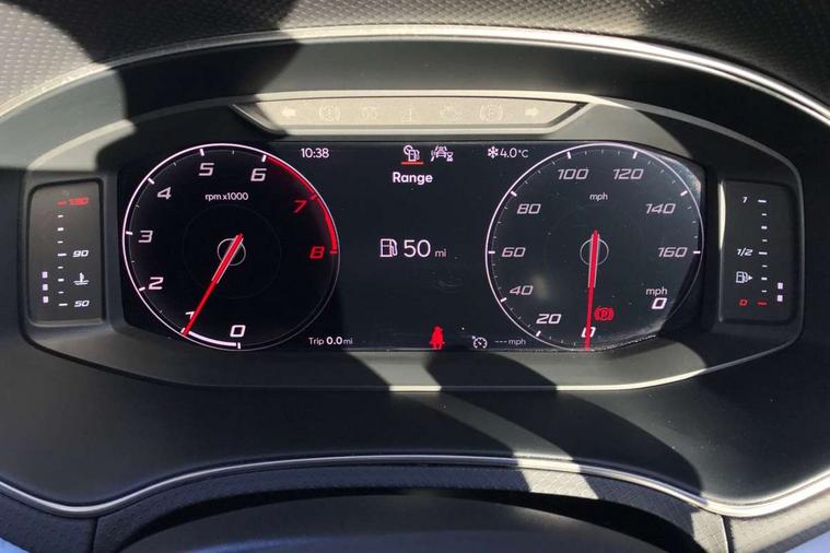 18" Performance machined alloy wheels in black and grey, Electronic engine immobiliser, Locking wheel bolts, Perimeter alarm and interior monitoring with backup horn and tow away protection, Remote central locking + deadlocks, Auxiliary input socket, Radio/MP3 player, SD card slot, Steering wheel mounted controls, 3 point seatbelts on all 3 rear seats, ABS, Active front headrests, Child locks on rear doors, Electronic stability control, Energy recovery system, Front assist forward collision warning and autonomous emergency braking, Front driver and passenger side airbags with curtain airbag and front passenger airbag deactivation, Hill hold control, Multi-Collision braking, Seat belt reminder for front and rear seats, Tiredness recognition system, Tyre pressure monitoring system, Anti theft roof antenna, Auto dimming rear view mirror, Automatic rain sensing wipers, Black door mirrors, Body colour bumpers, Body colour door handles, Brilliant black window surrounds, Dark tinted rear windows, Electric adjustable/heated/folding door mirrors, Electric front windows, Electric headlight adjustment, Electric rear windows, Front/rear fog lights, FULL LED automatic headlights with dynamic headlight range control, coming and leaving home, LED daytime running lights, LED tail lights, Rear side wing doors, Rear spoiler with FR twin exhausts, Rear wiper, Third brake light, 3 seat bench in 2nd row, 60/40 split folding rear seat, Ambient interior lighting, Chrome detailing and black headlining, Comfort seats, Dual zone climate control with combination filter, Front courtesy lights, Front cupholders x 2, Front reading lights, Gear shift indicator, Glovebox, Height adjustable front and rear headrests (five), Height adjustable front seats, Height/reach adjust steering wheel, Illuminated air vent surrounds, Illuminated boot, Instrument lighting with brightness control, Isofix, Leather multifunction flat bottomed sports steering wheel, Microsuede cloth upholstery, Passenger sunvisor, Single front passenger seat, Storage pockets on back of front seats, Sunvisors with mirror and driver side card holder, 'Lights On' Reminder warning buzzer, 9.2" touchscreen navigation system with type C USB socket, Voice control and DAB/AM/FM radio, Auto start and stop system, Bluetooth audio streaming with handsfree system, Digital clock, Digital cockpit, E-call, Full link smartphone integration with mirror link, wireless apple carplay, Google android auto + USB Type C cable for apple and android devices, Lane assist, Low fuel warning light, Outside temperature gauge, Power Steering, Seat connect with safety, service, remote and online, SEAT drive profiles and ECO function, SEAT logo boot release, Speed limiter, Trip computer, Sports suspension,