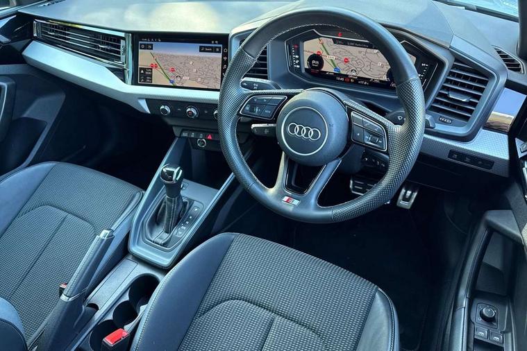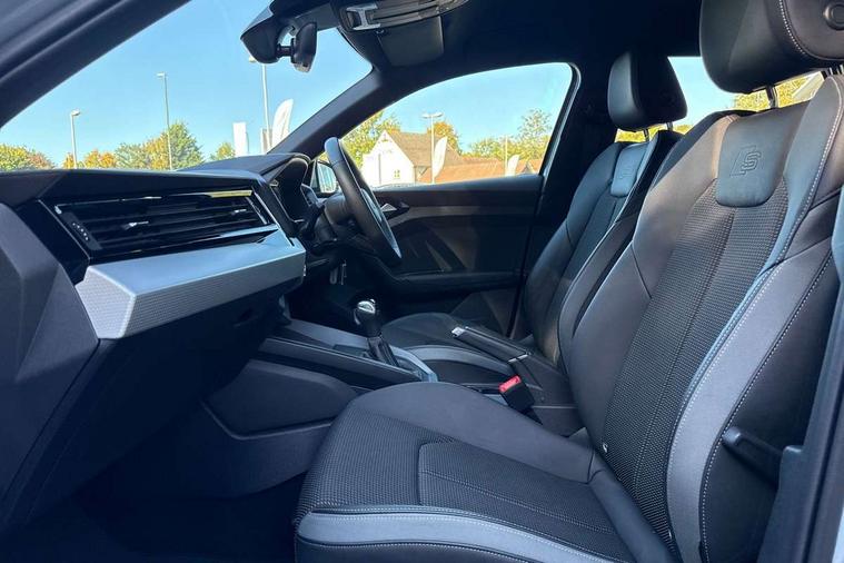 Aluminium trim for control switches, air vents and digital instrument cluster, Silver grey inlays polygon structure in diamond paint finish, Structured grey accent areas including air vents, door handle recesses and centre console in quartz paint finish, LED interior lighting pack - A1, Luggage compartment pack - A1, S line exterior styling pack - A1 Sportback, Anti theft alarm, Anti theft wheel bolts and loose wheel warning, Immobiliser, Remote central locking with 2 foldaway keys, 1 x SDXC card reader, 2 x USB type C connection points, DAB Digital radio, MMI radio plus with 8.8" colour MMI display screen and MMI touch, 3x3 point rear seatbelts, Audi pre-sense front with pedestrain and cyclist recognition, Brake assist function, Driver and front passenger airbag with front side and head airbags, Electronic Stability Control including ABS, EBD, ASR and EDL, Front passenger airbag deactivation switch, Hill hold assist, Manual rear child locks, Seatbelt height adjustment for front seats, Seatbelt monitoring, Tyre pressure warning light, Warning triangle and first aid kit, Auto dimming rear view mirror, Body coloured door mirrors, Door sills with aluminium inlays and S Line logo, Electric front and rear windows, Electrically adjustable, heated, folding door mirrors with integrated LED side indicator, Front side air inlets in grained matt black and C frame in anthracite black, Heat insulating glass windscreen and side windows, Heated rear windscreen, High level LED brake light, LED headlights with LED rear lights + dynamic rear indicators + headlight adjustment and high beam, turning light + LED daytime running lights, Radiator grille and rear diffuser in matt anthracite black, Radiator protective grille frame in matt aluminium silver, Rain and light sensors, Rear fog lights, Rear side wing doors, Rear wing door, Rear wiper, S line badges on front wings, Side front spoiler lips in grained matt black, 12V socket in centre console with two cup holders, 3 rear seats with headrests, 3 seat bench in 2nd row, 3 spoke leather multi-function plus steering wheel features S badging and grips in perforated leather with contrast stitching, 40:60 Split folding rear seat or folded fully, Black cloth headlining, Driver and passenger seat with manual height adjust with forward and backwards adjustment, Front and rear black floor mats with contrast stitching in fine silver, Front head restraints, Front passenger seat, Height and reach adjustable steering wheel, ISOFIX child seat mounting for front passenger and outer rear seats including top tether attachment point of outer rear seats, Leather gear knob with aluminium trim, Luggage compartment light with front and rear reading lights, Manually adjustable lumbar support in front seats, Stainless steel pedals, 10.25" Digital instrument cluster display classis style instrument dials + speed, odometer, time, outside temperature, telephone menu + fuel level warning, Audi drive select - power steering assistance + engine + gear shift 3 preset modes (auto, dynamic, efficiency and an Individual mode), Audi smartphone interface with connect compatible smartphone via USB directly MMI display + Nav, music, third party apps controlled via MMI controller, Automatic start/stop system, Bluetooth interface, Cruise control, Driver's information system, Electromechanical power steering, Emergency e-call, Emergency services call system, Lane departure warning system, Service interval indicator, Speed limiter, Voice control system, Washer fluid level indicator, Sports suspension,
