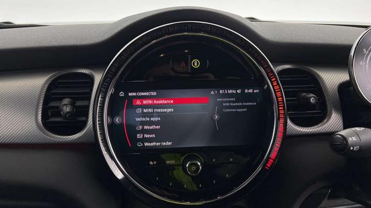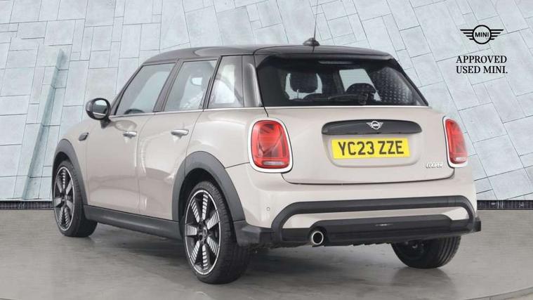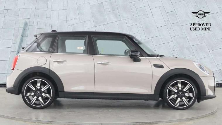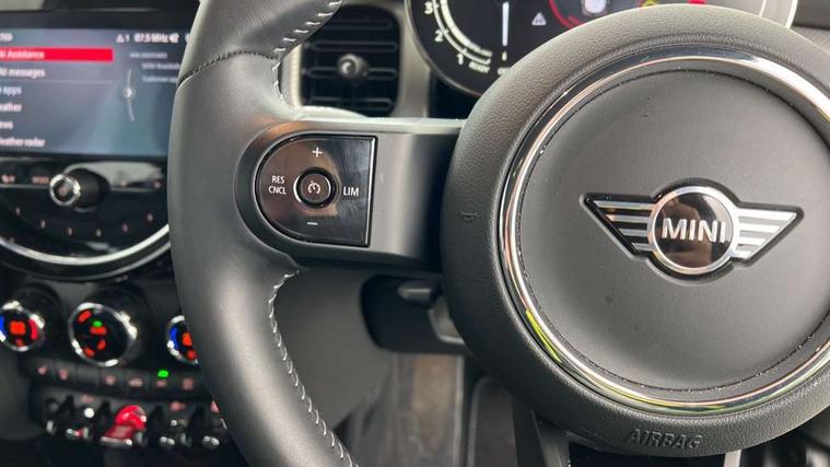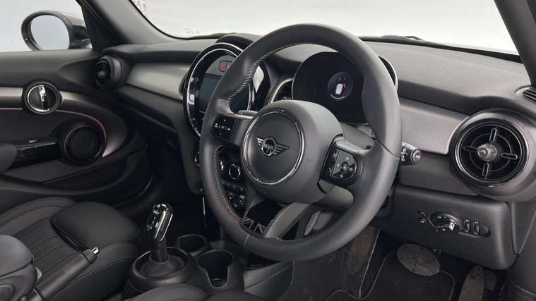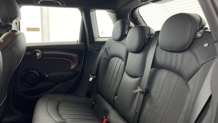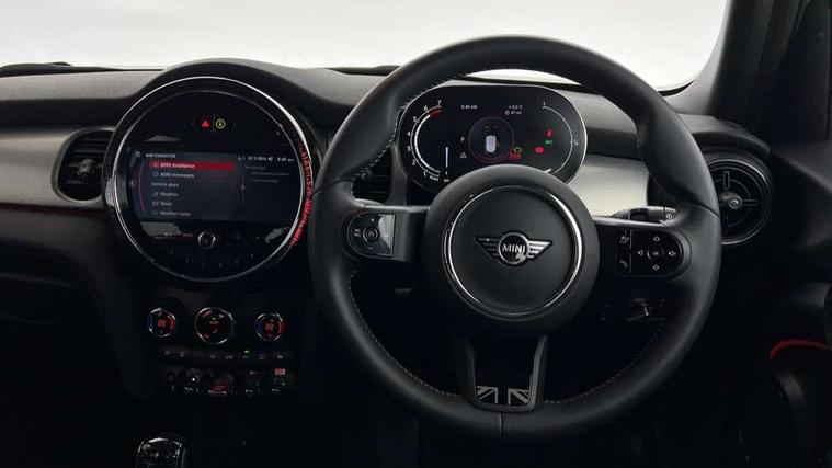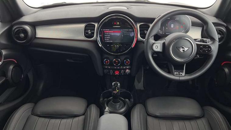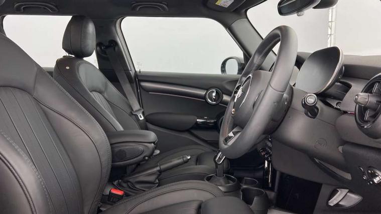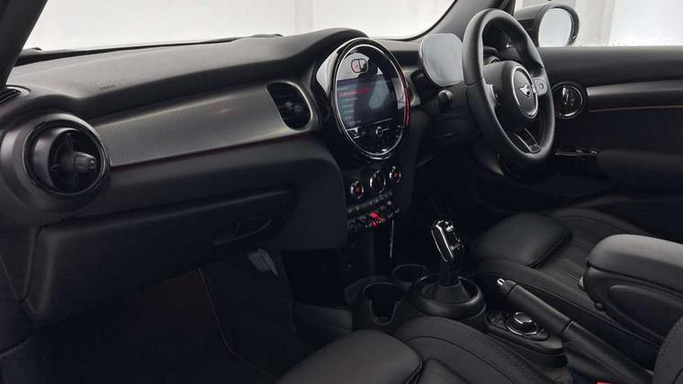 Alarm system with tilt sensor, monitoring doors, bonnet interior and tailgate, Electronic vehicle immobiliser, Start/stop toggle with keyless go, 8.8" touchscreen with LED ring, FM tuner and DAB digital radio, 3 point seatbelts on all five seats, 6 Airbags - front, side, head and seat belt tensioners, Anti-lock braking system (ABS), Child locks on rear doors, DSC - Dynamic Stability Control, Front and rear disc brakes, Hill start assist, Single tone fanfare horn, Tyre pressure monitoring system, 3rd brake light, Automatic headlight activation switch, Body colour fuel filler cap, Chrome line exterior - radiator grille bars, tailgate handle, lower front grille grating and rear central fog-light, Dynamic brake lights, Electric front+rear windows, Heated rear window, Heated windscreen washer jets, Metal door sill strips with MINI imprint, Model logo Cooper on right of tailgate, Rain sensor window wipers, Rear fog lights, Rear LED lights with union jack design, Rear side wing doors, Rear window wiper, Side scuttle panel with integrated indicator, Sun/heat protection glass, White indicator lenses, 12V Accessory socket in centre console, 3 seat bench in 2nd row, 4 lashing eyes in luggage compartment, 60/40 split folding rear seat, Anthracite headliner including grab handles and clothes hooks, Carbon black colour line - Knee roll and door armrest, Chrome interior highlights, Chrome line interior - air vents, gear lever base, door handles and speakers in doors, Cupholders, Front and rear head restraints, Front and rear isofix with front passenger airbag deactivation, Front and rear velour floor mats, Glove compartment, Height and length steering column adjustment, Interior lighting with 12 different colours across the dashboard, underneath door bezel with illuminated laser-engraved design on central display, Leatherette gearshift lever and handbrake gaiters, LED reading lights, vanity mirror lights, front foot well light and spotlight on front seats, Mechanical seat adjustment - forward/back & backrest for front seats and driver seat height adjust, MINI yours badge on exterior pillar, Multifunction steering wheel, Single front passenger seat, Storage compartments in doors, Sunvisors with vanity mirrors, Tool kit, Walknappa leather steering wheel with grey seam and MINI Yours badge on Piano Black lower steering wheel spoke, Apple CarPlay, Automatic start/stop function with brake energy recuperation, Compatible mobile phone bluetooth with audio streaming, Electro-mechanical speed dependant steering assistance, Flexible car sharing preparation, MINI Driving Modes - centre toggle switch to control driving setting (sport, mid and green), Mini E-call, MINI TeleServices, On board computer, Rear park distance control, Service interval indicator, Double Vanos system, Fully variable valve control, Gear change indicator display, High precision injection, Performance Control, Steptronic transmission with double clutch,