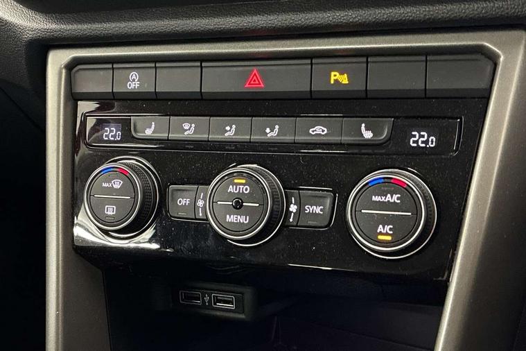 Space and weight saver spare wheel, Alarm with interior protection and deactivation via infotainment system, Electronic engine immobiliser, Remote central locking with 2 remote folding keys, DAB Digital radio, Multi device interface (MDI) with USB connection, Music playback - MP3, WMA and AAC files, Premium USB cable in choice of either Apple or Android smartphone compatibility, SD card slot, Simultaneous pairing of 2 compatible mobile devices, SMS functionality - read, compose and send SMS messages using touch-screen display, Title and cover art display, 3 rear three point seatbelts, ABS, Curtain airbags, Driver and front passenger safety-optimised head restraints, Drivers and front passengers airbags with passengers deactivation switch, Electronic parking brake with auto hold, Electronic stability control (ESC) includes ASR, EDL, EDTC and trailer stabilisation function, Front seat side impact airbags, Predictive pedestrian protection, Rigid safety cell with front and rear crumple zones, Three point height adjust front seatbelts + pretensioners, Tyre pressure loss indicator, Ventilated front and rear disc brakes, Volkswagen roadside assistance, Auto dimming interior rear view mirror, Automatic hazard lights activation under emergency braking, Black grained lower door protectors, Black grained wheel arches, Body colour door handles, Body colour sports bumpers with silver metallic underbody fascia, Body coloured door mirrors with integrated indicators, Chrome effect left and right trapezoid exhaust tailpipe fascia surround, Chrome trim on upper and lower radiator grille, Dusk sensor, Electrically foldable, adjustable and heated door mirrors with puddle lights and reverse activated kerb-view adjustment on passenger's door mirror, Front and rear electric windows, Front windscreen wiper with intermittent wipe and 4 position delay, Fully galvanised body, Heated rear window, High level 3rd brake light, LED rear number plate lights, Manual coming/automatic leaving home lighting function, Rain sensor, Rear tinted glass from B-pillar backwards approx 65% tinted, Rear wash/wipe with intermittent wipe setting, 12V socket in centre console storage area, 2 Front and rear reading lights incorporating LED technology, 3 rear head restraints, 4 load lashing points in luggage compartment, Ambient lighting in front footwell and light strips below trim in front doors, Climate control - 2 zone electronic air conditioning with automatic air recirculation and allergy filter, Drawer under drivers seat, Front centre armrest with storage compartment, longitudinal and height adjustable and two rear air vents, Front cupholders x 2, Front footwell illumination, Front seat back storage pockets, Glovebox, Height adjustable front seats, Height/reach adjust steering wheel, Illuminated vanity mirrors, Instrument lighting, white adjustable panel illumination, Interior light delay, Isofix easy fit child seat preparation for 2 outer rear seats, Load through provision with single cup holder when folded down, Luggage compartment cover, removable, Luggage compartment lighting, Split folding rear seat backrests with centre armrest, Storage compartment in left and right luggage area, Storage compartment in rear doors, Storage compartments in driver and front passenger doors, App-Connect, 'Lights On' Reminder warning buzzer, 2 USB connection charging sockets, Adaptive cruise control with front assist, radar sensor controlled distance monitoring, city emergency braking, Automatic start/stop system, Bluetooth telephone and audio connection for compatible devices, Car information display, Driver alert system with audible and visual fatigue detection system, Driver tips and journey analysis, Lane assist, Multifunction computer with visual gear change recommendation for fuel consumption, Service interval indicator, Think blue trainer driver tips and journey analysis, Warning sound and light for doors and tailgate open, Warning sound and light for front seatbelts unfastened, We Connect Go Dongle, Battery regeneration during braking,