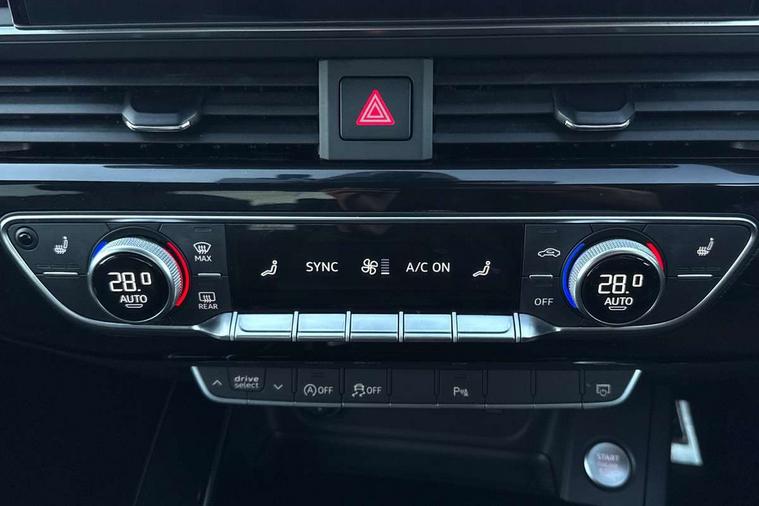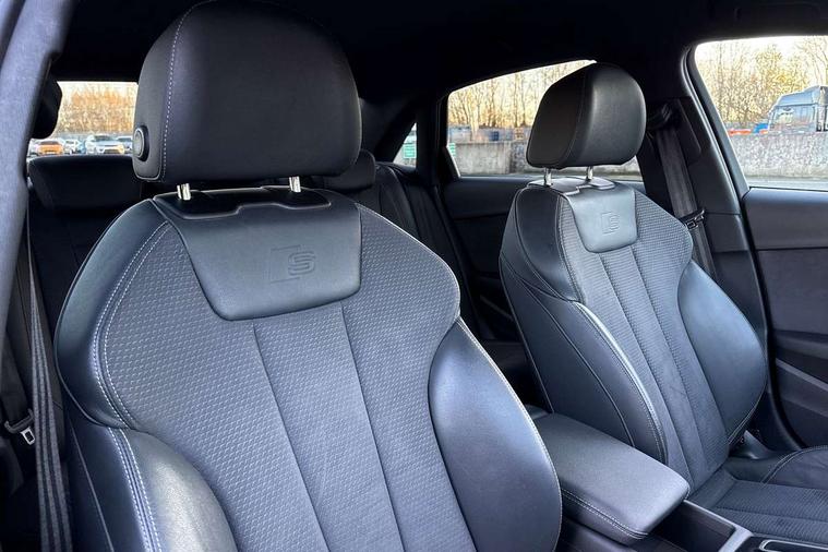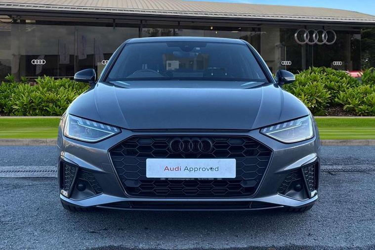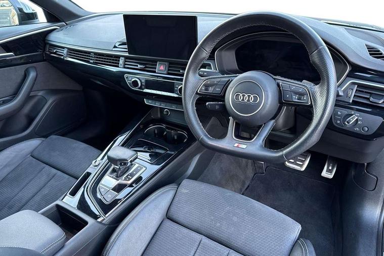 Piano black finish inlay, Black styling pack - A4 Saloon, LED Interior light pack - A4/S4, Tyre repair kit, Anti theft alarm, Anti theft wheel bolts, Central locking, Keyless Go, 2 USB charging ports, 8 passive loudspeakers, DAB digital radio reception, 3 rear seatbelts, 6 airbags - Driver, front passenger, curtain and side windows, Electronic Stabilisation Control (ESC) including ABS, ASR and EDL, Hill hold assist, Multi collision brake assist, Pop-up bonnet for pedestrian protection, Pre sense city, Rear door child safety locks, Seatbelt monitoring, Warning triangle and first aid kit, Auto dimming rear view mirror, Black Audi rings and black badging (model name in black badging, no engine badging), Body colour door handles, Body colour front spoiler lip, Body colour side sill trim, Electrically folding auto dimming/adjustable/heated door mirrors with LED side indicators and kerb view function for passenger side, Front and rear bumpers with side skirts, Front wing badges, Grained matt black side air inlets with matt aluminium silver inlay, High beam assistant, High gloss black B pillar trims and triangular rear door trim, LED headlights with LED rear lights + dynamic rear indicators + headlight adjustment and high beam, turning light + LED daytime running lights, LED third brake light, Matt aluminium silver tailpipe trim, Privacy glass, Rain and light sensors, Rear boot, Rear diffuser in matt titanium black with trim strip in matt aluminium silver, Rear side wing doors, Variable intermittent front wash/wipe, Windscreen with acoustic glazing, 4 way electric lumbar support for driver and front passenger, 40/20/40 split folding 3 rear seat bench in 3 parts with rear centre armrest, Black cloth headlining, Black perforated leather gearknob, Contrast stitching on seats, steering wheel and gear lever gaiter, Deluxe 3 zone electronic climate control, Door sill trims with aluminium inlay, Front and rear head restraints, Front centre armrest, Heated front seats, Illuminated door sill trims with S logo, ISOFIX child seat mounting and top tether, Manual seat adjustment, Single front passenger seat, Stainless steel pedals and foot rest, Tool kit, Audi connect safety and service (e-call), Audi connect with Amazon Alexa Integration, Audi drive select, Audi smartphone interface, Audi virtual cockpit, Automatic start-stop system with coasting functionality and efficiency programme, Bluetooth interface, Electric boot lid release, Electromechanical power steering, Email, calendar and text messages displayed via MMI, MMI Navigation plus with MMI touch includes 10.1" high resolution colour MMI display, 3D map, Voice control system, 54 litre fuel tank, Sports suspension lowered by 23mm,