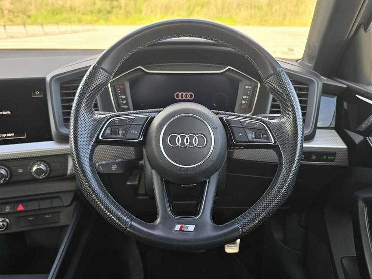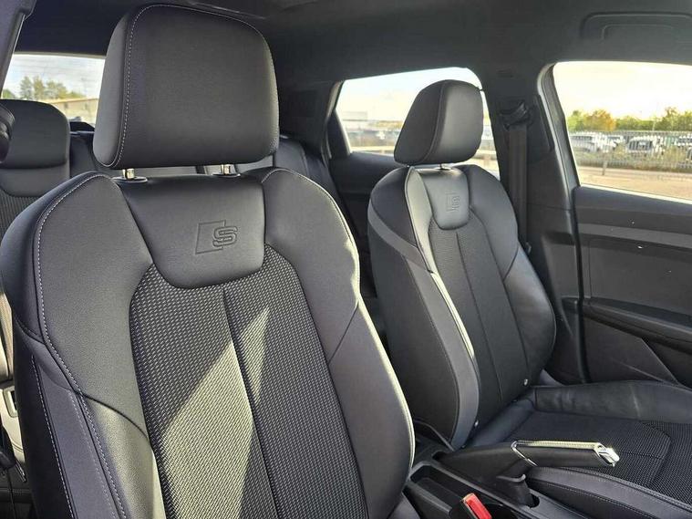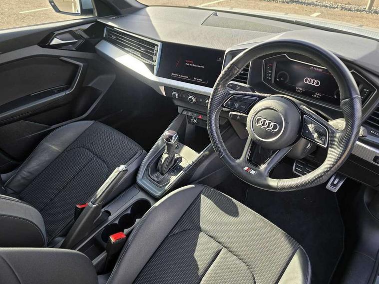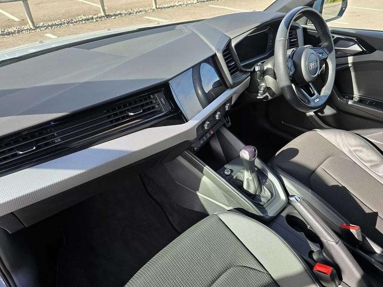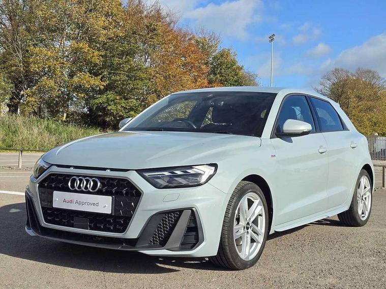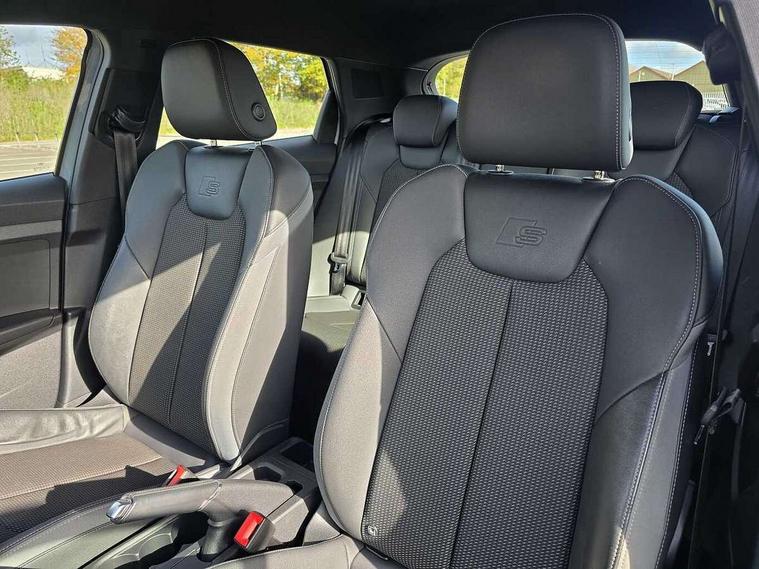 Aluminium trim for control switches, air vents and digital instrument cluster, Silver grey inlays polygon structure in diamond paint finish, Structured grey accent areas including air vents, door handle recesses and centre console in quartz paint finish, LED interior lighting pack - A1, Luggage compartment pack - A1, S line exterior styling pack - A1 Sportback, Anti theft alarm, Anti theft wheel bolts and loose wheel warning, Immobiliser, Remote central locking with 2 foldaway keys, 1 x SDXC card reader, 2 x USB type C connection points, DAB Digital radio, MMI radio plus with 8.8" colour MMI display screen and MMI touch, 3x3 point rear seatbelts, Audi pre-sense front with pedestrain and cyclist recognition, Brake assist function, Driver and front passenger airbag with front side and head airbags, Electronic Stability Control including ABS, EBD, ASR and EDL, Front passenger airbag deactivation switch, Hill hold assist, Manual rear child locks, Seatbelt height adjustment for front seats, Seatbelt monitoring, Tyre pressure warning light, Warning triangle and first aid kit, Auto dimming rear view mirror, Body coloured door mirrors, Door sills with aluminium inlays and S Line logo, Electric front and rear windows, Electrically adjustable, heated, folding door mirrors with integrated LED side indicator, Front side air inlets in grained matt black and C frame in anthracite black, Heat insulating glass windscreen and side windows, Heated rear windscreen, High level LED brake light, LED headlights with LED rear lights + dynamic rear indicators + headlight adjustment and high beam, turning light + LED daytime running lights, Radiator grille and rear diffuser in matt anthracite black, Radiator protective grille frame in matt aluminium silver, Rain and light sensors, Rear fog lights, Rear side wing doors, Rear wing door, Rear wiper, S line badges on front wings, Side front spoiler lips in grained matt black, 12V socket in centre console with two cup holders, 3 rear seats with headrests, 3 seat bench in 2nd row, 3 spoke leather multi-function plus steering wheel features S badging and grips in perforated leather with contrast stitching, 40:60 Split folding rear seat or folded fully, Black cloth headlining, Driver and passenger seat with manual height adjust with forward and backwards adjustment, Front and rear black floor mats with contrast stitching in fine silver, Front head restraints, Front passenger seat, Height and reach adjustable steering wheel, ISOFIX child seat mounting for front passenger and outer rear seats including top tether attachment point of outer rear seats, Leather gear knob with aluminium trim, Luggage compartment light with front and rear reading lights, Manually adjustable lumbar support in front seats, Stainless steel pedals, 10.25" Digital instrument cluster display classis style instrument dials + speed, odometer, time, outside temperature, telephone menu + fuel level warning, Audi drive select - power steering assistance + engine + gear shift 3 preset modes (auto, dynamic, efficiency and an Individual mode), Audi smartphone interface with connect compatible smartphone via USB directly MMI display + Nav, music, third party apps controlled via MMI controller, Automatic start/stop system, Bluetooth interface, Cruise control, Driver's information system, Electromechanical power steering, Emergency e-call, Emergency services call system, Lane departure warning system, Service interval indicator, Speed limiter, Voice control system, Washer fluid level indicator, Sports suspension,