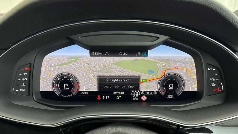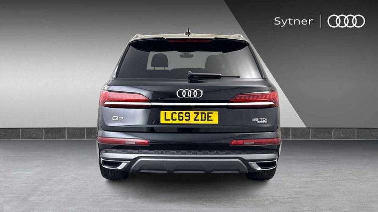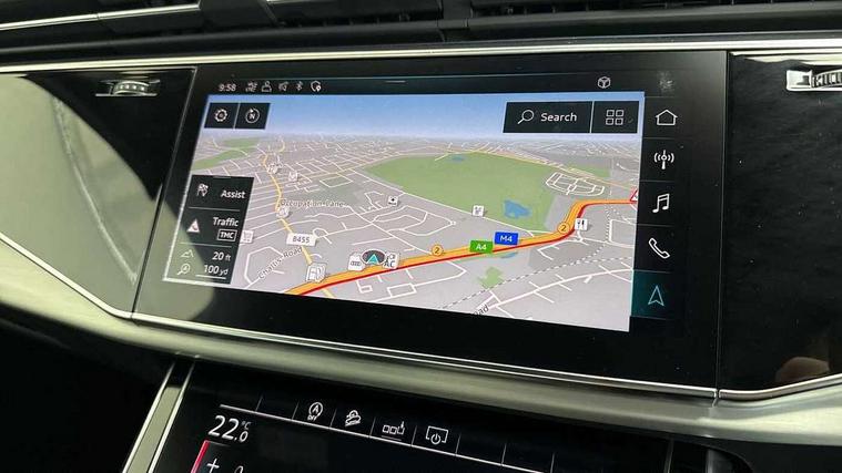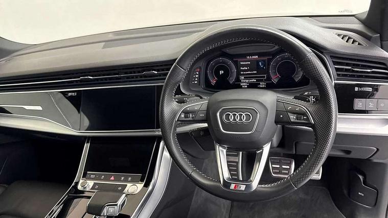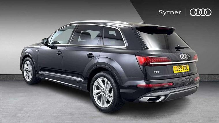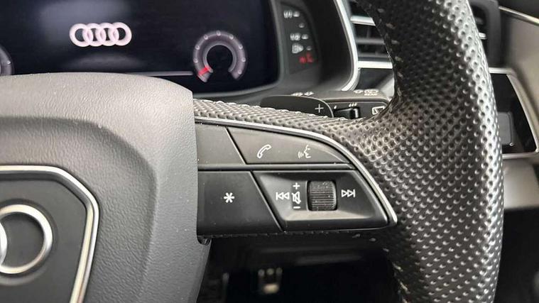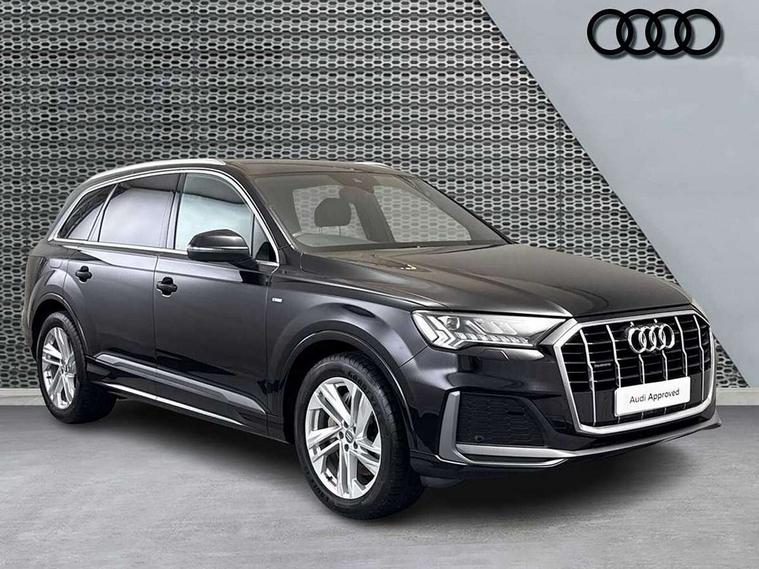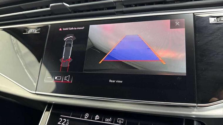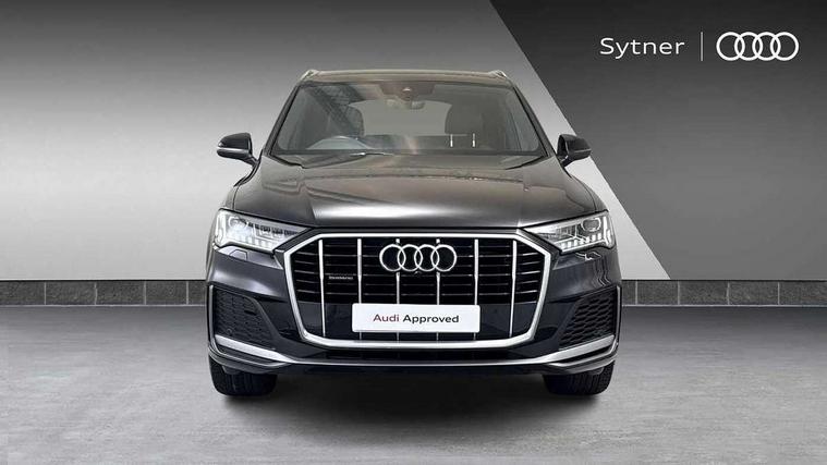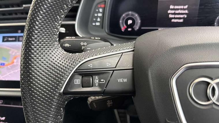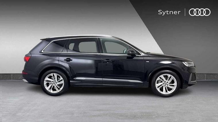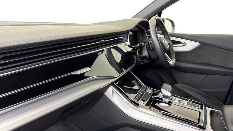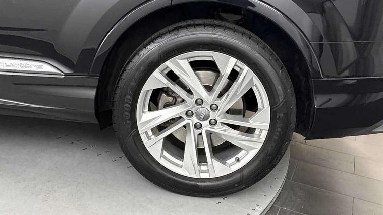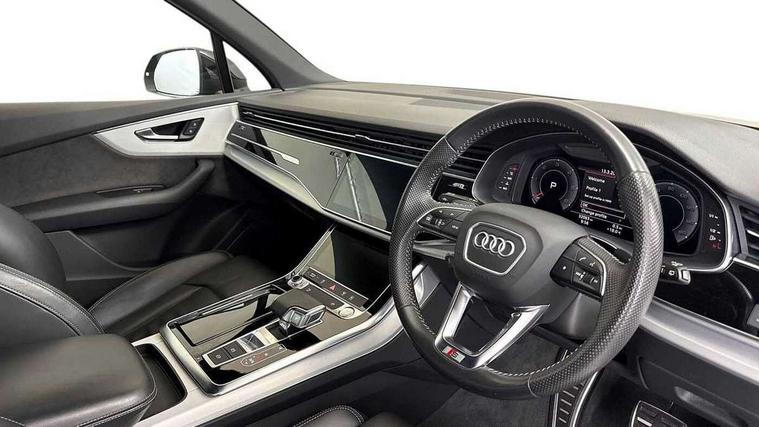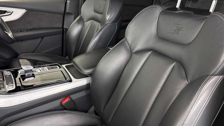 Darkened matt brushed aluminium inlays, Tyre repair kit, Anti theft alarm, Anti-theft wheel bolts and wheel loosening detection, Keyless go with remote central locking, Audi music interface - 2 USB ports with charger and data functions, Audi sound system, DAB digital radio module, 3 point seatbelts on all rear seats, Audi pre sense front, Driver and front passenger, front side and curtain airbags, Electromechanical parking brake, Electronic Stabilisation Control (ESC) including ABS, ASR and EDL, Extended pedestrian protection measures, Hill hold assist, Seatbelt monitoring, Tyre pressure loss indicator, Warning triangle and first aid kit, Aluminium roof rails, Aluminium window trim, Audi matrix LED headlights with dynamic front and rear indicators, Auto dimming frameless rear view mirror, Body coloured door mirrors, Electrically adj heated/folding + automatically dimming exterior mirrors with memory + automatic kerb side function for passenger side exterior mirror, Heat insulating glass in windshield, LED daytime running lights, LED rear tail lights, Privacy glass - dark tinted rear and rear side windows from B-pillar backwards, S Line badge on wings, S line bumpers in full body colour paint finish, S line roof spoiler, S line styling side ventilation grilles and side skirts, 2 zone automatic climate control, 7 seat layout with ISOFIX points for the front passenger seat and rear passenger seat, Comfort front centre armrest, Electrically adjustable front sports seats with S embossed logo includes 4 way lumbar support and memory functionality for driver, Folding rear seats, Front head restraints, Front/rear floor mats, Heated front seats, Illuminated door sill trims with S logo, LED interior ambient lighting, Luggage compartment sill protection in stainless steel, Rear head restraints, Stainless steel pedals, Tool kit, Audi connect safety and service (e-call), Audi drive select (Auto, Comfort, Dynamic, Efficiency, Individual, Off-road and All road), Audi phone box with wireless charging, Audi smartphone interface includes wireless Apple carplay/Android Auto, Camera based traffic sign recognition, Electromechanical steering, MMI navigation plus with MMI touch screens includes 10.1" and 8.6" screens with haptic feedback, Natural voice recognition, Parking system plus - front + rear sensors, Power assist steering, Power operated tailgate, Rear view camera, Start/stop system, 48V Mild hybrid technology, Adaptive air suspension, Quattro all wheel drive with self locking centre differential,