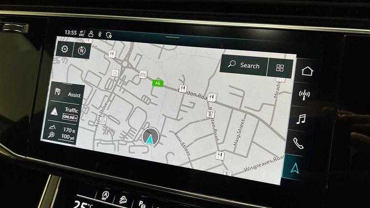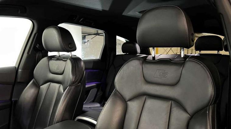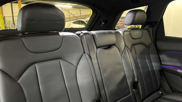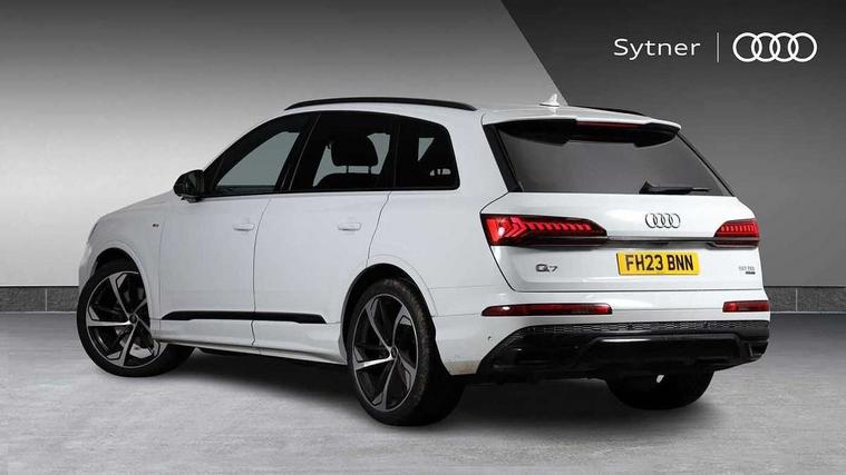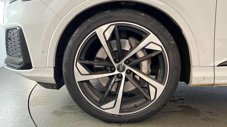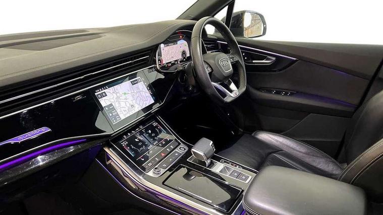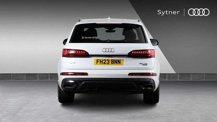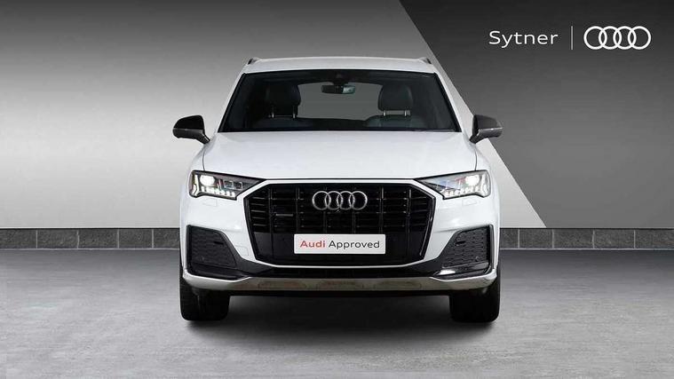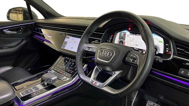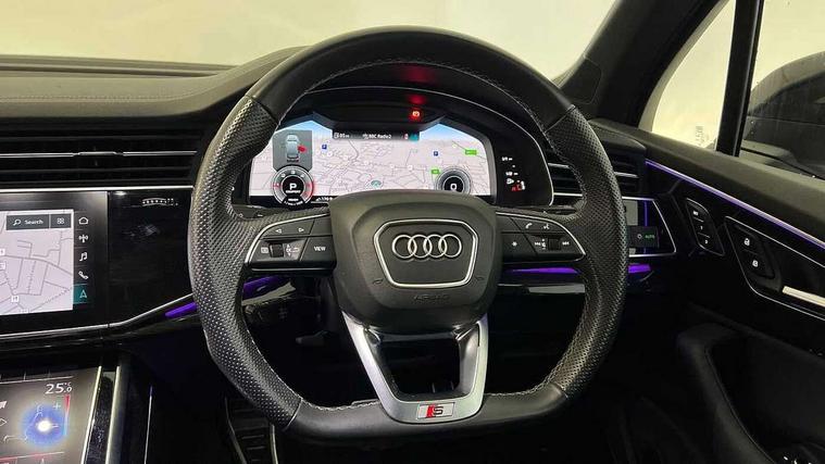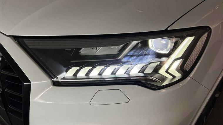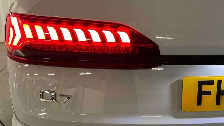 Polished oak trim with grey finished, Black styling pack plus - Q7, Tyre repair kit, Anti theft alarm, Anti-theft wheel bolts and wheel loosening detection, Keyless Go, Remote central locking, Audi music interface - front 2 USB-C ports with charger and data functions, Audi sound system with 6 channel amplifier, 180 watt amplifying capacity and 10 loudspeakers including subwoofer, DAB digital radio module, 3 point seatbelts on all rear seats, Audi pre sense front, Child locks on rear doors, Driver and front passenger, front side and curtain airbags, Electromechanical parking brake, Electronic Stabilisation Control (ESC) including ABS, ASR and EDL, Extended pedestrian protection measures, Hill hold assist, Seatbelt monitoring, Tyre pressure loss indicator, Warning triangle and first aid kit, 3rd brake light, Aluminium window trim, Audi Beam uses LEDs to project S emblem with red rhombus onto the ground when opening the side doors (front/rear), Auto dimming frameless rear view mirror, Black roof rails, Bumpers in contrast paint scandium grey finish includes door trim and wheel arch trim strips, inlays in door strip contain quattro embossing, Dark tinted Matrix LED headlights with dynamic front and rear indicators, Electrically adj heated/folding + automatically dimming exterior mirrors with memory + automatic kerb side function for passenger side exterior mirror, Heat insulating glass in windshield, Integrated LED indications in door mirrors, LED daytime running lights, LED rear tail lights, Privacy glass - dark tinted rear and rear side windows from B-pillar backwards, Rear side wing doors, Rear wiper, 2 seat bench in 3rd row, 2 zone automatic climate control, 3 seat bench in 2nd row, 7 seat layout with ISOFIX points for the front passenger seat and rear passenger seat, Black cloth headlining, Comfort front centre armrest, Electric adjustable front seat with 4 way lumbar support, driver memory functionality, Folding rear seats, Front head restraints, Front/rear floor mats, Heated front seats, Illuminated door sill trims with S logo, LED interior ambient lighting, Luggage compartment cover, Luggage compartment sill protection in stainless steel, Rear head restraints, Single front passenger seat, Stainless steel pedals, Sunvisors with illuminated vanity mirrors, Tool kit, Audi connect safety and service (e-call), Audi connect with Amazon Alexa Integration, Audi drive select (Auto, Comfort, Dynamic, Efficiency, Individual, Off-road and All road), Audi phone box light with wireless charging, Audi smartphone interface includes wireless Apple carplay/Android Auto, Audi virtual cockpit - 12.3" high-resolution LCD display with fully customisable instrument cluster, Bluetooth interface, Camera based traffic sign recognition, Electromechanical steering, MMI navigation plus with MMI touch screens includes 10.1" and 8.6" screens with haptic feedback, Natural voice recognition, Parking system plus with 360 degree display (front, rear and side sensors) - acoustic and visual park assist system, Power operated tailgate, Rear view camera, Start/stop system, 48V Mild hybrid technology, Adaptive air sports suspension, Quattro all wheel drive with self locking centre differential,