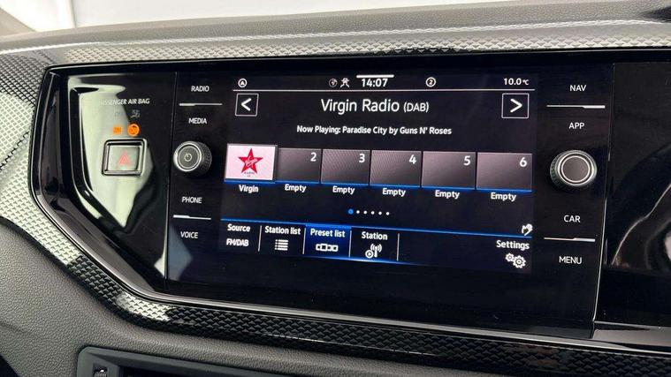 Lava stone black gloss/matt decorative inserts in dash and front door panels, Light and vision pack - Polo, Low rolling resistance tyres, Alarm with interior protection, Anti-theft alarm system with interior monitoring, backup horn, and towing protection, Anti-theft wheel bolts, Electronic engine immobiliser, DAB Digital radio, Diversity antenna for FM reception, 3 point height adj front seatbelts + pretensioners, 3x3 point rear seatbelts, ABS, Driver and front passenger airbag with front passenger airbag deactivation, Drivers and front passengers safety optimised head restraints, ESC (Electronic stability control) + EDL (Electronic Differntial lock) and ASR (Traction control), Extended and predictive pedestrian/ cyclist protection, Front curtain and side airbags with center airbag, Front disc brakes, Hill hold control, Manual child lock in rear doors, Rear drum brakes, Single tone horn, Tyre pressure loss indicator, Automatic dimming interior rear view mirror, Body colour bumpers, Body colour door handles, Body colour door mirrors, Chrome plated radiator grille inserts, air vent surrounds and light switch surrounds, Electric front windows, Heat insulating glass in side and rear windows, Heat insulating glass windscreen, Power folding adjustable/heated exterior mirrors and front passenger exterior mirror lowering function, Rain sensor, Rear electric windows, Rear fog light, Rear side wing doors, Rear windscreen washer and wiper with interval delay, Third brake light, 12V power socket in centre console, 2 front and 2 rear reading lights, 2 USB-C ports in the front, 2 USB-C charging sockets on the center console in the rear, 3 rear head restraints, 60/40 split folding rear seat and rear seat bench not split, Ceramique headliner, Door and side trim panel, Driver and front passenger seat height adjustment, Driver/passenger sunvisors with illuminated vanity mirrors, Front centre armrest, Front seat backrest storage pockets, Front standard seats, Handbrake lever handle in leather, Hartley/Thomas cloth upholstery, Isofix child seat preparation easy-fit (for two outer rear seats, and front passenger seat) compatible with I-size, Leather trimmed gear knob, Luggage compartment cover, Luggage compartment floor, Luggage compartment lighting, Multifunction steering wheel, Single front passenger seat, Standard pedal cluster, Adaptive cruise control without follow-to-stop and speed limiter, Bluetooth mobile phone interface, Driver alert system, Emergency call service, Front assist system, Power assisted speed sensitive steering, Preparation for We connect and We connect plus, Speedo and rev counter, electronic odometer, trip, service interval display and fuel gauge, Standard rear axle, Travel Assist - Lane keeping system and traffic jam assist, Travel assist including emergency assist, Trip computer, Warning signal and warning light for front and rear seatbelts not fastened, Washer fluid level indicator, Wireless app connect, Front wheel drive, Rear shock absorpion, Start-stop system with battery regeneration (recuperation - energy recovery during braking),
