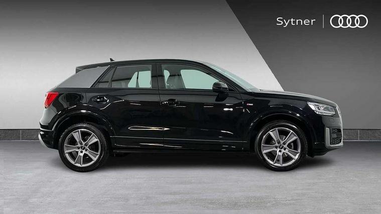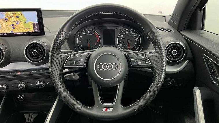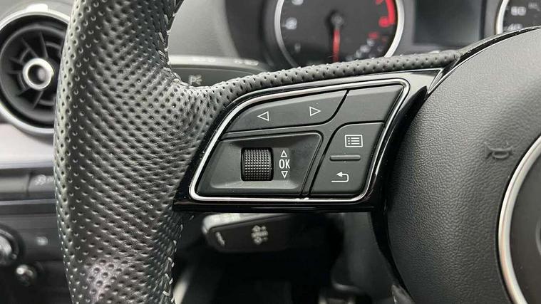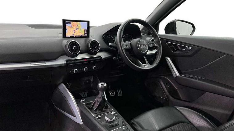 Aluminium interior element, Non smoking pack - Q2, Anti theft alarm, Anti theft wheel bolts, Central locking system with remote control key, Electronically operated child locks, 2 x SDXC card reader, Audi music interface - apple iPod, apple iPhone, USB storage media, compatible MP3 players, 2 x USB charging points and 1 x Aux-in, CD Drive, DAB digital radio and AM/FM radio, MMI radio plus with 7" colour MMI screen and MMI controller, 3x3 point rear seatbelts, 6 airbags - Front, curtain and front side airbags, Electromechanical parking brake, Electronic stabilisation control including ABS, ASR and EDL, Extended and proactive pedestrian protection, Hill hold assist, Multi collision brake assist, Pre-sense front with pedestrian recognition, Seatbelt monitoring, Tyre pressure warning light, Warning triangle and first aid kit, Black window trims, Bumper in full body colour paint finish, Chrome exhaust tailpipe, Electrically adjustable and heated door mirrors with integrated LED side indicators, Front and rear electric windows, Front underbody guard and rear diffuser trim in selenite silver, Front windscreen with grey tinted sunband, Headlight washers, Interior mirror, LED headlights with LED rear lights + dynamic rear indicators, LED indicator lights, Manual folding door mirrors, Rain and light sensors, Rear wiper, S Line badges on the front wings, S Line body styling - front and rear bumpers, side skirts, radiator grille, rear diffuser insert and front air intakes, 60/40 split folding rear seat bench, Black cloth headlining, Floor mats with contrast stitching, Front centre armrest, Front headrests, Front sport seats with S embossed logo, Height/reach adjust steering wheel, Illuminated door sill trims with S logo, ISOFIX child seat mounting for front passenger with airbag deactivation and outer rear seat including top tether attachment point for outer rear seats, Manual seat adjustment including seat height adjustment for front seats, Stainless steel pedals, Storage compartments - Glovebox, cupholder compartment in centre console, storage compartment in rear centre console, front and rear door pockets, Three rear headrests, Audi drive select, Audi smartphone interface, Automatic start/stop system with recuperation, Bluetooth interface includes bluetooth audio streaming, Cruise control, MMI - Multi Media Interface control system, MMI SD card integrated nav with 3D map display, dynamic route guidance with TMC, MMI search, natural voice recognition and myAudi special destinations, Power operated tailgate, Progressive steering, Service interval indicator, Dynamic suspension,