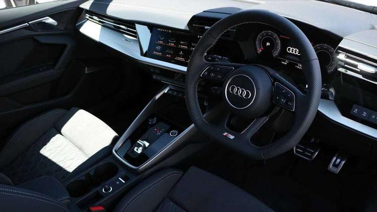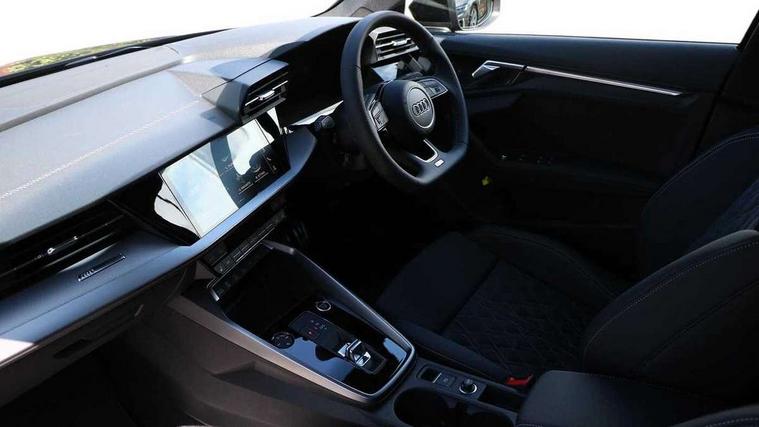 Aluminium air vent surrounds, Aluminium trim elements, Dark spectrum aluminium inlays, accent surfaces in the dashboard and centre console in platinum grey silk effect paint finish, Aluminium interior elements pack - A3 Saloon, Black styling pack - A3/S3, Dinamica microfibre/mono.pur 550 artificial leather pack - A3 Saloon, Extended ambient lighting pack - A3/S3 Saloon, LED interior lighting pack - A3 Saloon, 19" 5 arm trapezoid design alloy wheels in matt grey with diamond cut finish, Anti theft alarm, Anti-theft wheel bolts, Electronically operated child locks, Immobiliser, Remote control central locking, 2x USB Type C ports (for charging and data transfer), 6 passive loudspeakers, CD player, DAB Digital radio, 3x3 point rear seat belts, Driver and front passenger airbag with passenger airbag deactivation, Electronic Stabilisation Control (ESC) including ABS, ASR and EDL, First aid kit with warning triangle and 2 safety vests, Front side airbags with head airbags and interaction airbag, Hill hold assist, Pre-sense front with pedestrian and cyclist detection, Seatbelt monitoring, Tyre pressure loss indicator, 3rd brake light, Acoustic glass windscreen, Audi matrix LED headlights, LED rear lights, dynamic front and rear indicators and headlight cleaning system, Auto dimming frameless rear view mirror, Electrically adj heated/folding + automatically dimming exterior mirrors + automatic kerb side function for passenger side exterior mirror, Front electric windows, Illuminated door sills with aluminium inserts at the front with S logo, Integrated LED indicators in door mirrors, LED daytime running lights, Light and rain sensors, Model and engine designation badges at rear, Privacy glass - dark tinted rear window, rear door and side windows, Rear boot, Rear electric windows, Rear side wing doors, S roof spoiler, 12V socket and storage compartment in front centre console, 3 seat bench in 2nd row, 4 way electrically adjustable lumbar support for driver and front passenger, 40/20/40 split folding rear seat bench with cupholder, Black cloth headlining, Dual zone electronic climate control, Electrically adjustable front seats, Front and rear centre armrest in leather, Front and rear headrests, Front/rear floor mats, Heated front seats, Height and reach adjustable steering wheel, Illuminated vanity mirror, Interior lighting - glove compartment light and right hand side, Luggage compartment floor covering, Manual boot compartment lid, Single front passenger seat, Stainless steel pedals and front footrest in black, Audi connect emergency call and service, Audi drive select (Auto, Comfort, Dynamic, Efficiency and Individual), Audi smartphone interface, Audi virtual cockpit plus - 12.3" dynamic digital instrument cluster, Automatic start/stop system with recuperation, Bluetooth interface, Collision avoidance assistant, Electromechanical power speed sensitive steering, Lane departure warning system, MMI Navigation Plus with high resolution 10.1" colour touch screen display, Service indicator, Voice control system with natural language interaction, Sports suspension,