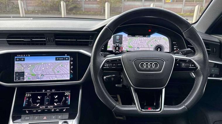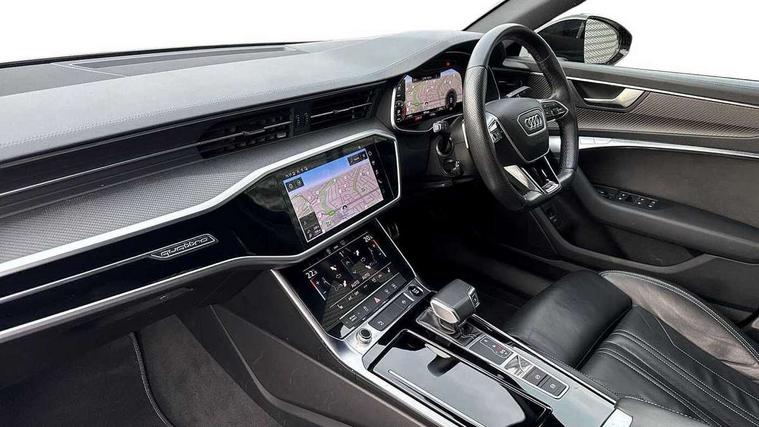 Carbon twill inlays, LED Interior Ambient Lighting Pack - A6, Non smoking pack - A6, Technology pack - A6, 20" 5 V spoke star design Audi sport cast aluminium alloy wheels in matt titanium look, Anti theft alarm with tow away protection, Anti-theft wheel bolts and wheel loosening detection, Immobiliser, Keyless Go, Remote central locking, Audi front music interface, Audi sound system, Auxiliary input socket, DAB Digital radio, USB connection, 3 point seatbelts on all seats, Airbags - Front side, front and rear including head, Audi pre-sense front, Black seatbelts, EBD - Electronic brakeforce distribution, Electromechanical parking brake, Electronic Stability Control (ESC) including ABS, ASR and EDL, Extended pedestrian protection measures, Manual child proof rear door locks, Seatbelt monitoring, Tyre pressure warning light, Warning triangle and first aid kit, All weather LED headlights, Electric front/rear windows, Frameless auto dimming interior rear view mirror, Front intermittent wipers, Gloss black highlights on the exterior area of the Audi Single frame, Gloss black highlights on the front and rear bumpers, Gloss black highlights on the radiator grille, Gloss black highlights on the side windows trim strips, Headlight washers, Heat insulating glass in side and rear windows, Heat insulating glass in windshield, LED rear lights, LED signature front daytime running light, LED third brake light, Matt black rear diffuser with diffuser strip and tailpipes in chrome, Matt black side air intake grille with inlay in matt aluminium, Privacy glass, Rain and light sensors, Rear boot, Rear side wing doors, 2 zone deluxe electronic climate control, 4 way electric lumbar support for driver and front passenger, 40/20/40 split folding 3 rear seat bench in 3 parts with rear centre armrest, Black cloth headlining, Black front and rear carpet floor mat, Black steering wheel insert, Electrically adjustable front seats with driver memory, Front centre armrest, Front head restraints, Heated front seats, Height/reach adjust steering wheel, Illuminated door sill trims with S logo, Illuminated sun visors with vanity mirrors, ISOFIX child seat mounting and Top Tether with front passenger airbag deactivation, Leather gear knob, Rear headrests, Single front passenger seat, Stainless steel pedals and foot rest, 7" high resolution colour driver information display system, Audi connect safety and service (e-call), Audi connect with Amazon Alexa Integration, Audi drive select, Audi parking system plus - acoustic and visual park assist system for front and rear, Audi smartphone interface includes wireless Apple carplay/Android Auto, Automatic start/stop system with coasting functionality, Bluetooth interface, Electric boot lid release, Lane departure warning system, Progressive steering, Rear view camera, Service interval indicator, Voice control system, 12V Mild hybrid, 24 litre AdBlue tank, Diesel particulate filter, Quattro on demand, Sports suspension,