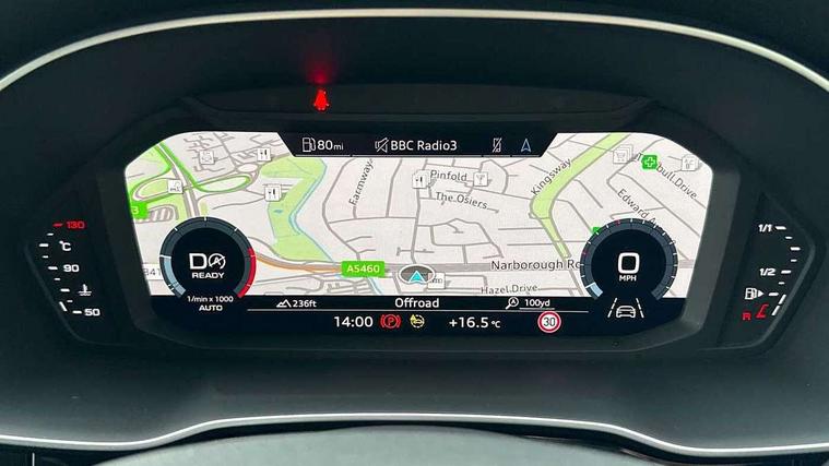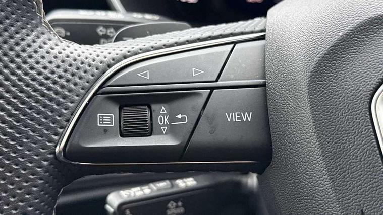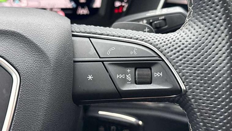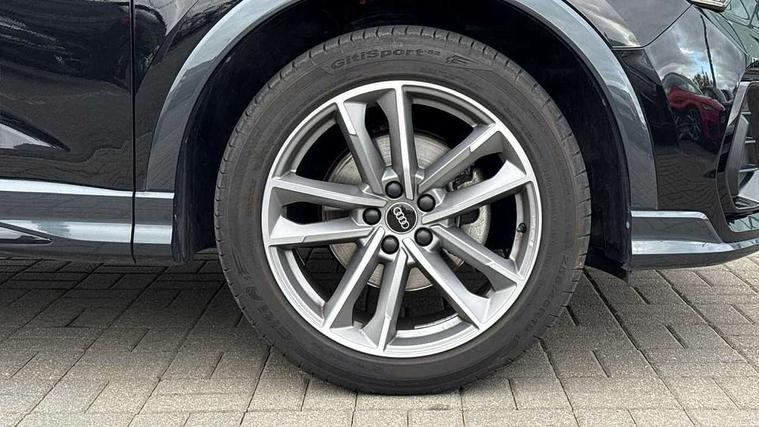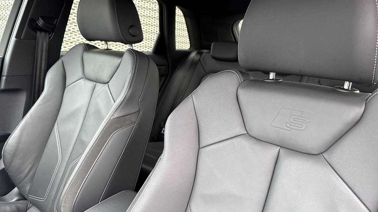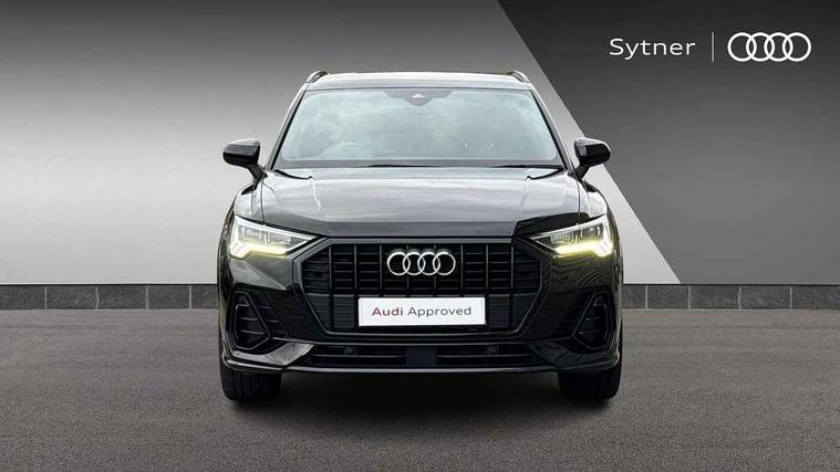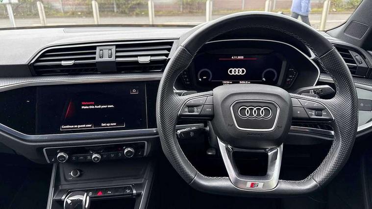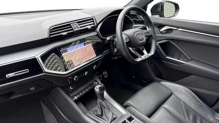 Detail dashboard around MMI touch colour display in glass look, black with surround in aluminium look, Leatherette door armrest, Piano black inlay, Ambient lighting pack - Q3, Black styling pack - Q3, Non smoking pack - Q3, Anti theft alarm, Anti theft wheel bolts, Immobiliser, Remote central locking, 2 USB-C ports with charge and data functions, 6 passive loudspeakers, DAB digital radio module, 3x3 point rear seatbelts, 6 airbags - Driver, front passenger, curtain and side windows, Audi pre-sense front with pedestrain and cyclist recognition, Electrically operated child locks on rear doors, Electromechanical parking brake, Electronic stabilisation control including ABS, ASR and EDL, Front seatbelt reminder, Hill descent control, Hill hold assist, Pre sense basic, Seatbelt monitoring, Tyre pressure warning, Warning triangle and first aid kit, Acoustic windscreen, Auto dimming frameless rear view mirror, Black roof rails, Electrically folding, adjustable and heated door mirrors with integrated LED side indicators and kerb view function for passenger side, Front and rear electric windows, Front fog lights, Grille vertical bars in aluminium silver/Matt, High gloss black finish B and C pillars, LED Dynamic rear indicators, LED headlights with LED daytime running lights, LED rear lights, LED third brake light, Privacy glass dark tinted rear and rear-side windows (from B-pillar backwards), Rain and light sensors, Rear diffuser grille in grained matt black, Rear diffuser strip in matt titanium black, Rear side wing doors, Rear wiper, S line bumpers in contrasting Manhattan grey, Variable front intermittent wipers, 12V socket in rear centre console, 3 seat bench in 2nd row, 40:20:40 folding with manual adjustment for 60:40 forwards/backwards position and backrest angle, Adjustable rear seat bench/backrest with centre armrest and cupholder, Black cloth headlining, Dual zone electronic climate control, Front and rear black floor mats with contrast stitching in rock grey, Front and rear headrests, Front and rear roof module including reading lights, Front centre armrest, Glove compartment lighting, Height and reach adjustable steering wheel, Illuminated door sill trims with S logo, ISOFIX child seat mounting for front passenger with airbag deactivation and outer rear seat including top tether attachment point for outer rear seats, Luggage compartment light, Manual front seats with height adjustment, Perforated leather gearknob, Single front passenger seat, Stainless steel luggage compartment sill finisher, Stainless steel pedals, Amazon alexa Integration, Audi drive select, Audi lane departure warning, Audi smartphone interface includes wireless Apple carplay/Android Auto, Audi Virtual Cockpit - 10.25" display, Bluetooth interface, Camera based traffic sign recognition, Legal emergency call, MMI Navigation Plus with high resolution 10.1 inch touchscreen colour display, Power operated tailgate, Progressive steering, Service interval indicator, Start stop system with recuperation, Voice control system with natural language interaction, Diesel particulate filter, Sports suspension,